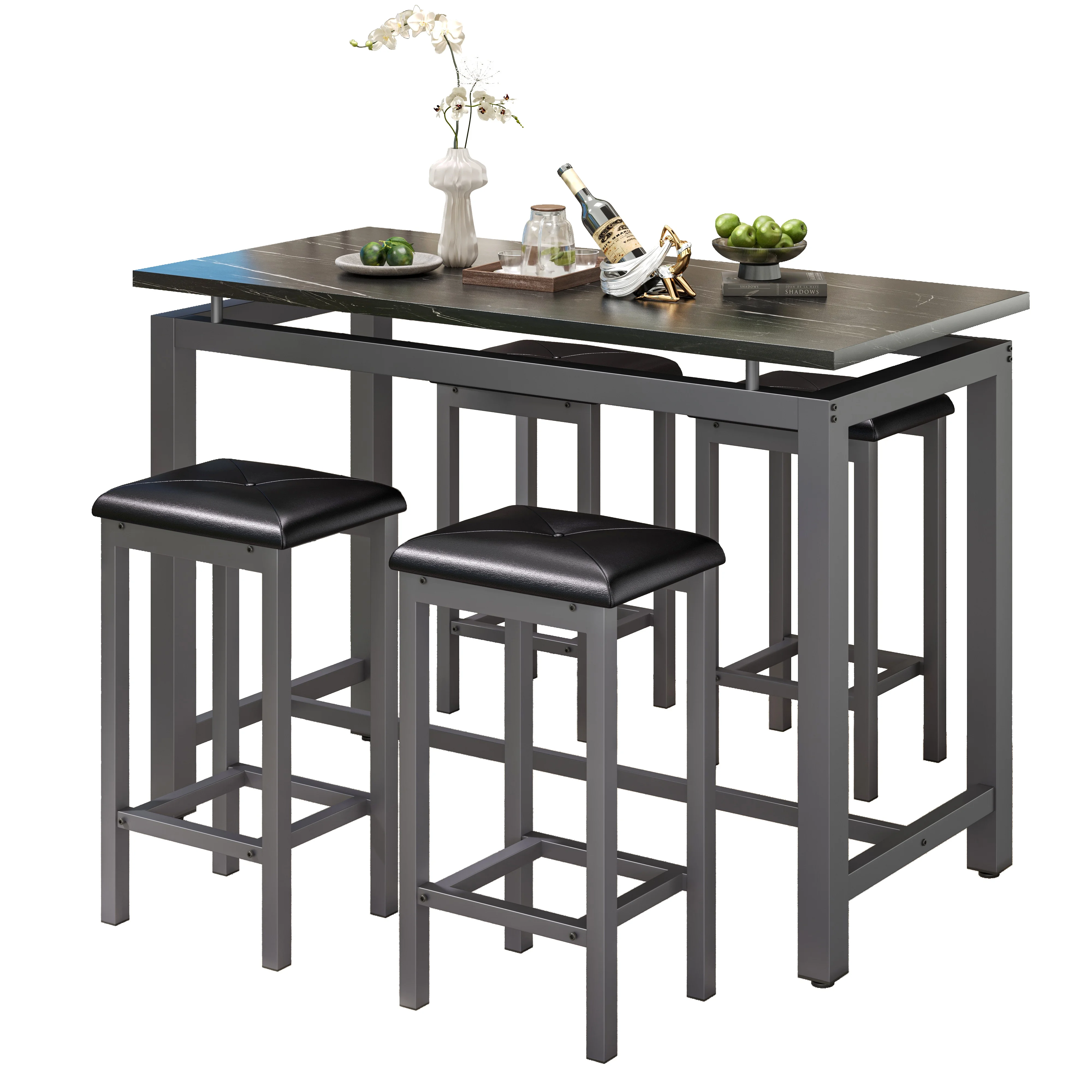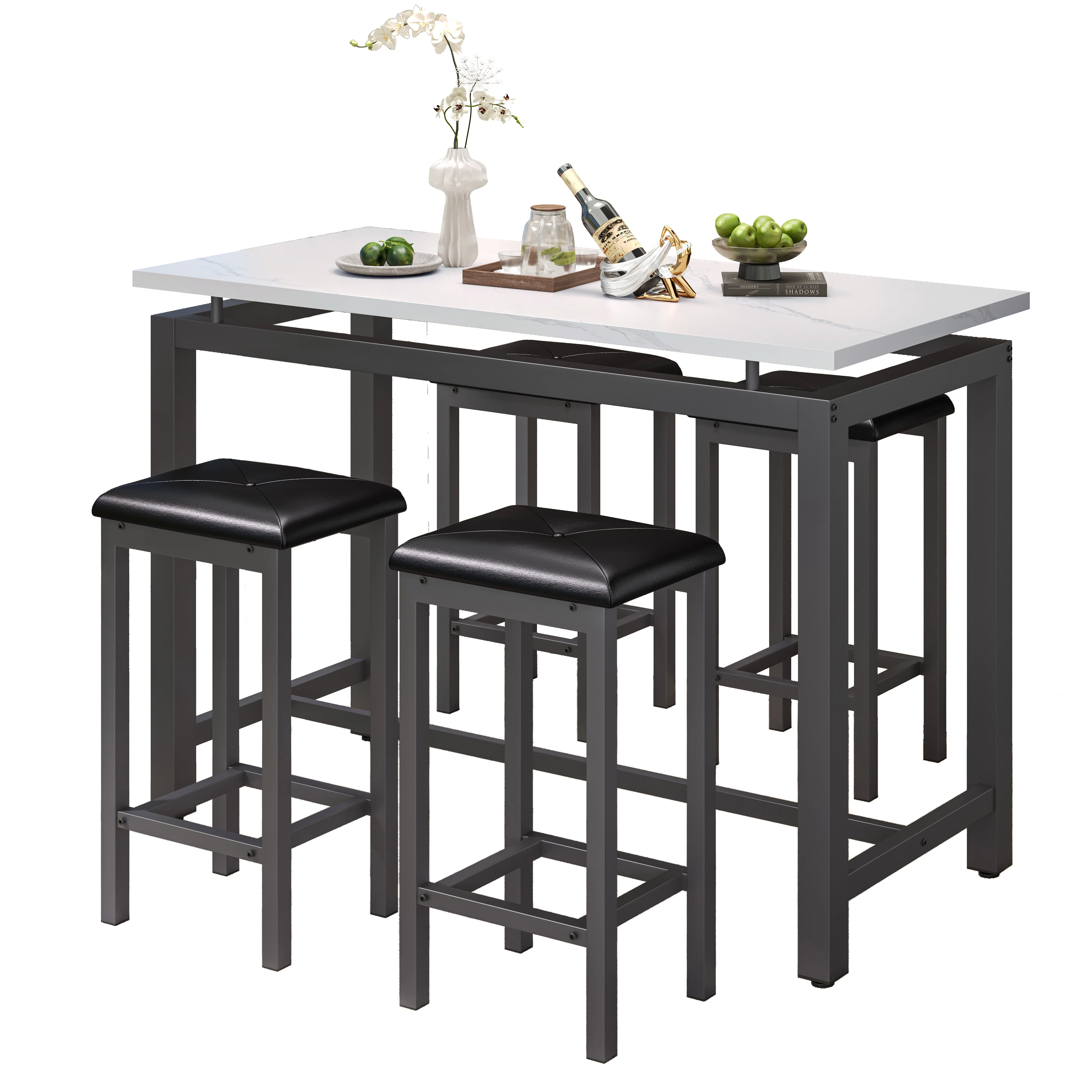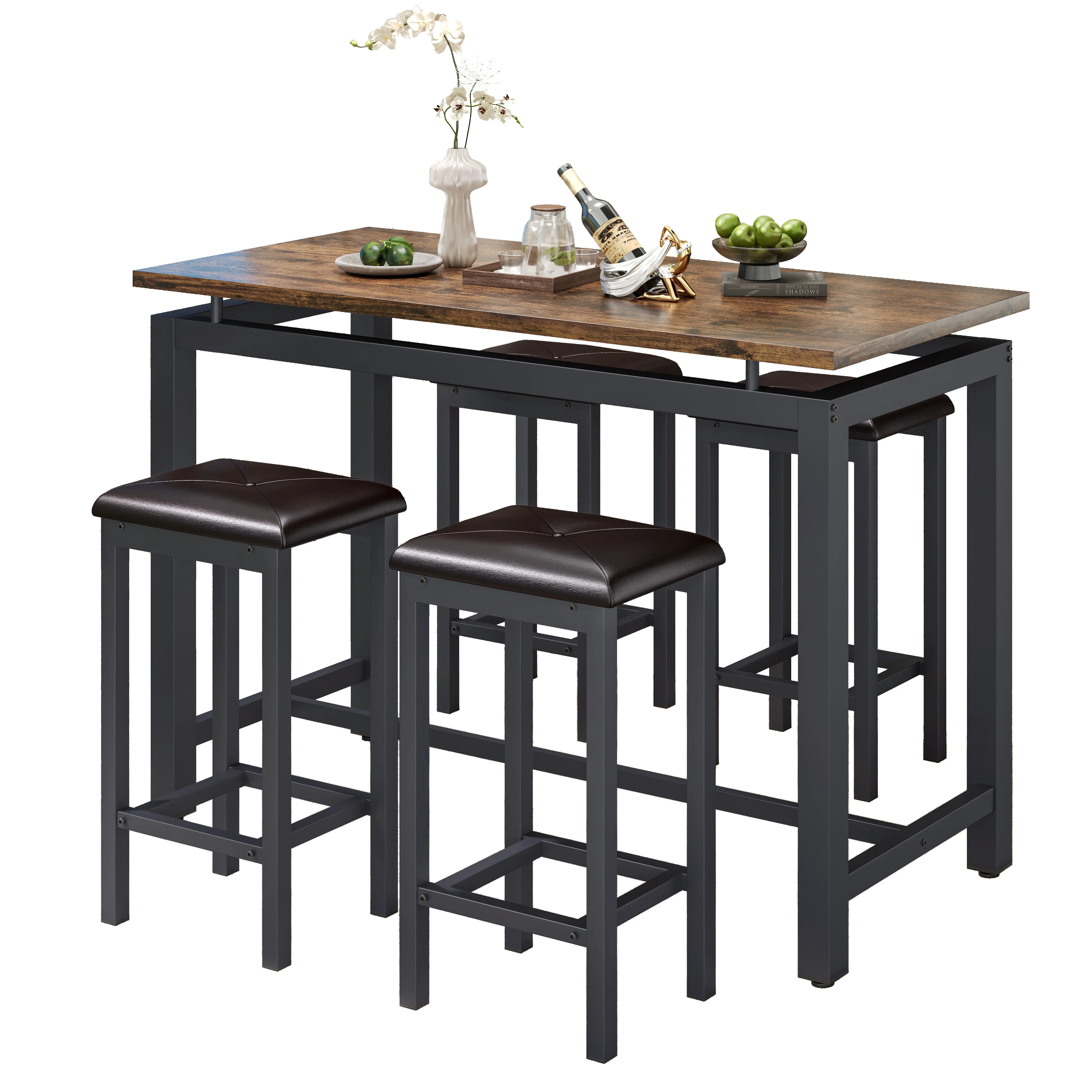 Our counter height table set is made of high-quality wood and metal frame, ensuring its sturdiness and durability for a long lifespan.