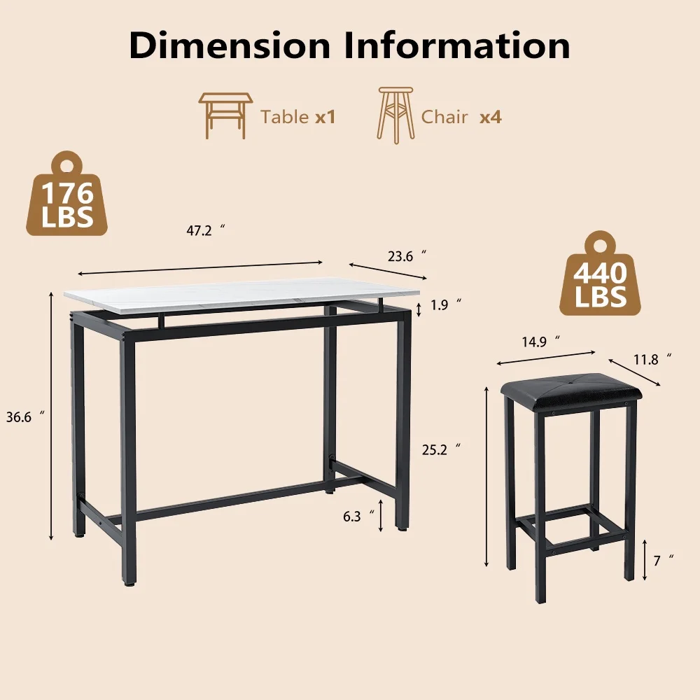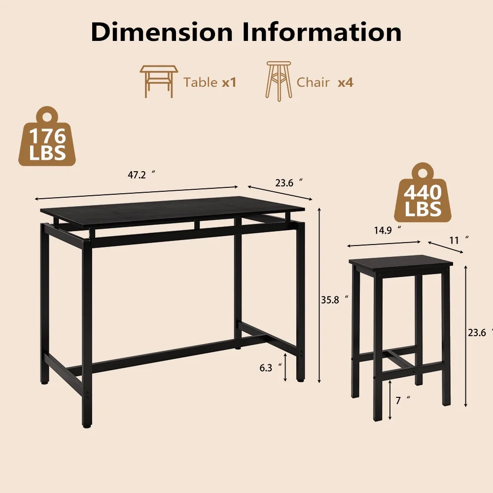 The pub table set comes with clear and brief instructions, which can be assembled quickly. Note: Be careful not to over-tighten the screws during installation, otherwise the board will be cracked.