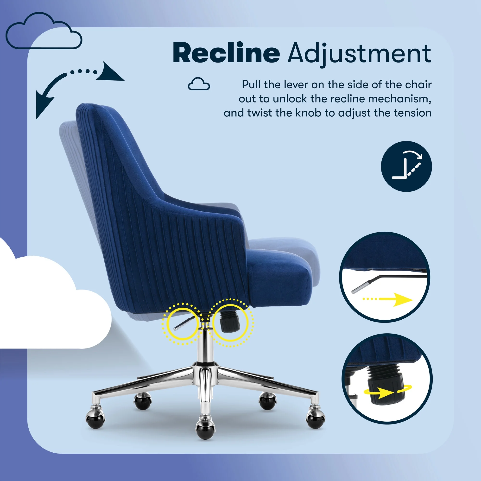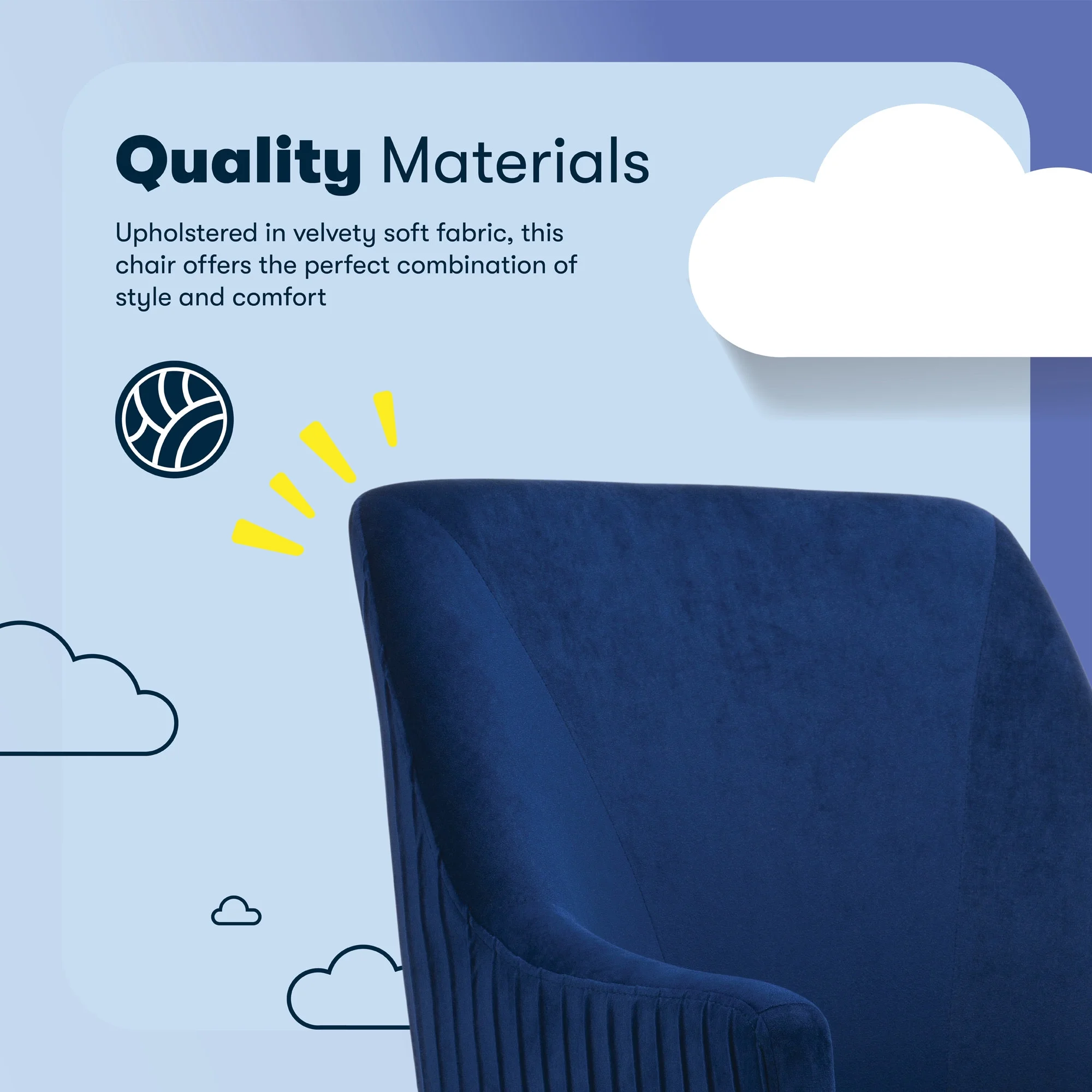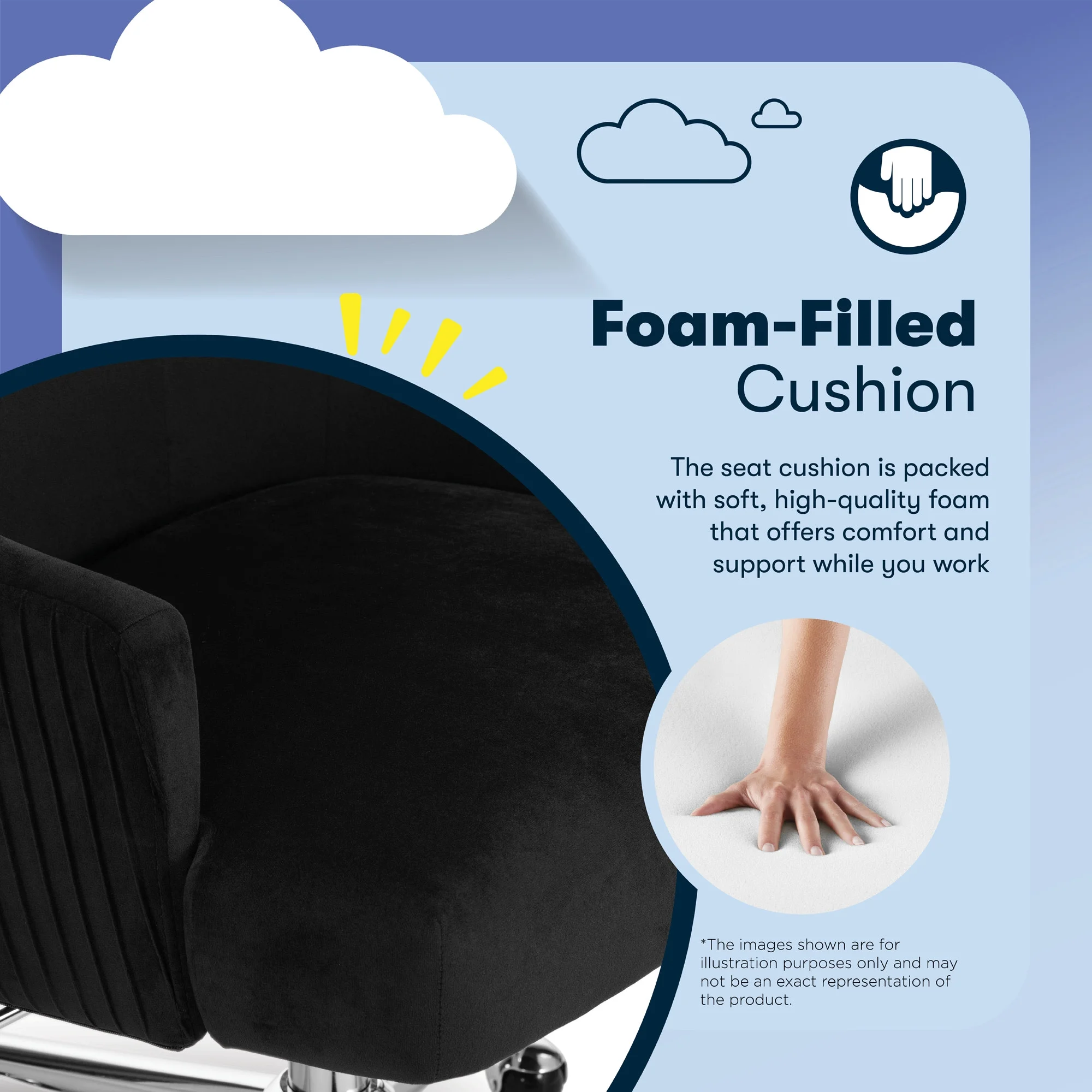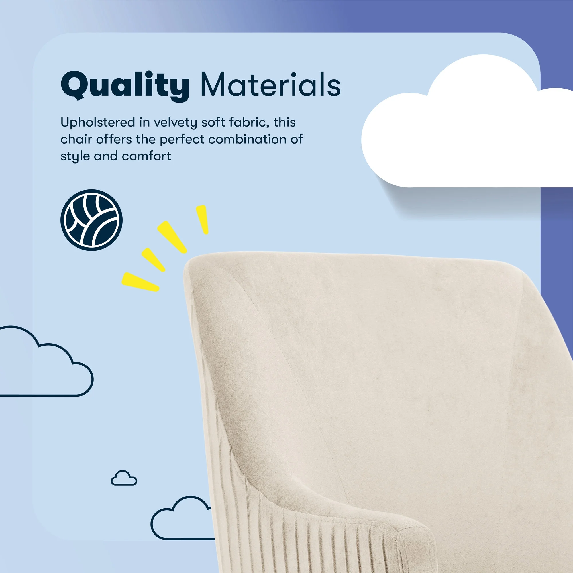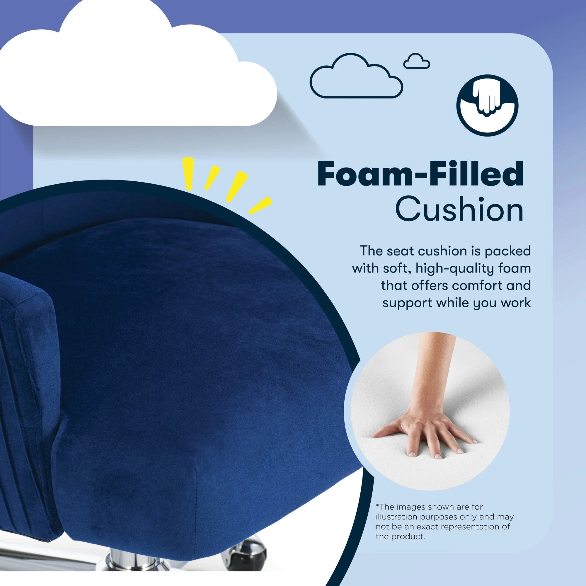 The better you sit, the better you'll feel. Whether for work, play, or any other activity that has you sitting in our chairs, we believe comfort is everything. We know it's a big responsibility and take it seriously, just as we do with our mattresses. With over 15 years of making chairs and innovating with designs, materials, and technology, we at Serta know what it takes to give you a comfortable sit. Strike a pose and channel your inner boss babe with the Serta Mid-Century Modern Desk Chair. This chair isn't just comfortable. It's a statement piece for your home office. You'll want to be seen sitting in this chair. Resting on top of a polished gold swivel base, this modern desk chair is wrapped in a soft and cozy velvet fabric with 4 alternative colors. Complement your office environment in Beige or Black for a classic and timeless appeal or add a splash of color in Pink or Midnight Blue for a chic and playful touch. This soft pleated home office chair delivers medium comfort with a well-cushioned mid-back that offers support for casual work sessions. The pocket coil seat, cushioned with layered foam, keeps you comfortable, while the low-profile arms can slide under most desks for ergonomic positioning and easy storage. Ready to elevate your workday? Add the Serta Mid-Century Modern Desk Chair to your cart and get ready to work in style.