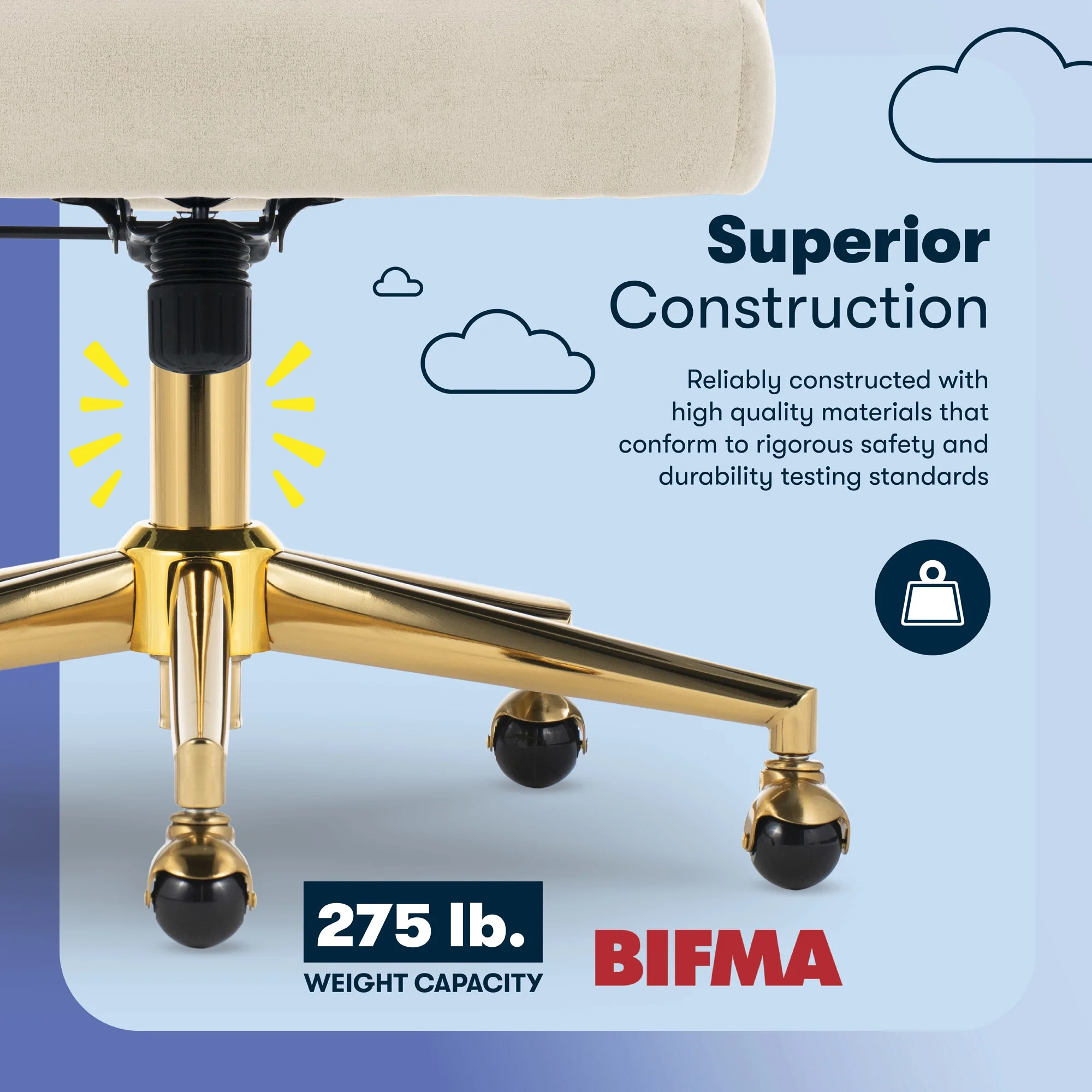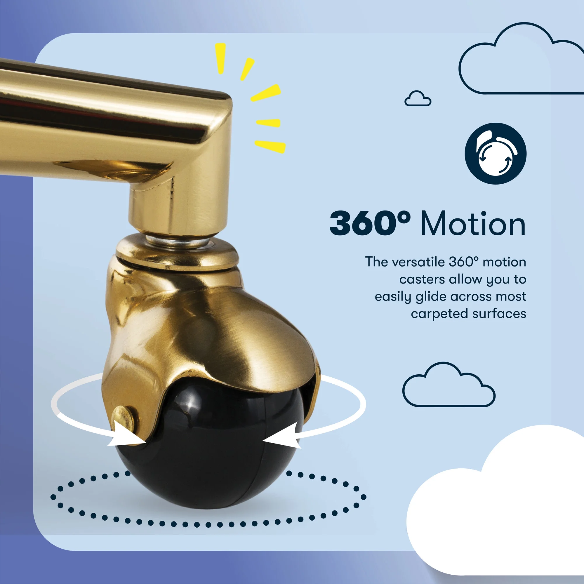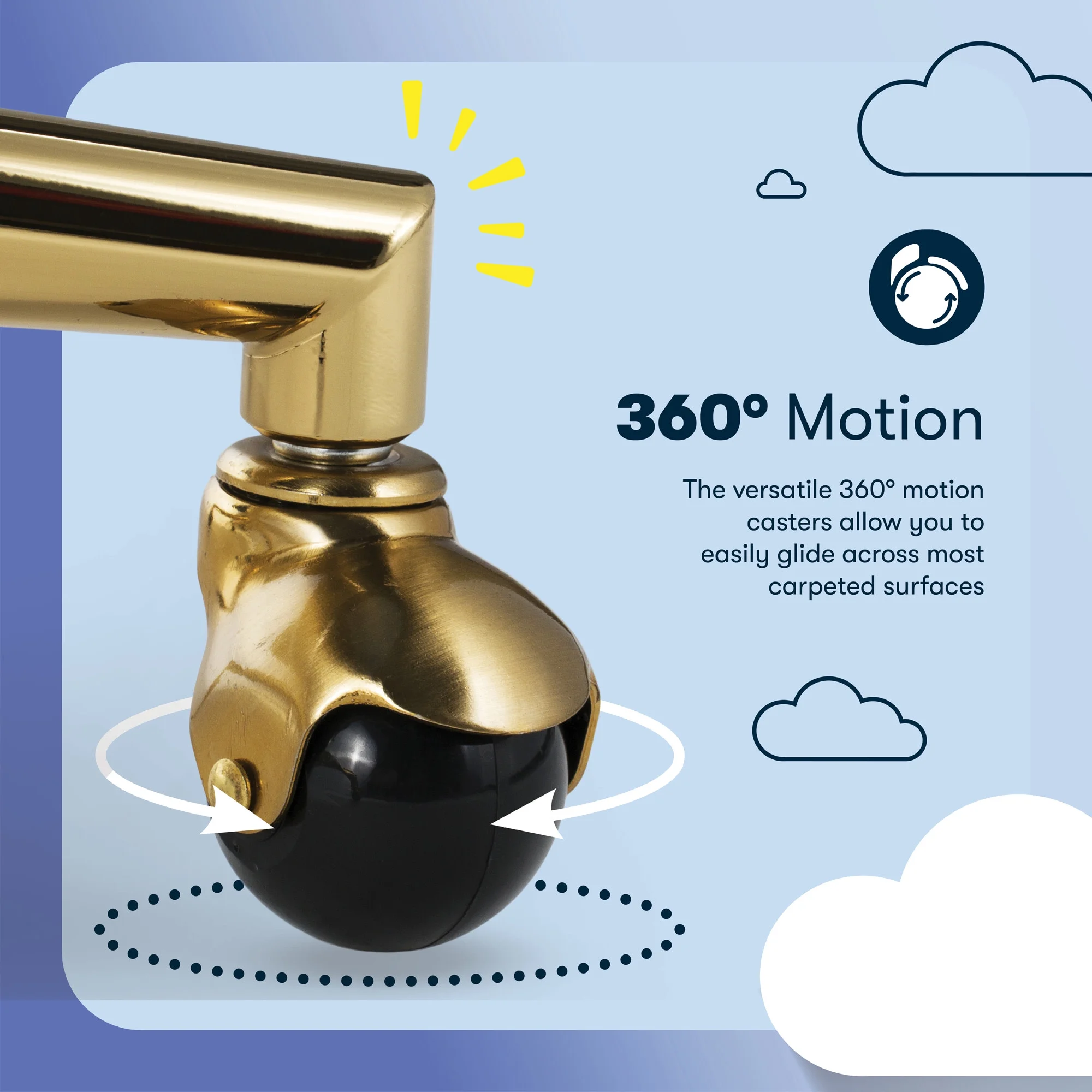 - BALL CASTERS & SERTA BUILD: A stainless steel base sits on top of gold single ball casters, and moves freely on rugs and carpets. Supports up to 275 lbs.