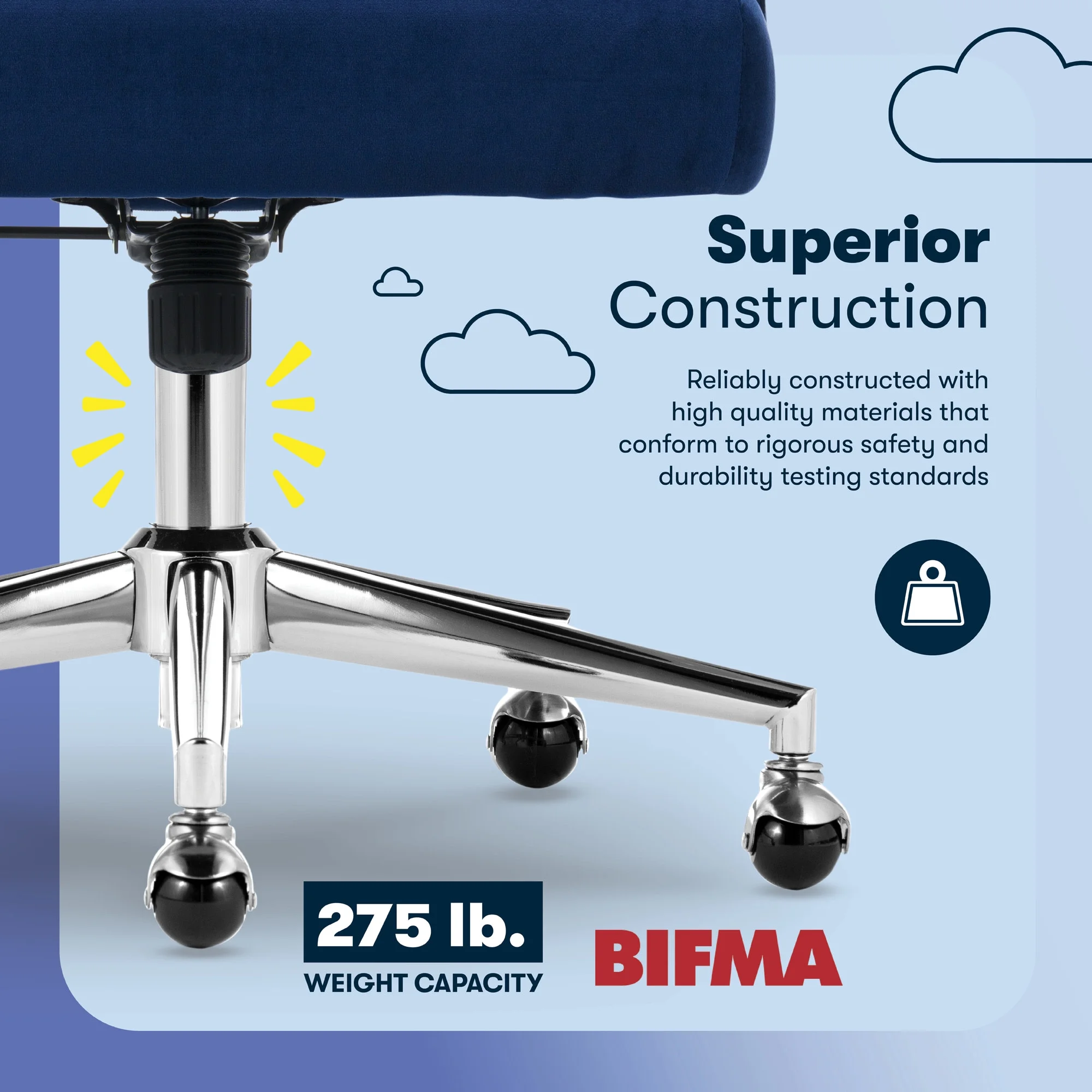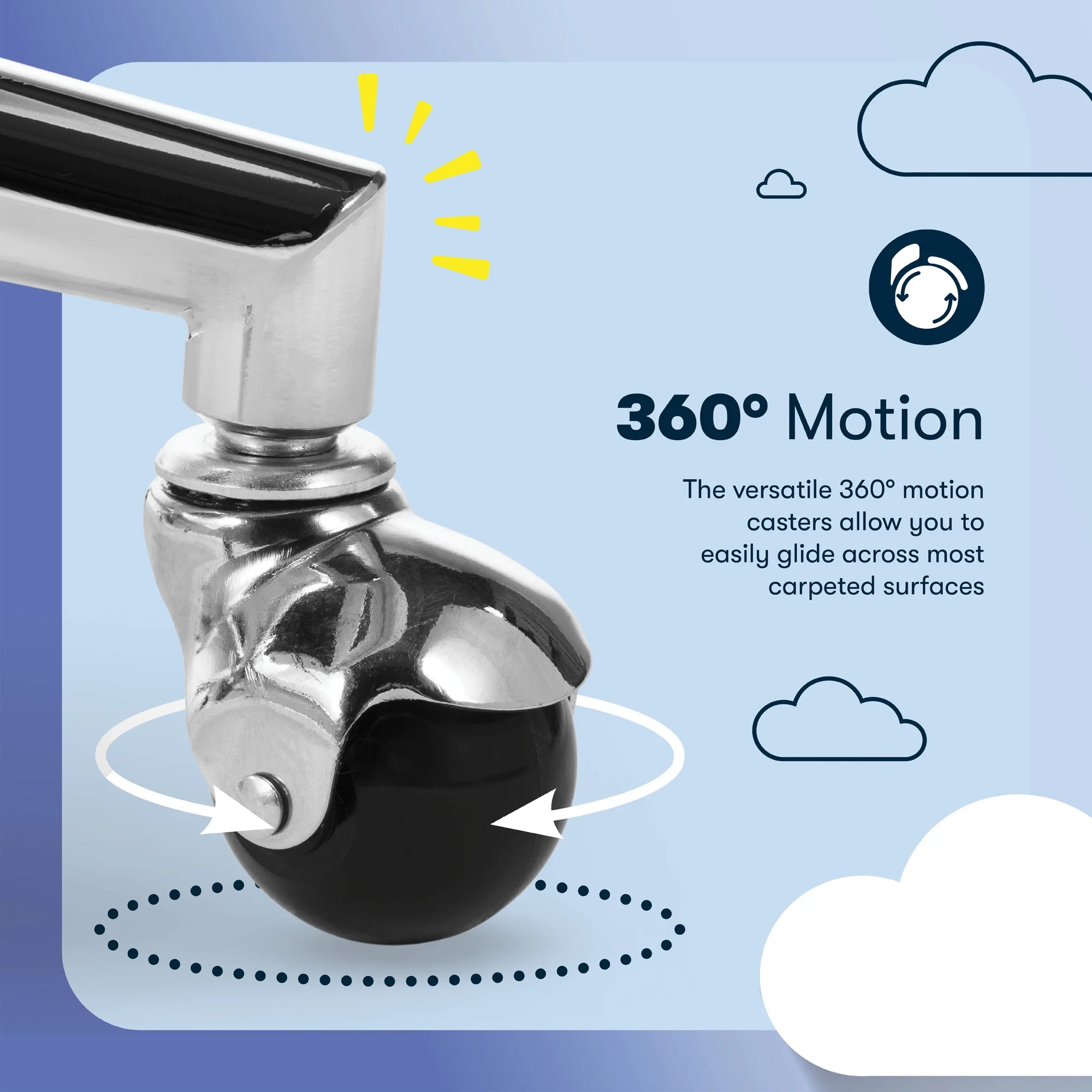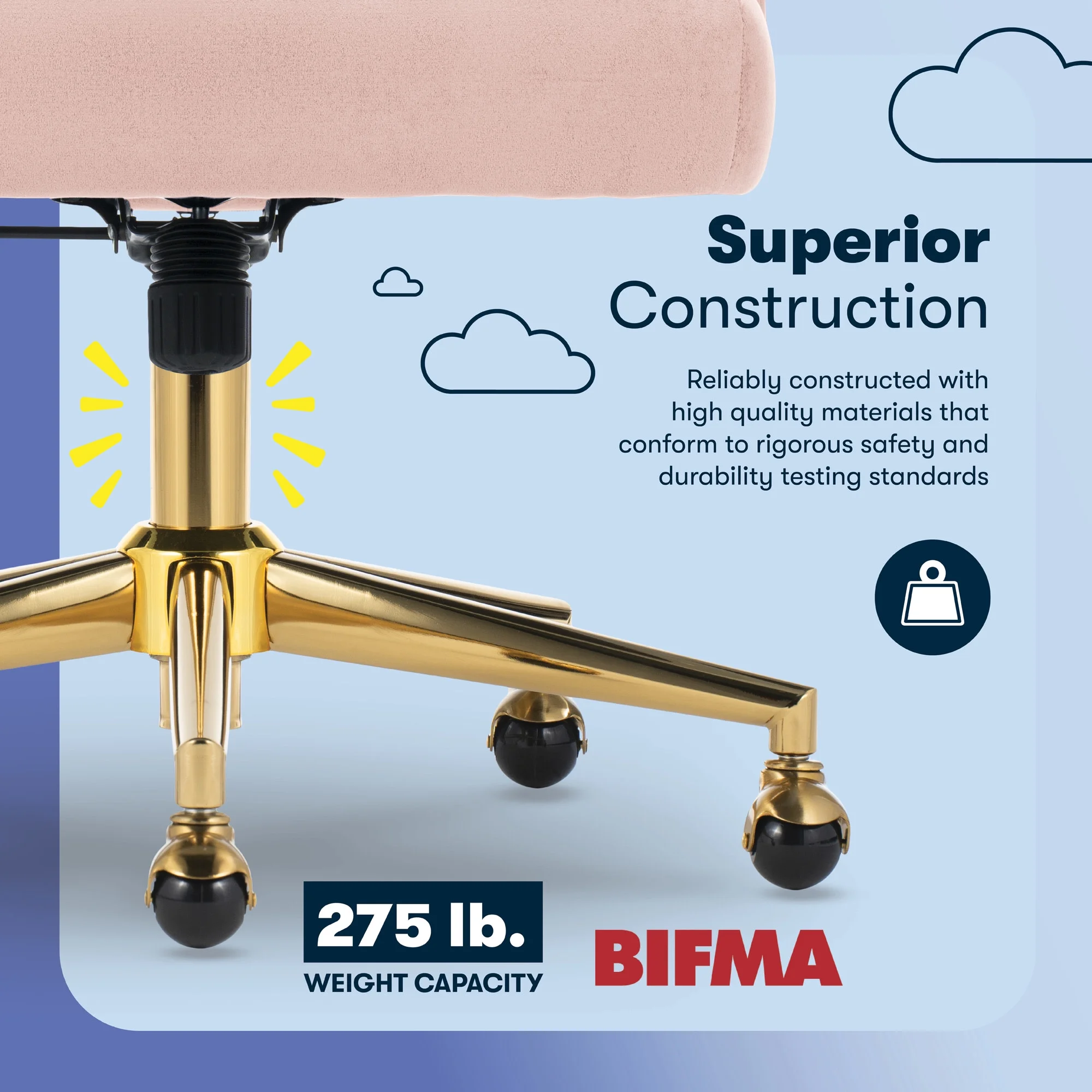 - BALL CASTERS & SERTA BUILD: A stainless steel base sits on top of gold single ball casters, and moves freely on rugs and carpets. Supports up to 275 lbs.