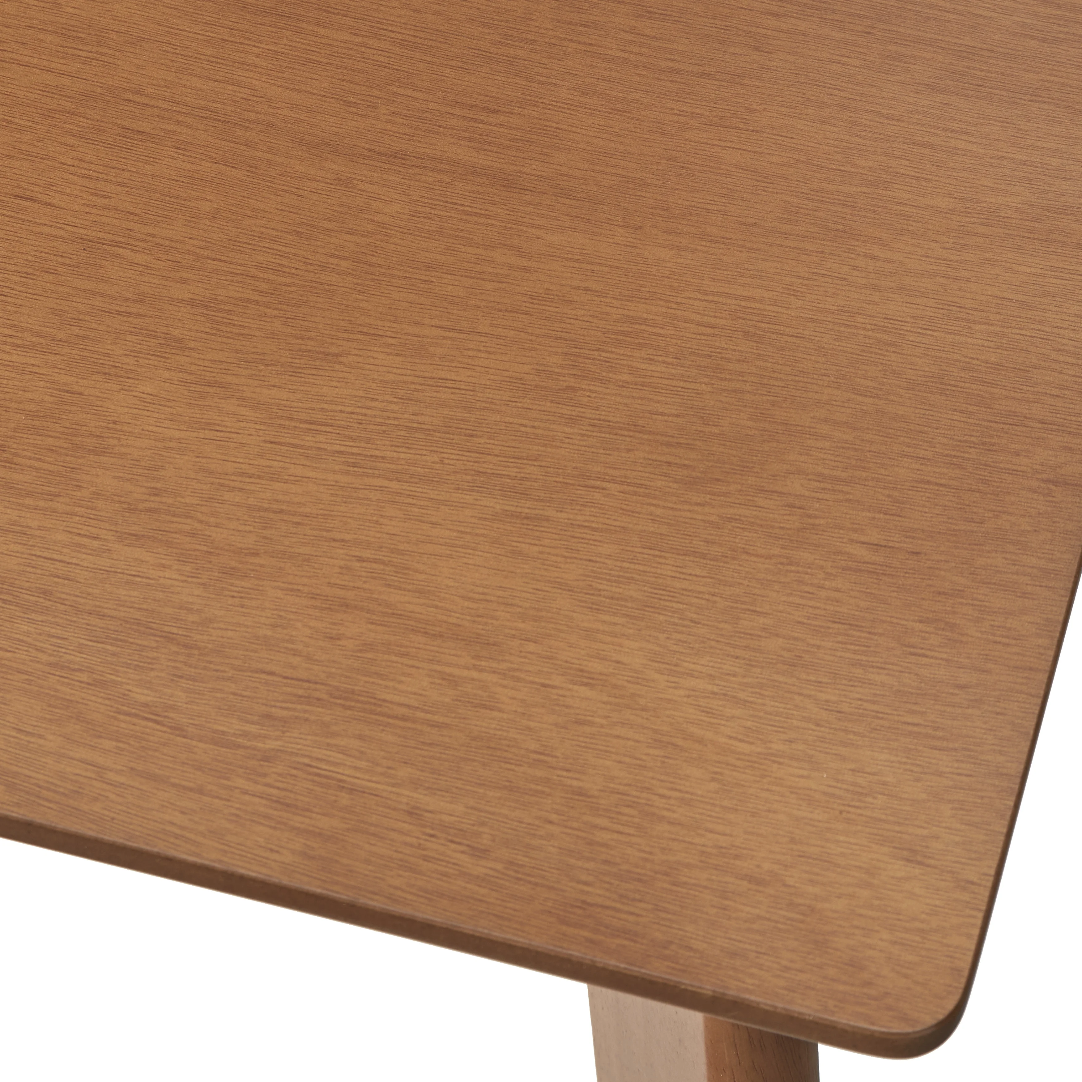 - Tabletop and seats are constructed of MDF with veneer with solid rubberwood legs