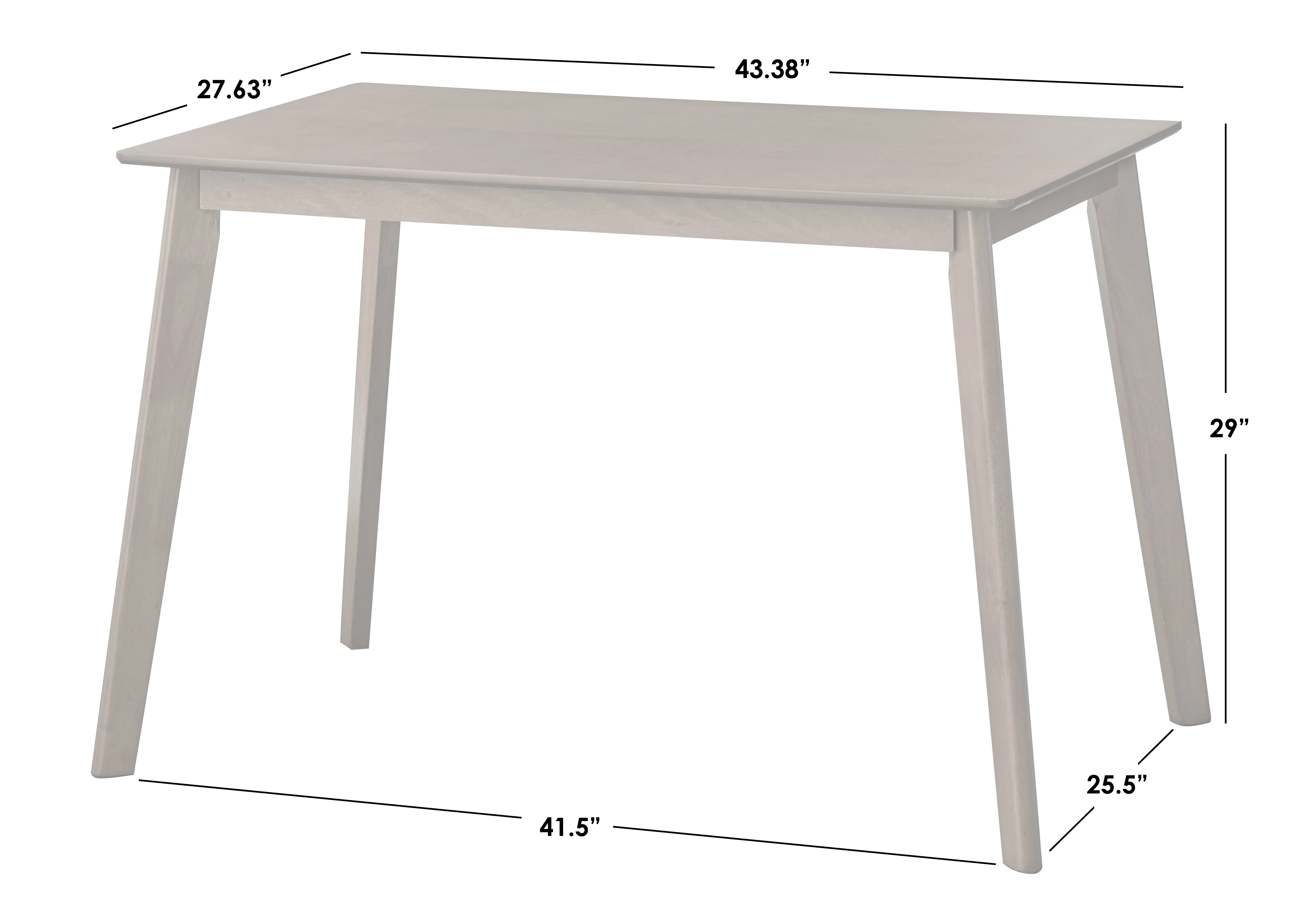 - Table overall dimensions: 29.1 inches height x 43.3 inches length x 27.5 inches depth