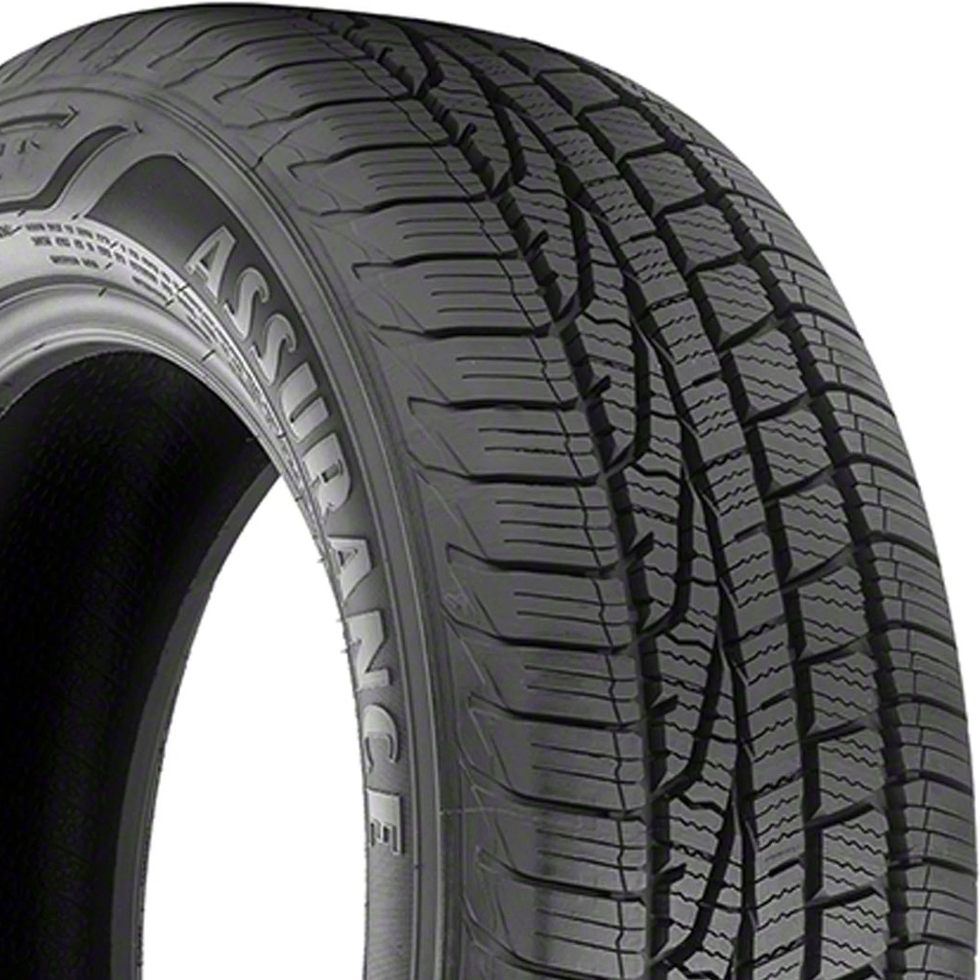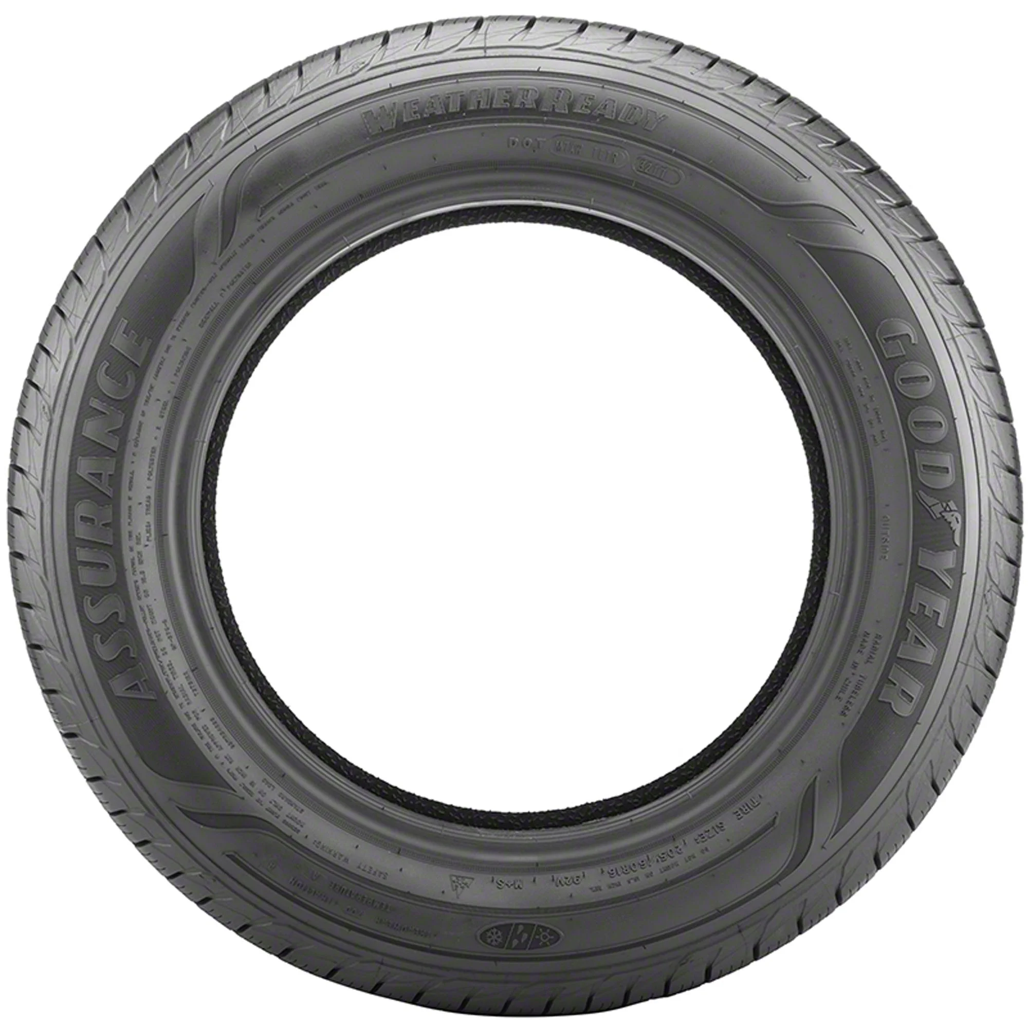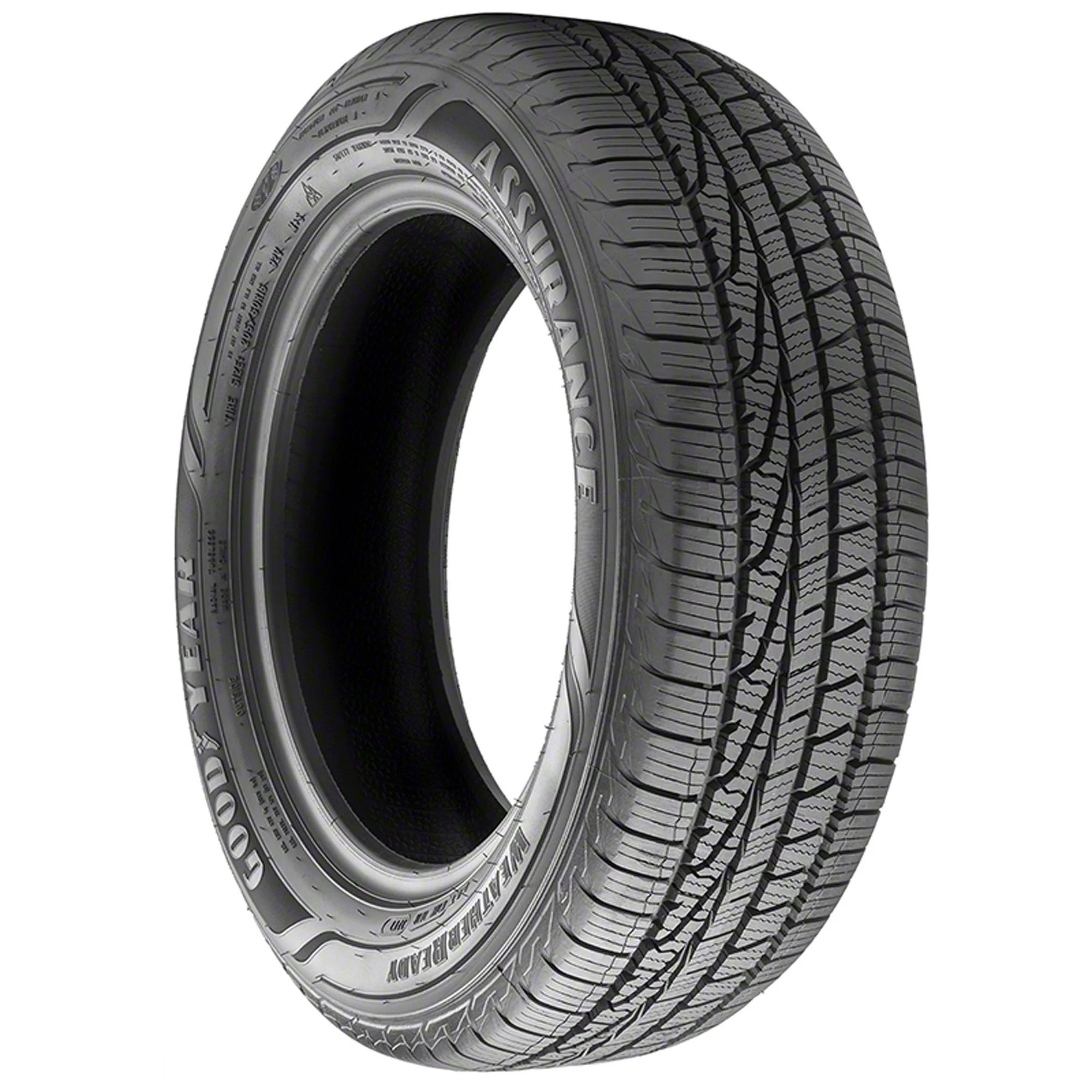 The all-weather Assurance WeatherReady tires by Goodyear deliver all-weather traction. They feature weather reactive technology that makes tread to lock while cornering and then open adding biting edges on wet surfaces. These tires feature an asymmetric tread design with sweeping traction grooves that evacuate water from the contact patch to improve wet surface grip. The special all-season rubber compound with soybean oil remains pliant even in cold temperatures.