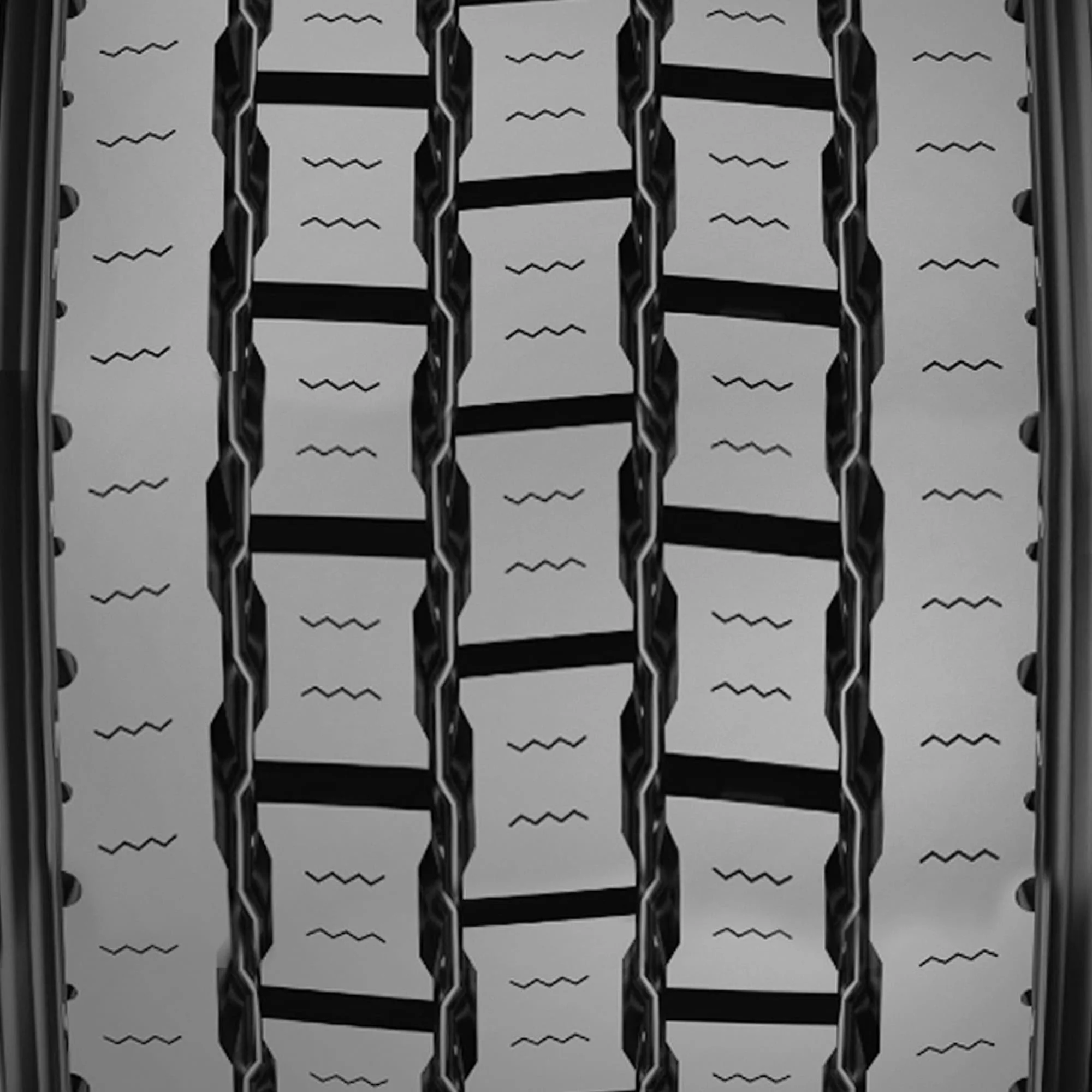 Made for semi-trucks and commercial vehicles, the BlackHawk BDL81 FST is a highway-terrain, all-season tire for the drive axle. The closed shoulder tire features a deep tread depth for longer service life. The solid shoulder ribs of the BDL81 FST provide better stability and prevent uneven wear, while the three-row aggressive tread block arrangement boosts traction and resists tread squirm. The dual-cut tread block siping on the tread blocks allows the BlackHawk BDL81 FST to maintain traction on wet and wintry surfaces. Additionally, the advanced tread compound of the BlackHawk BDL81 assures rolling resistance for increased fuel efficiency and improves traction on wet surfaces.