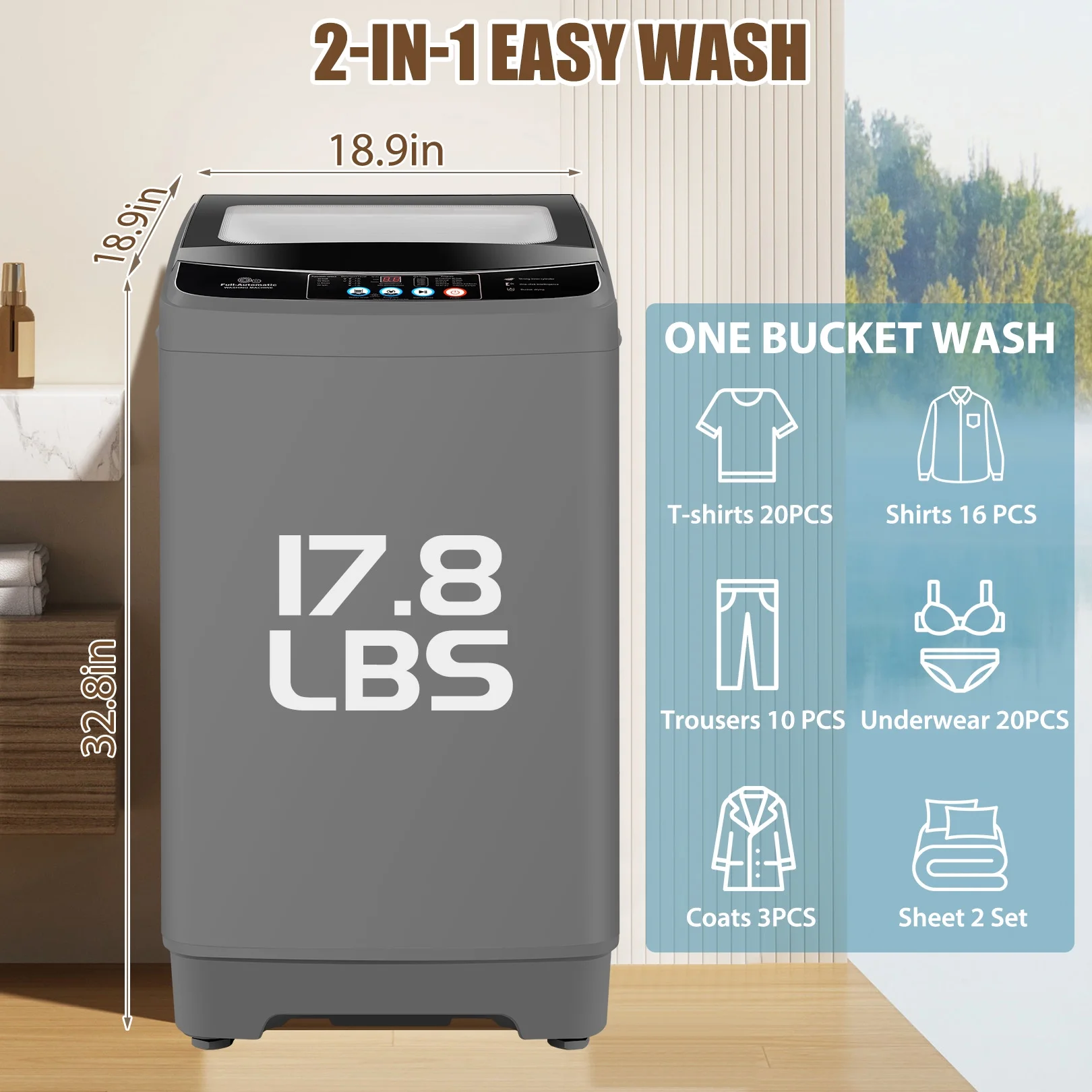 Veeboto 17.8 lb Full Automatic Washing Machine, Compact Washing Machine with Drain Pump, Power Motor 20 - Mins Quick Wash, LED Display, Washer and Dryer Combo Low Noise for Apartment Dorm Household