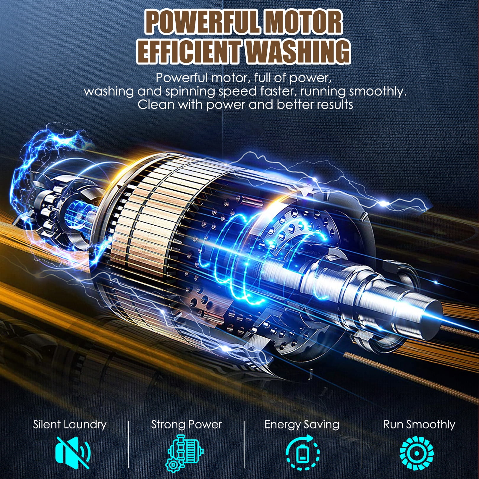 - High-Quality Motor, Super Power Saving -- This portable washer machine has a high-quality and durable motor that can precisely control the washing rhythm and provide strong power. The motor consumes 85% less energy than similar products, saving your family a lot of money. The washer and dryer machine has a built-in drain pump and an extended washing machine hose to remove sewage quickly. High-efficiency spin dryers dry clothes rapidly, removing up to 90% of moisture.