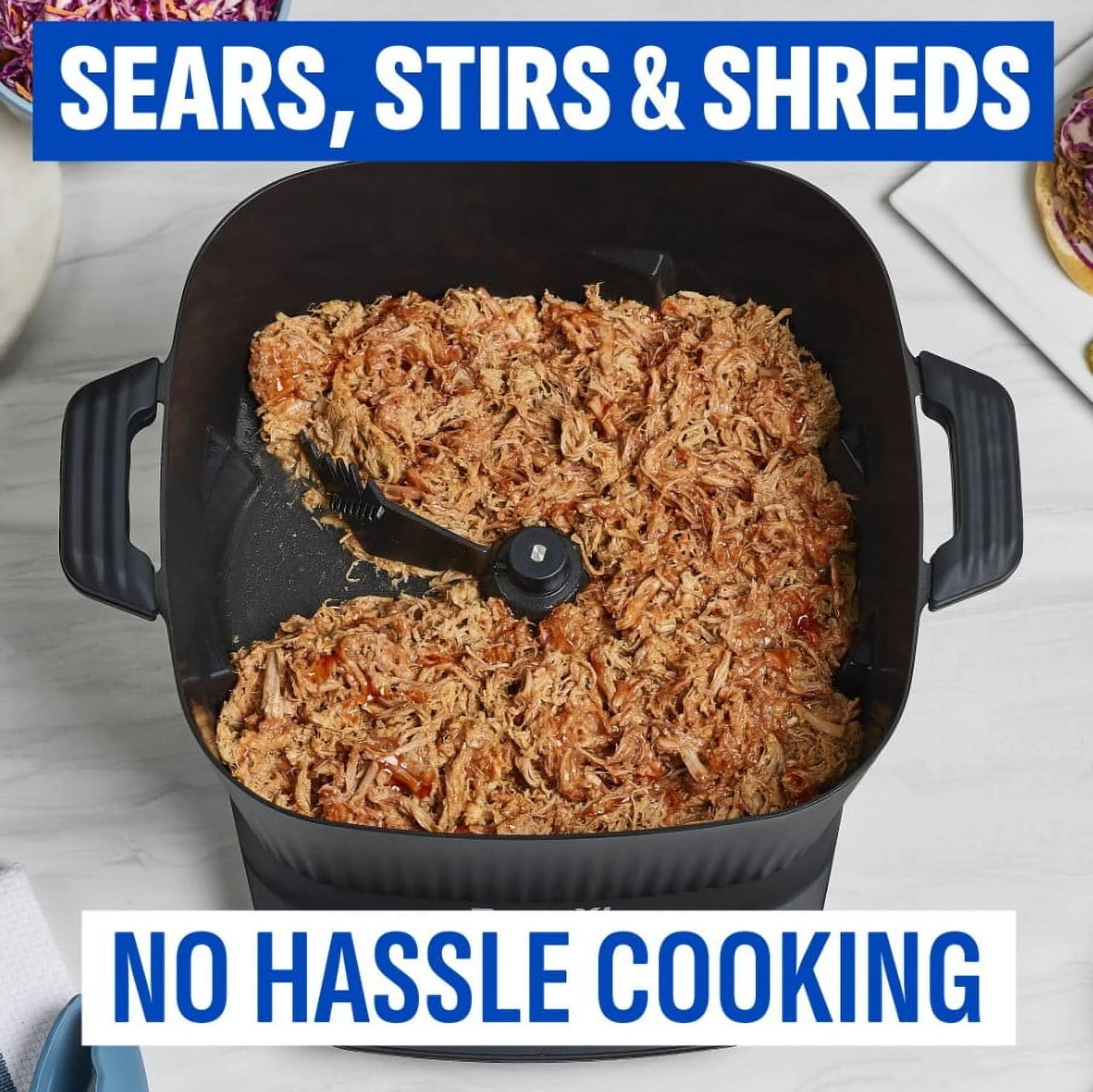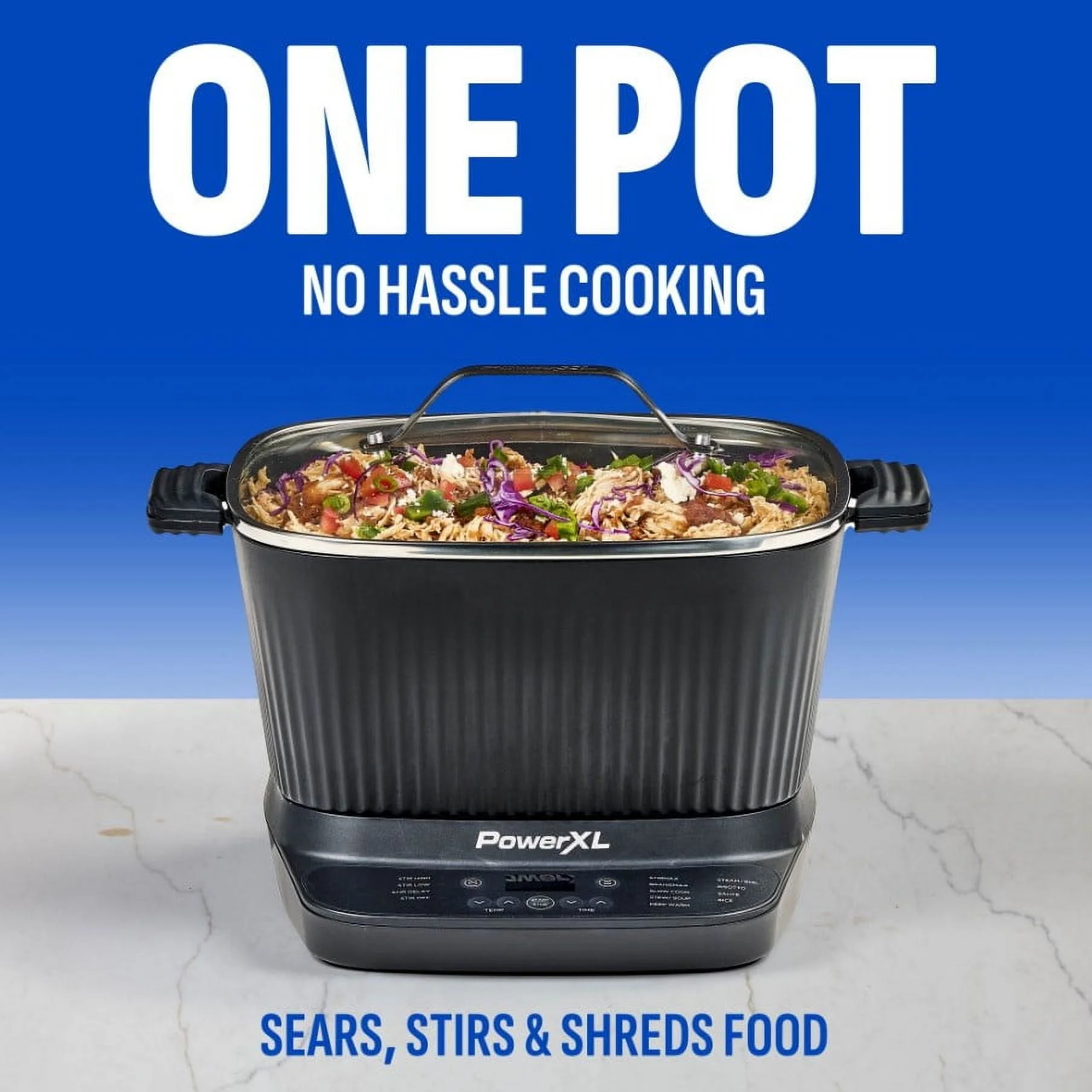 - The PowerXL Braise-Max smart preset sears before slow cooking.