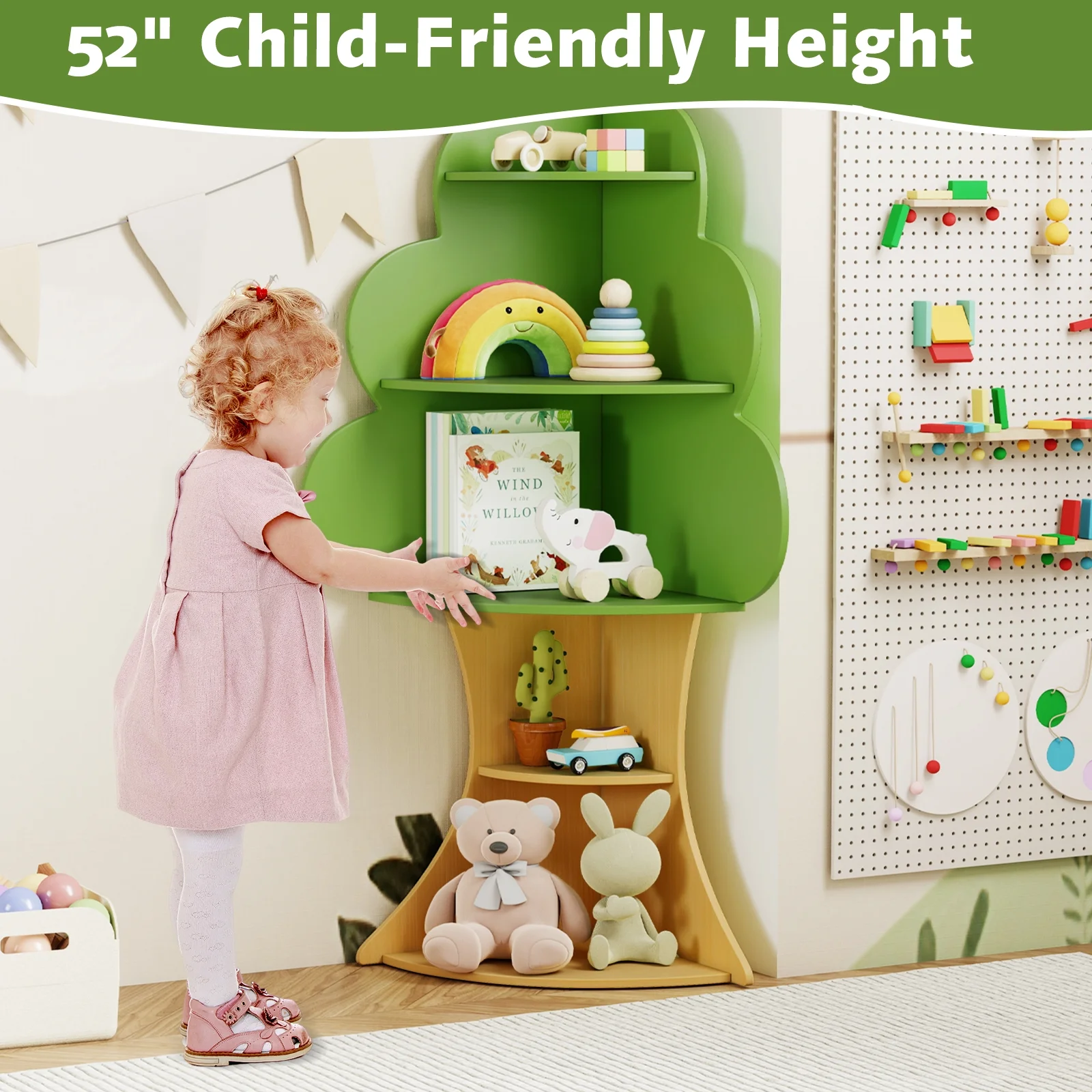 - Perfect Height for Kids: With a height of 52 inches, the wooden montessori toy shelf is convenient for children to reach their favorite books and toys independently. It is an excellent holiday gift for kids aged 3 to 12.
