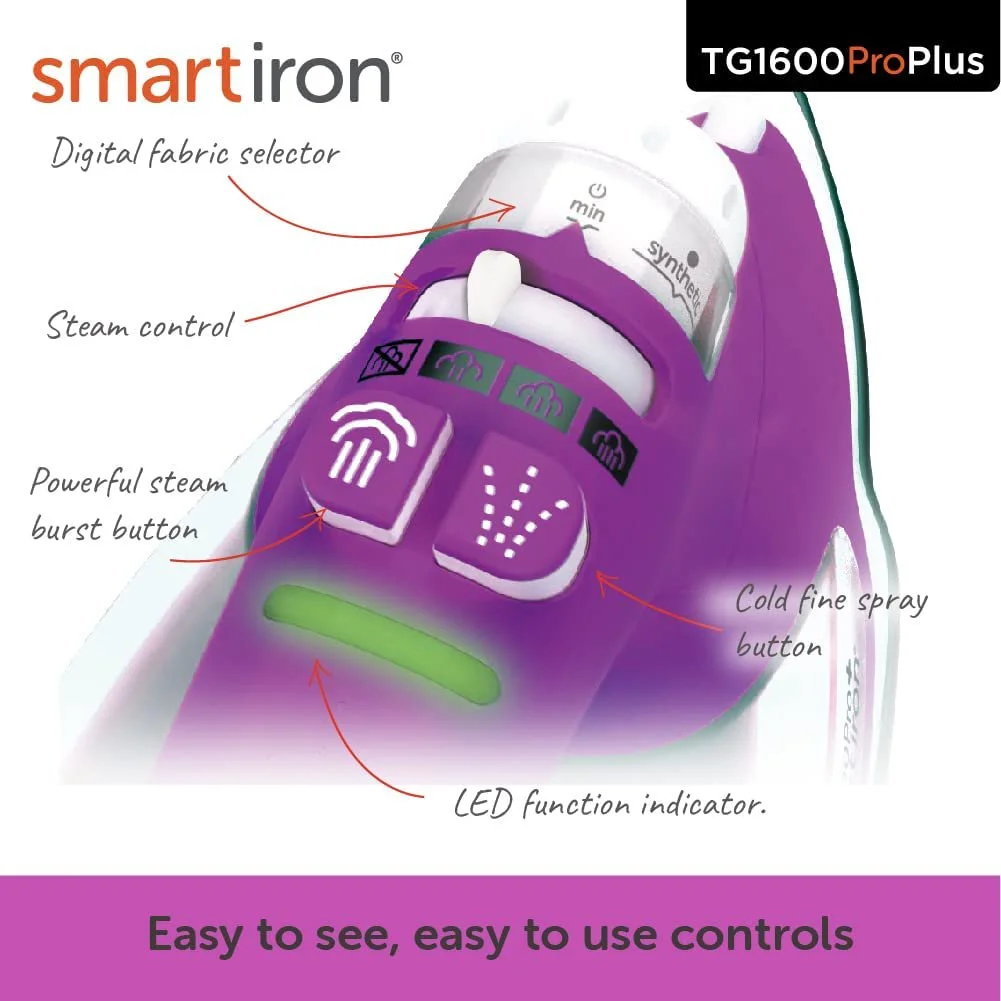 - ProPlus Smart Iron Auto-Lift - Simply touch the handle, and the iron lowers, ready to work. Take your hand off, and the patented scorch guards lift the iron preventing scorched and burned fabric. Keeping the iron horizontal is not only safer, but it also saves time as well as your wrists and shoulders!
