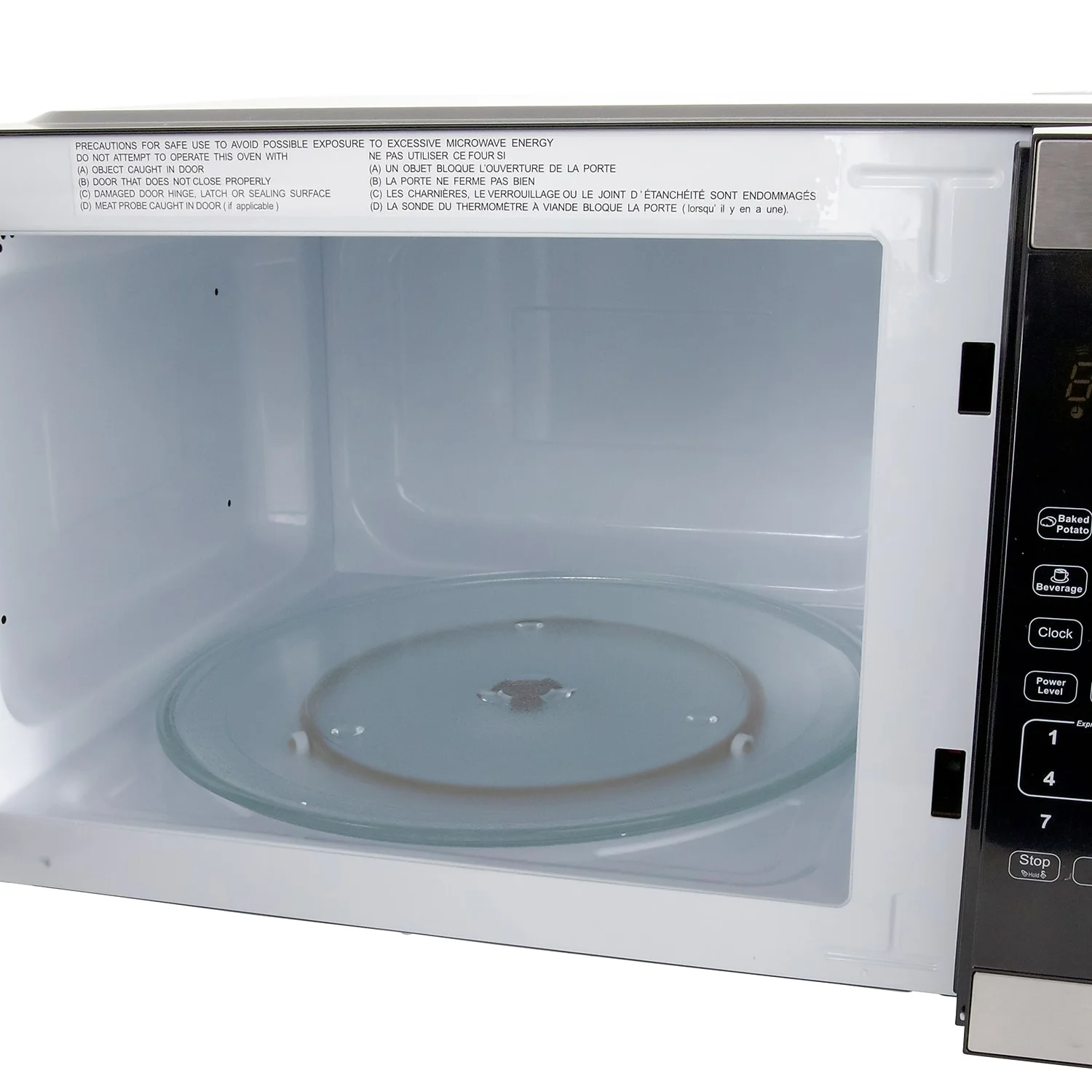 - This microwave boasts 1000W of cooking power with ten power levels for effective cooking. Electronic control panel is easy to use. Removable glass turntable.