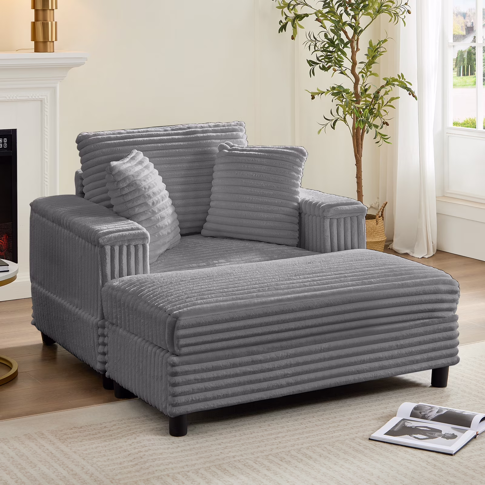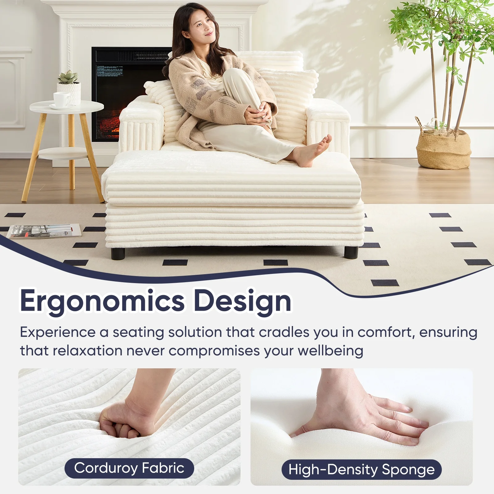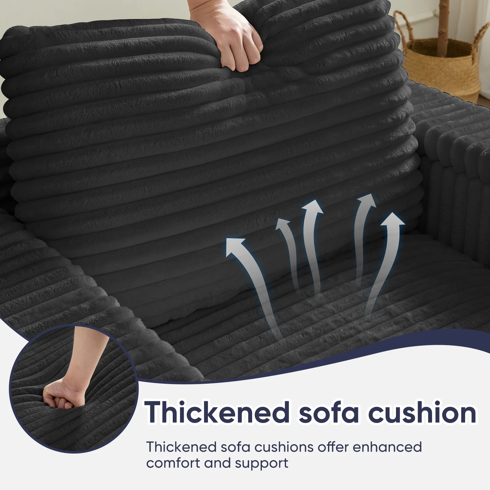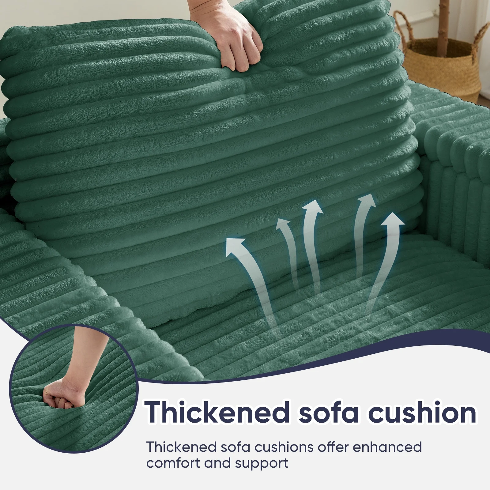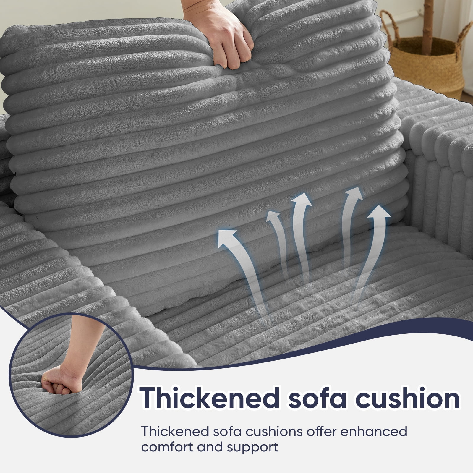 The surface is made of wide striped velvet (corduroy) fabric, which is soft to the touch and easy to clean. The interior is filled with high resilience foam to ensure long-lasting comfort and no deformation, providing a long-lasting cozy experience for every family member.
