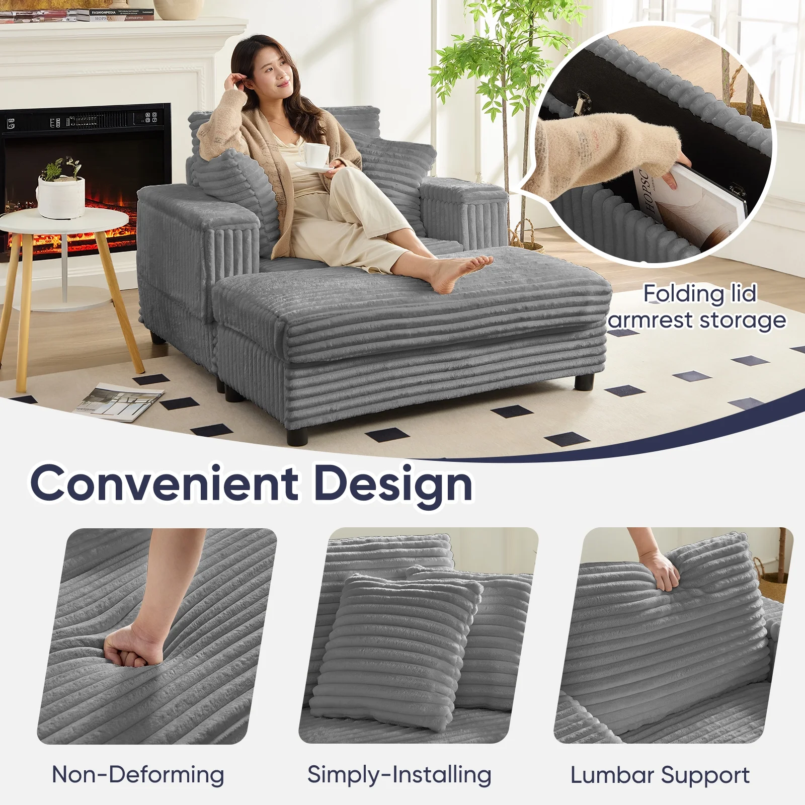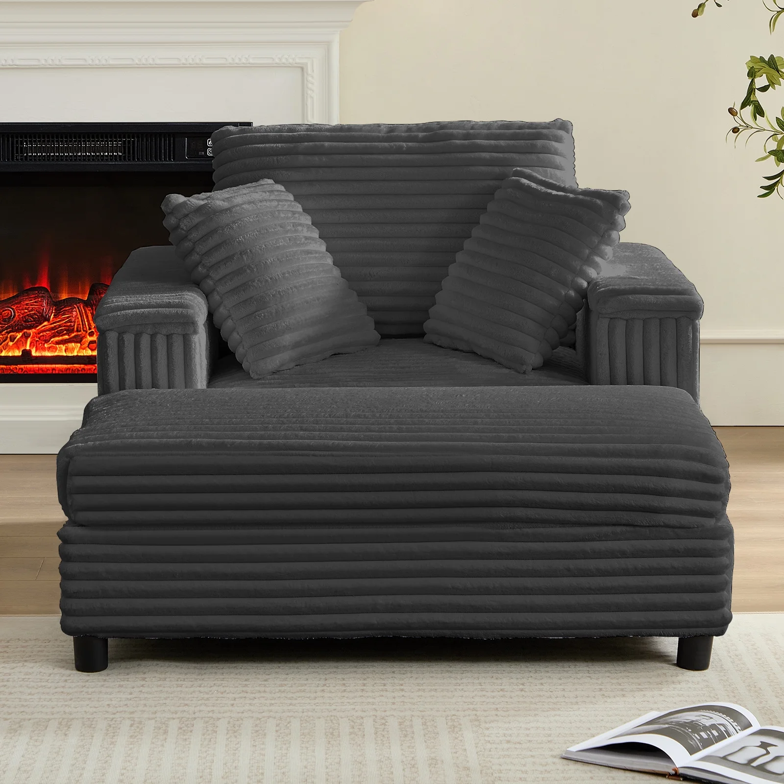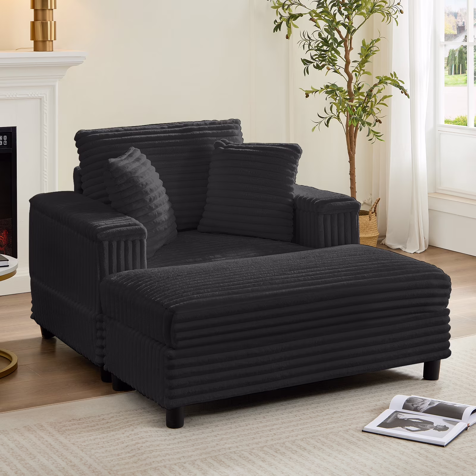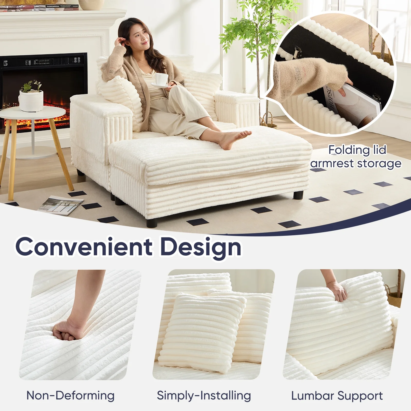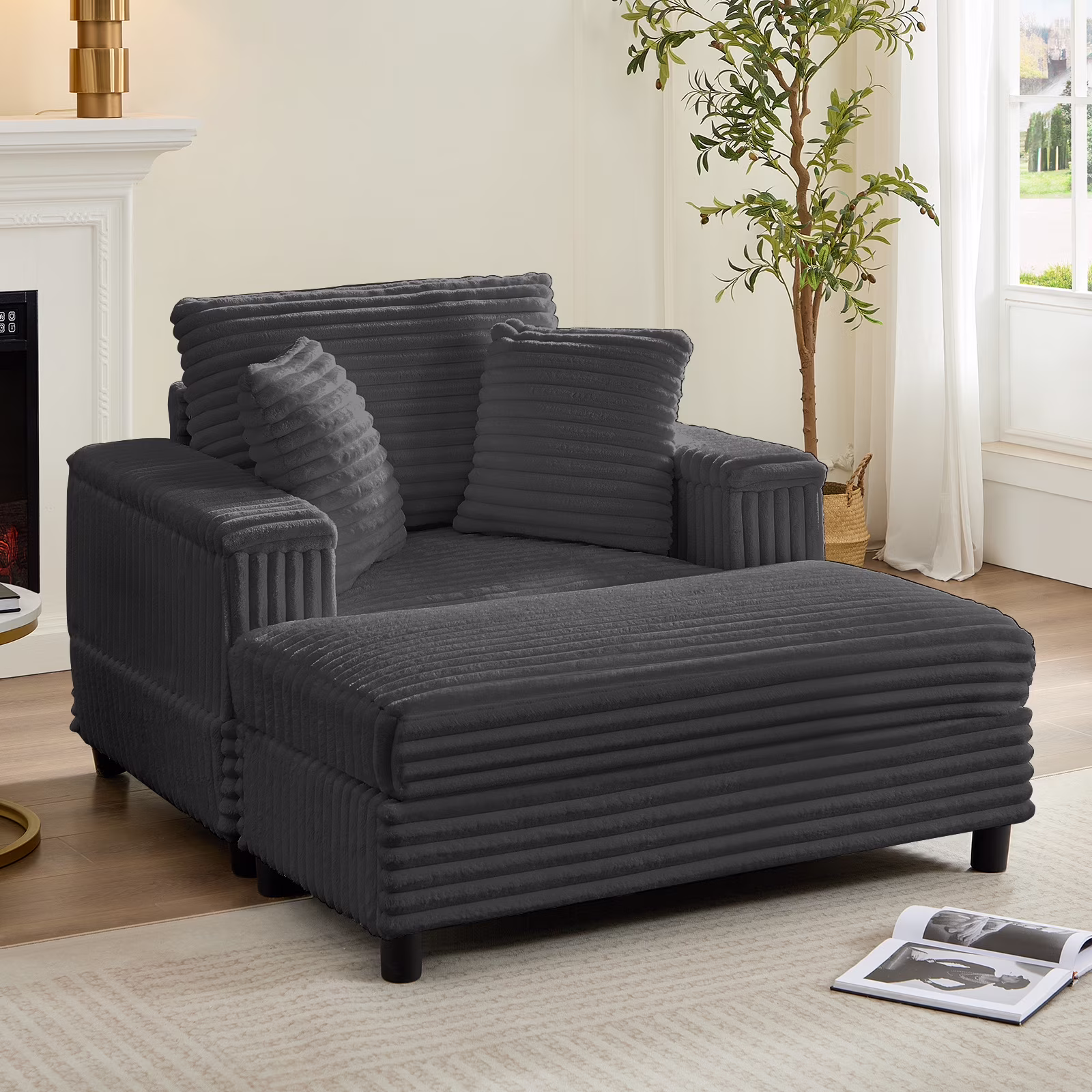 The surface is made of wide striped velvet (corduroy) fabric, which is soft to the touch and easy to clean. The interior is filled with high resilience foam to ensure long-lasting comfort and no deformation, providing a long-lasting cozy experience for every family member.