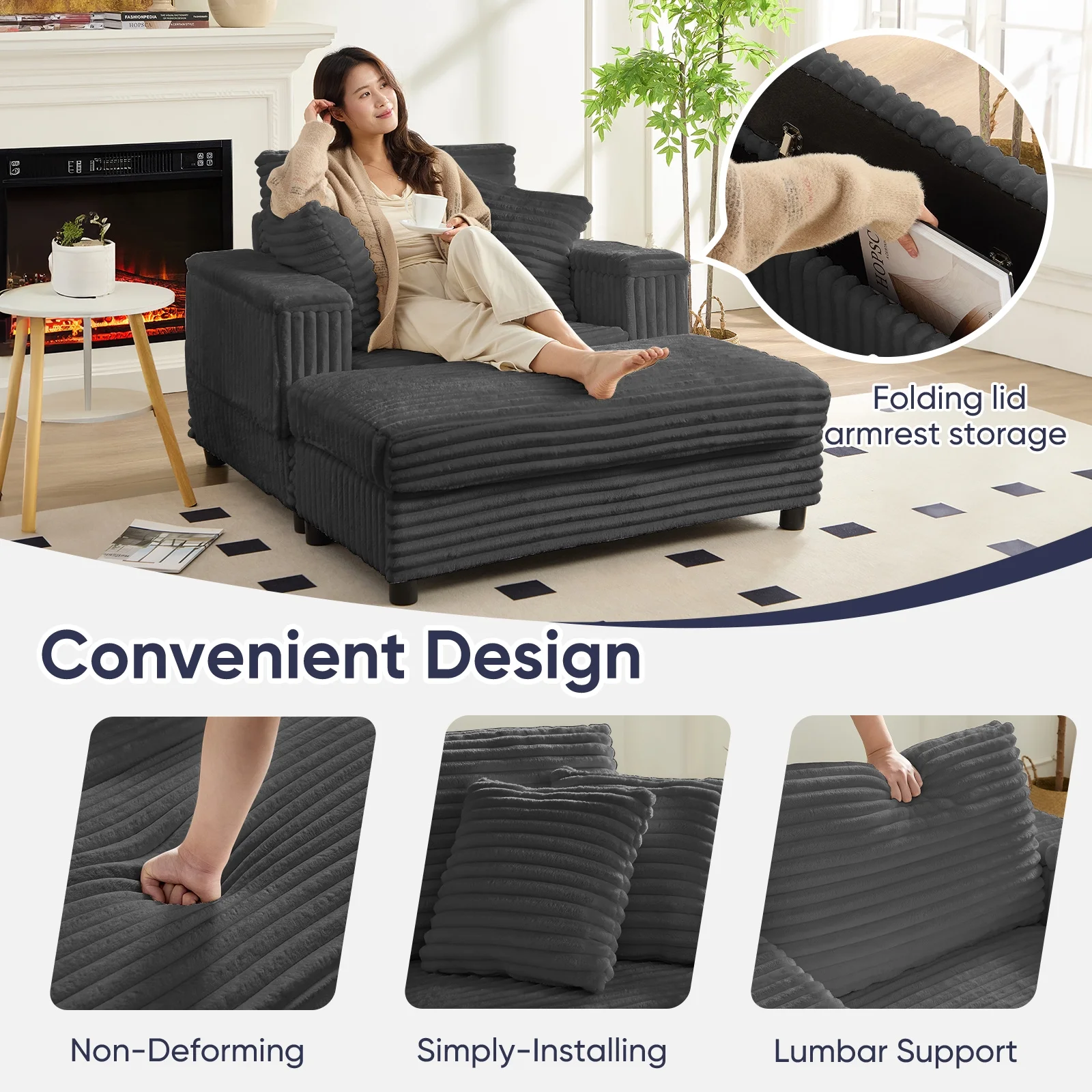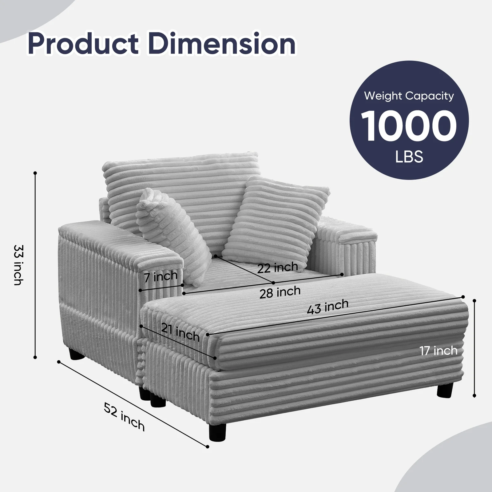 Spacious enough for users of all sizes. Whether you're relaxing, reading intently or enjoying a TV program, it offers unparalleled comfort with a thicker and deeper seat for complete relaxation. The single sofa is paired with a ottoman that transforms into a recliner, providing versatility for a variety of occasions and needs.