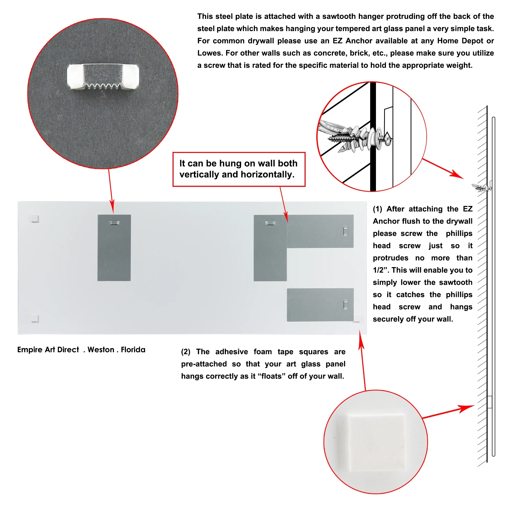 - Stainless steel sawtooth hanger safely secure art to wall