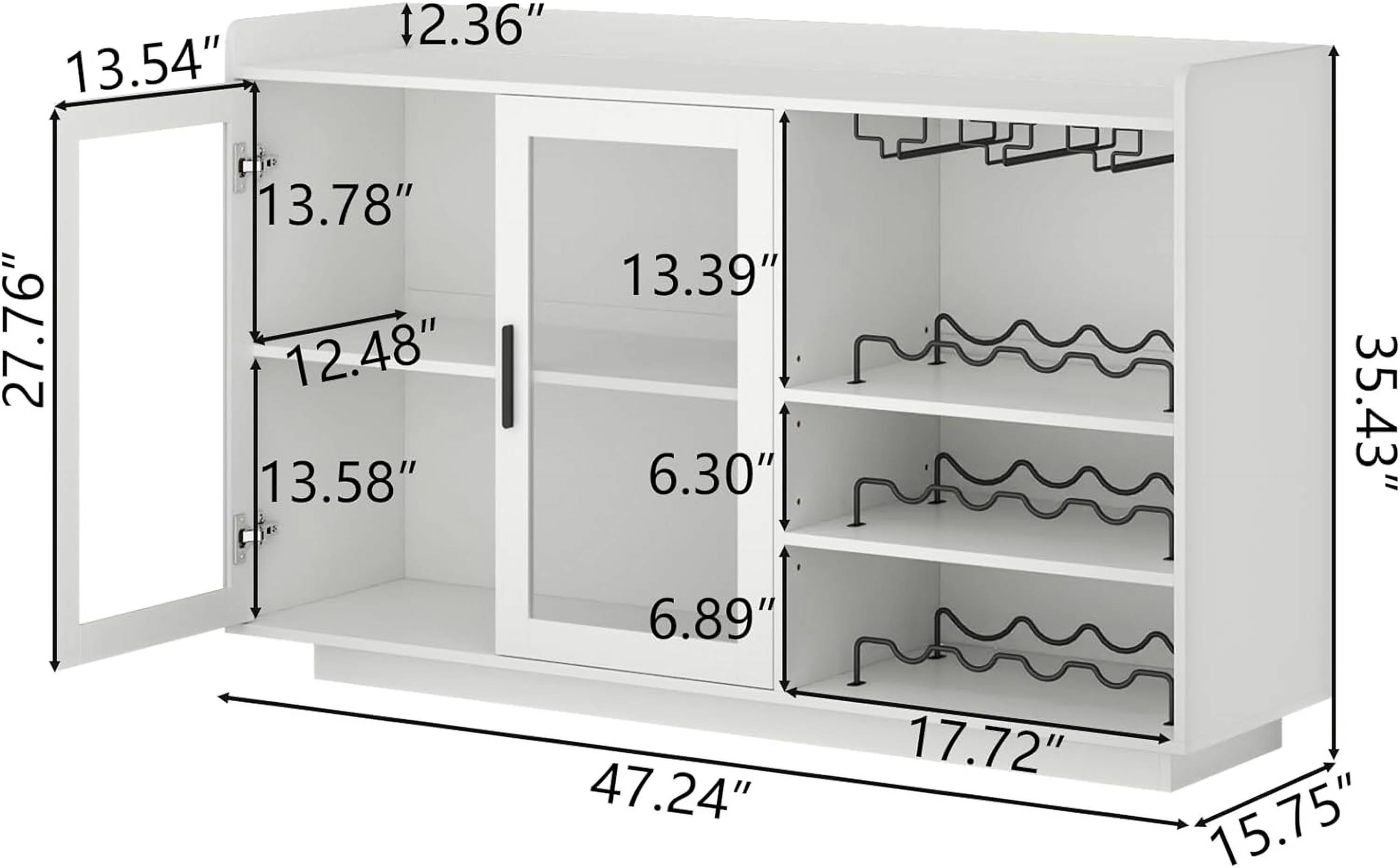 Wine Bar Cabinet with LED Lights, Floating Coffee Bar with Glass Rack and Removable Wine Racks, Modern Buffet Sideboard with Storage Shelves, Kithchen Bar with Glass Cabinet Doors