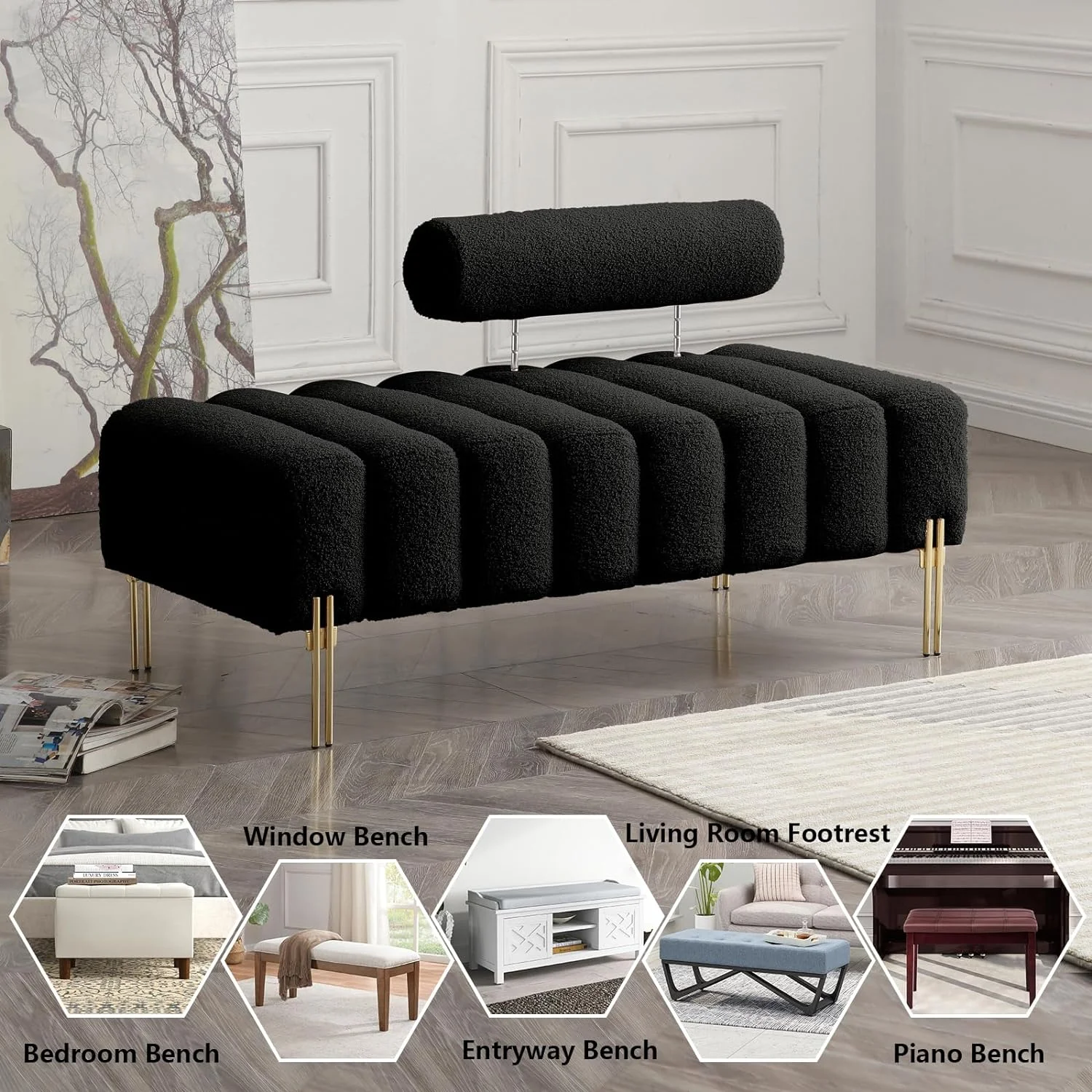 Miniyam Sherpa Upholstered Indoor Bench, White