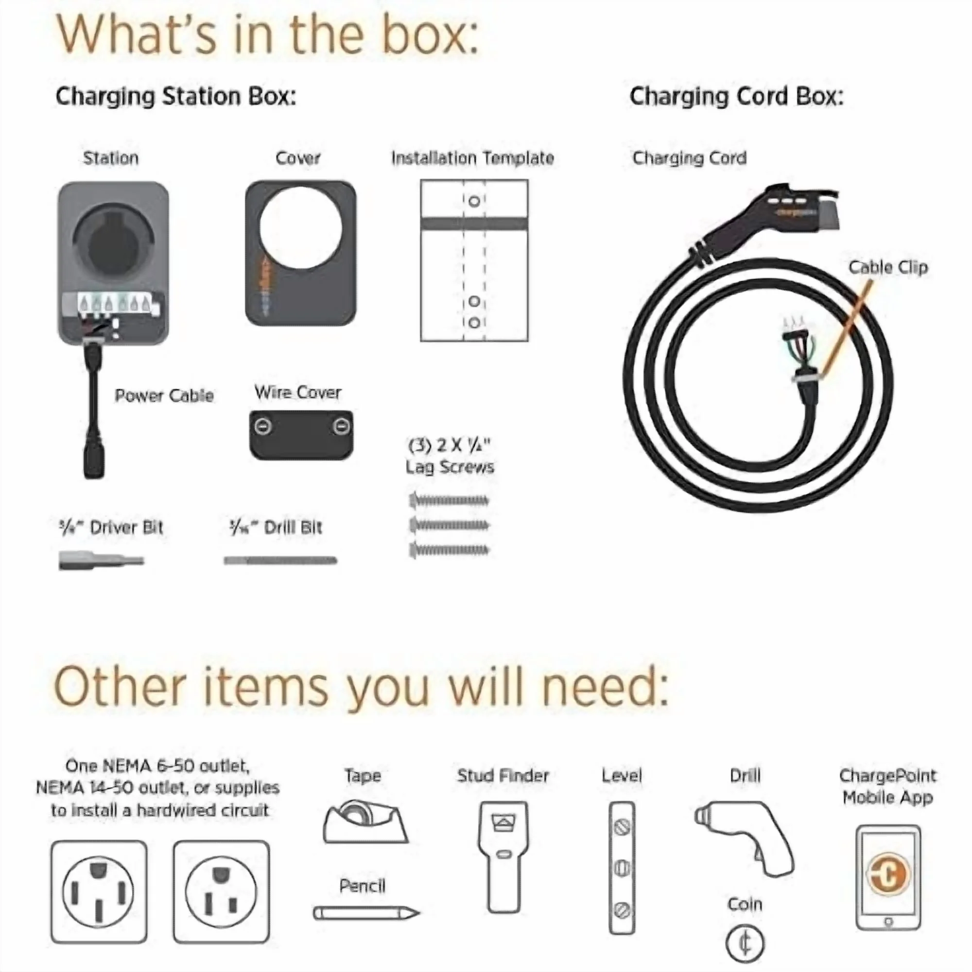 - Charging plug is compatible with electric cars that feature 16 to 50 amperage