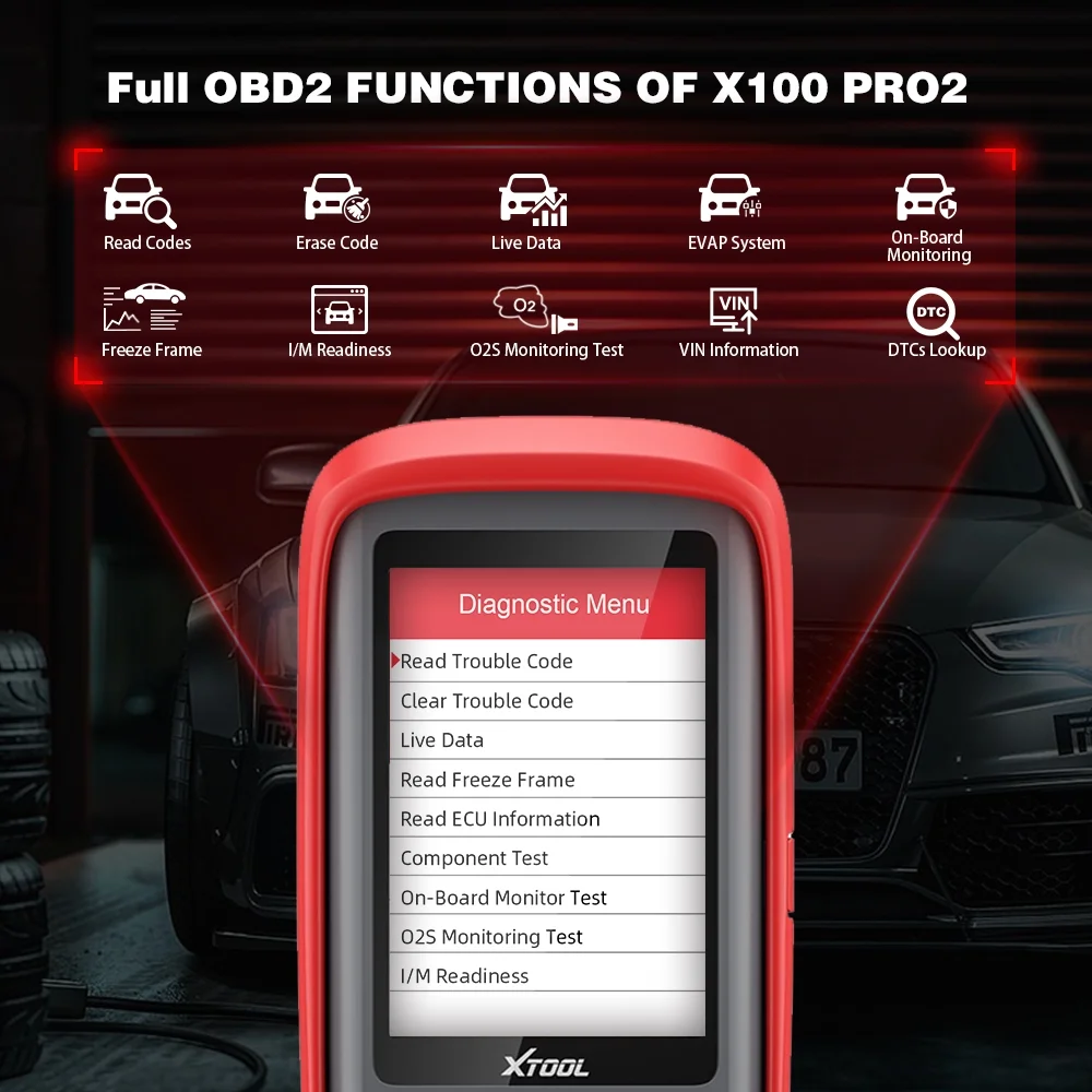 XTOOL X100 PRO2 automotive diagnostic tool is a professional-grade programador de teclas with EEPROM adapter, ideal for mechanics, locksmiths, and DIYers. It supports new programaci��n de teclas, ECU/ECM reset, VIN writing, EEPROM reading/writing, and immobilizer functions. This OBD2 scanner also provides full OBDII diagnostics like live data, freeze frame, readiness test, and sensor monitoring. Compatible with most OBDII-compliant vehicles. Comes with lifetime free software updates��no subscription needed!