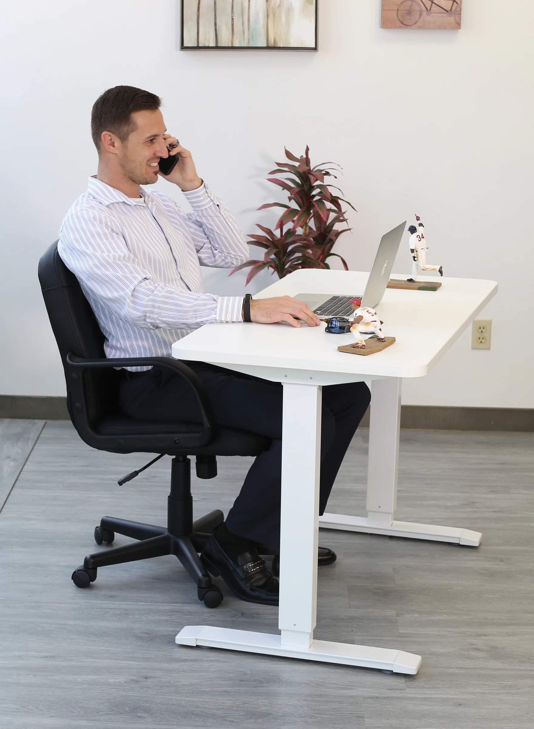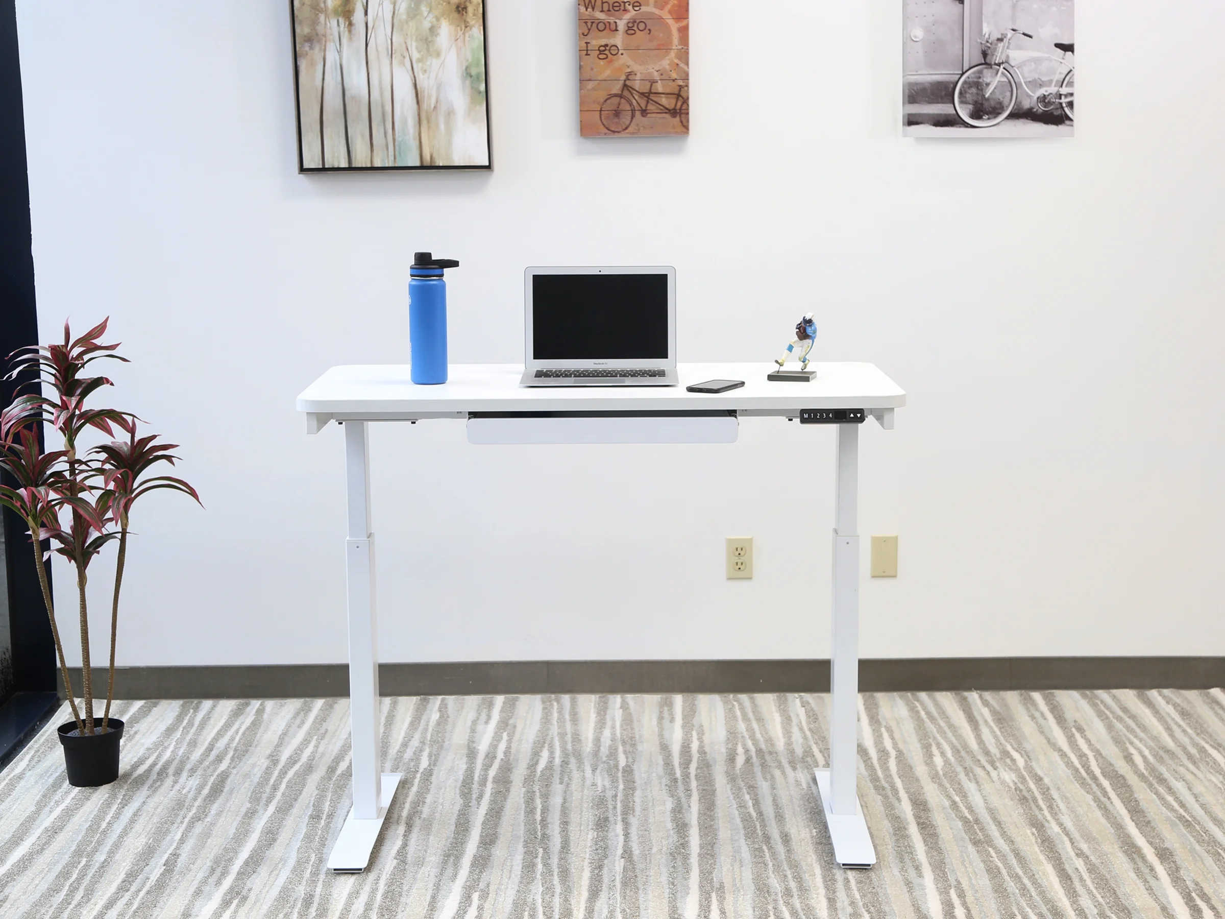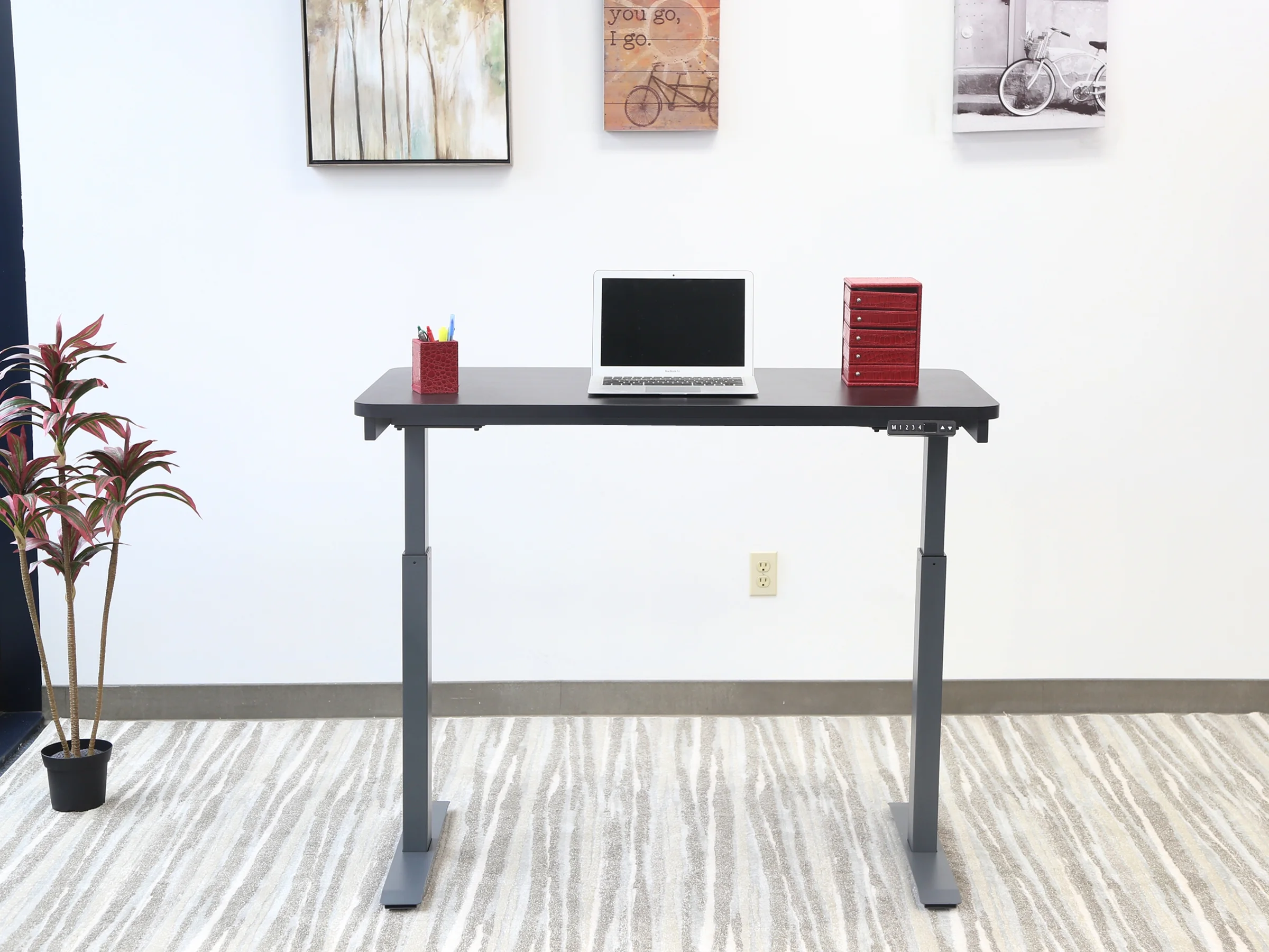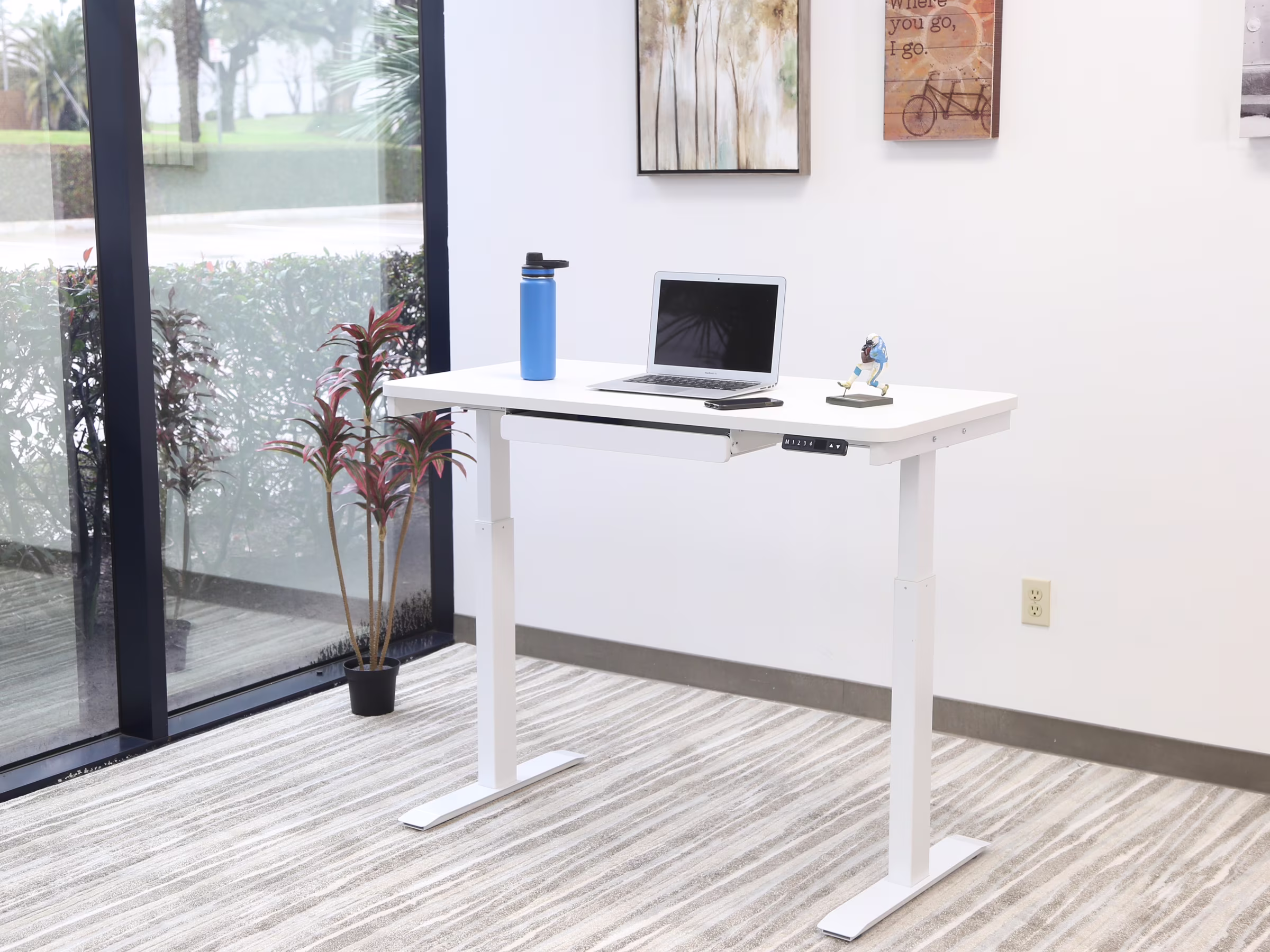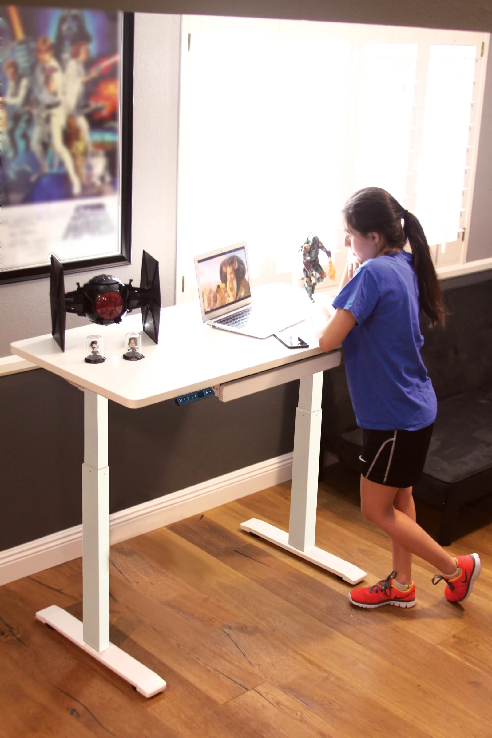The motion wise motorized desk allows for the optimal working conditions. These desks have dual synchronized motors that will automatically raise or lower the desk to just about any desired Height with the push of a button. It has never been so easy to have that desk with the perfect Height. The surface is 24 by 48 inches leaving plenty of room to spread your work out. The table can be raised from 28 inches all the way up to 46 inches.