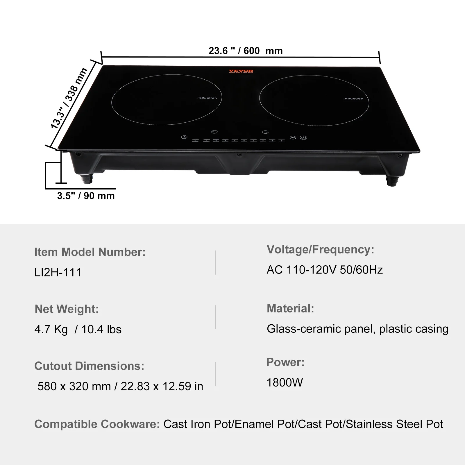 - Sensitive Touch Control: Compatible with 2 types of high-temperature cookware such as cast iron, enamel, cast aluminum, stainless steel, etc., this cooker can simultaneously cook on 2 burners for increased efficiency while minimizing heat loss.