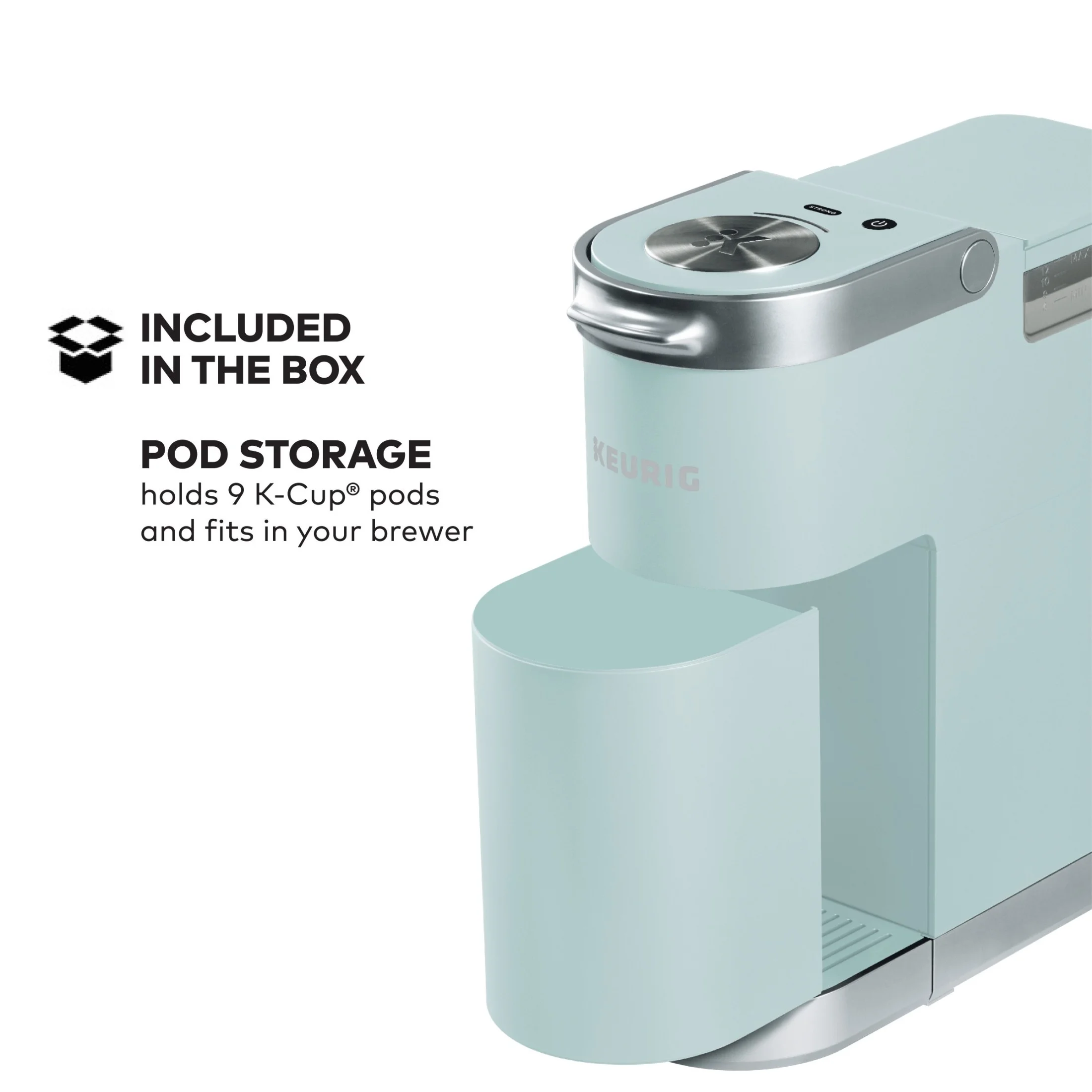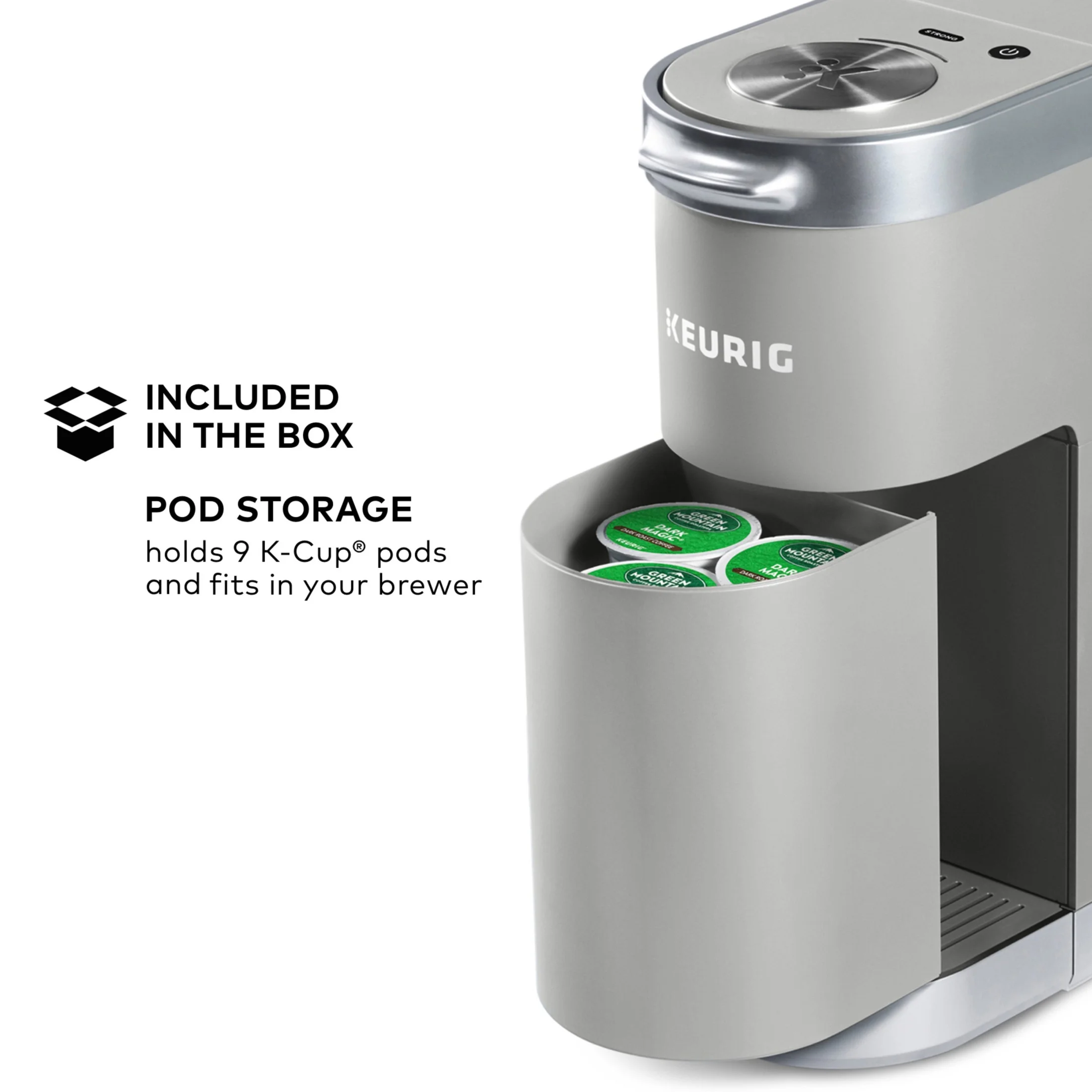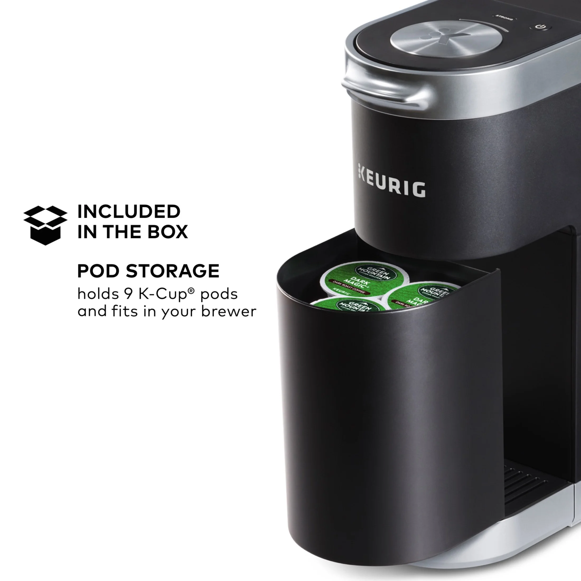 - WHAT'S IN THE BOX: Keurig K-Mini Plus single serve coffee maker, pod storage unit that fits in your brewer and can hold up to 9 K-Cup pods.