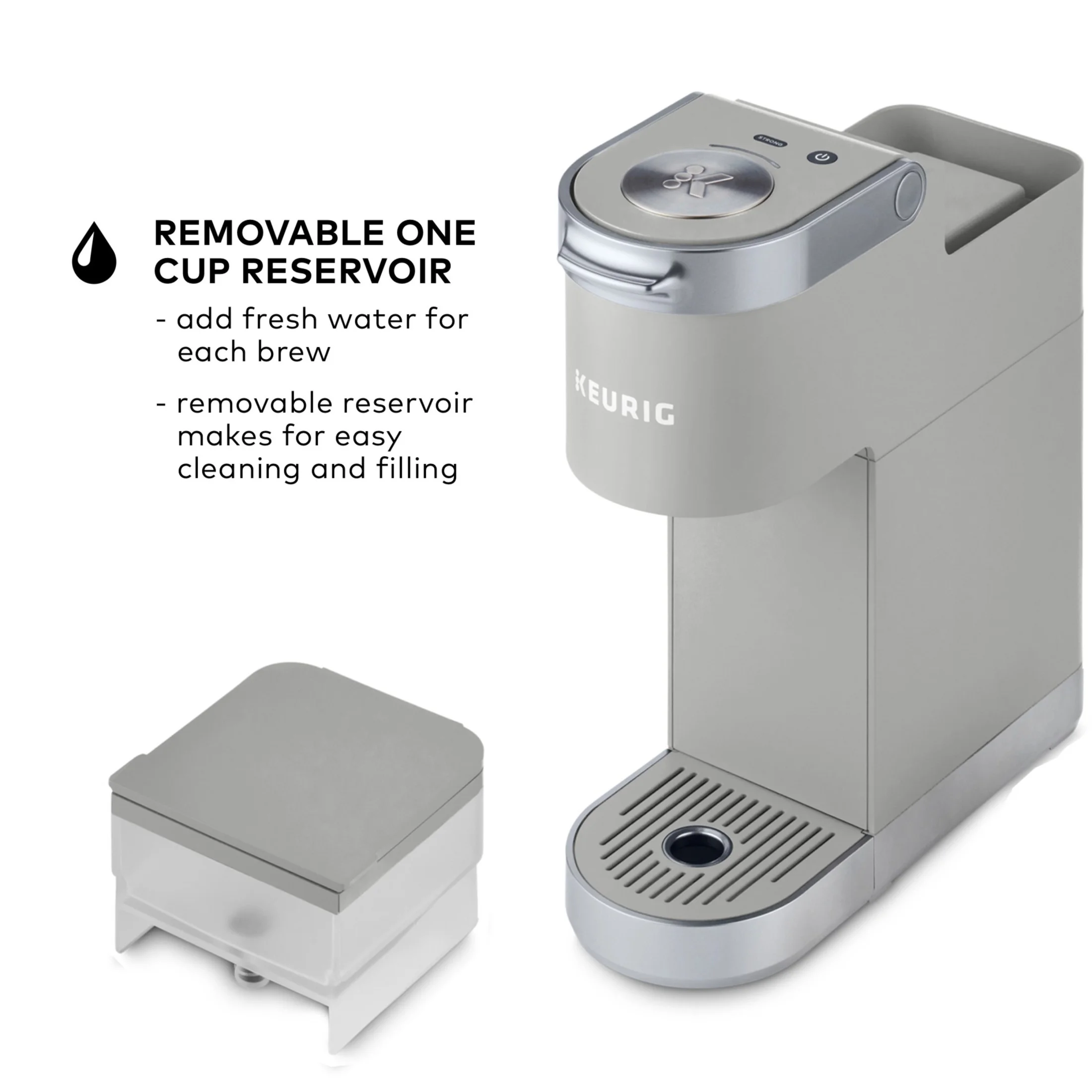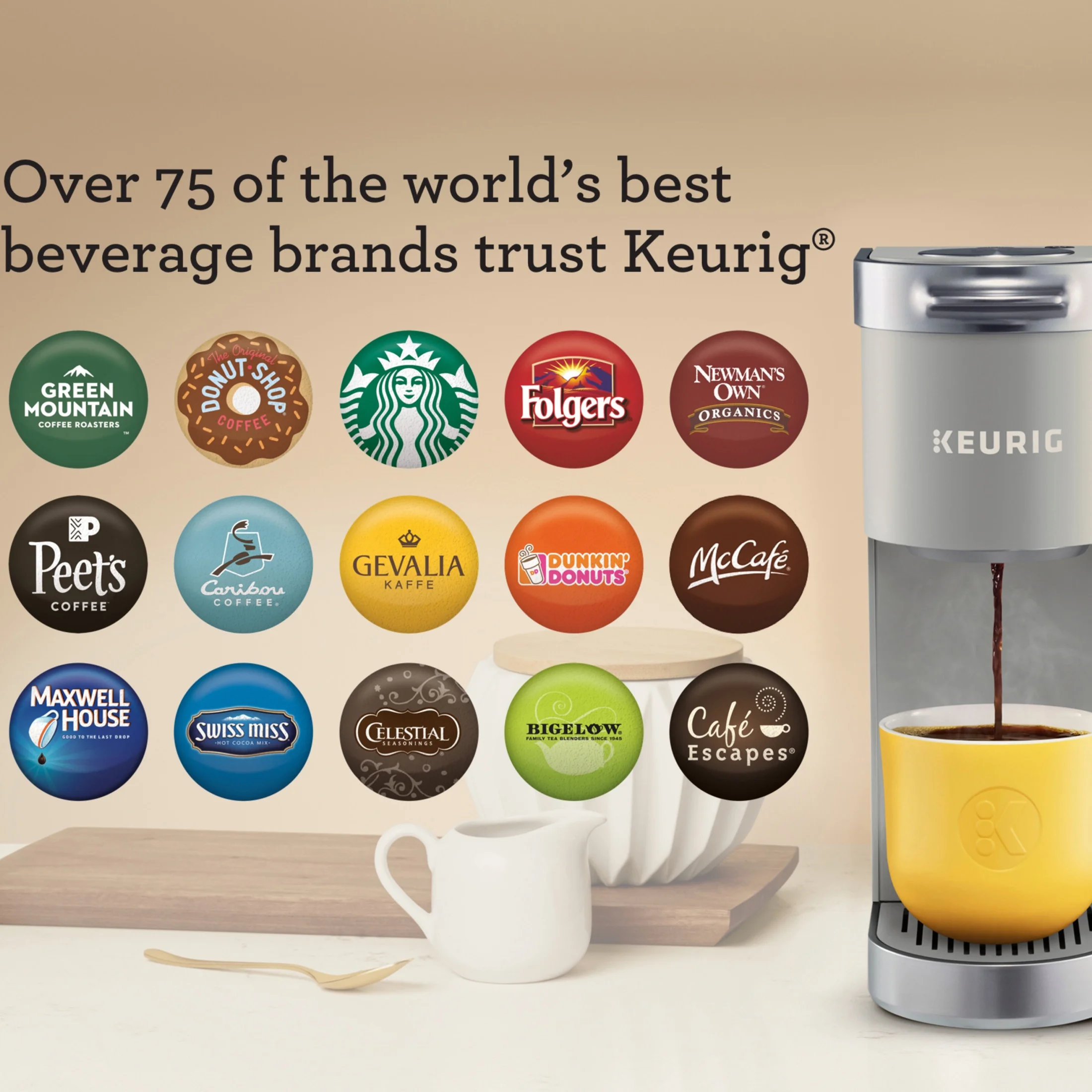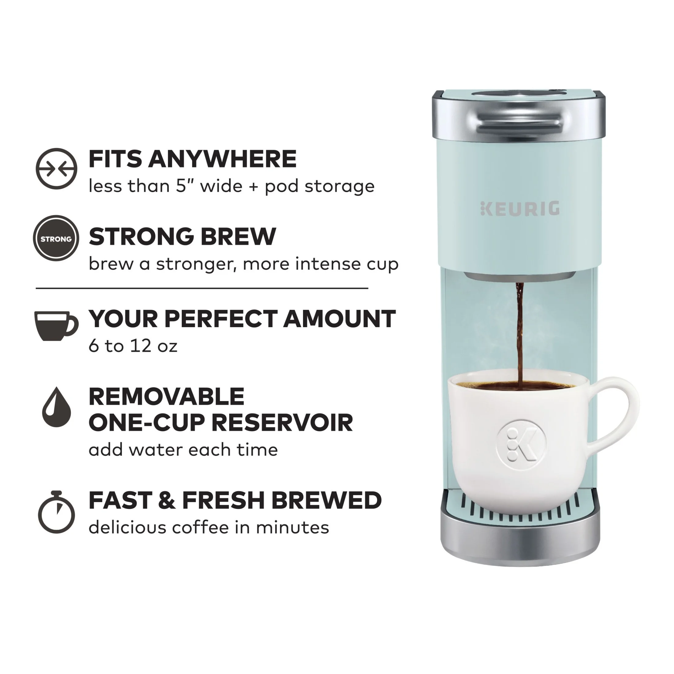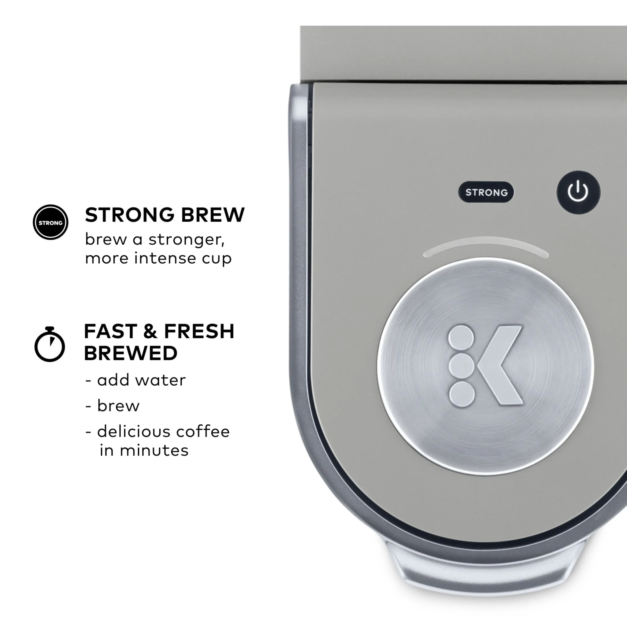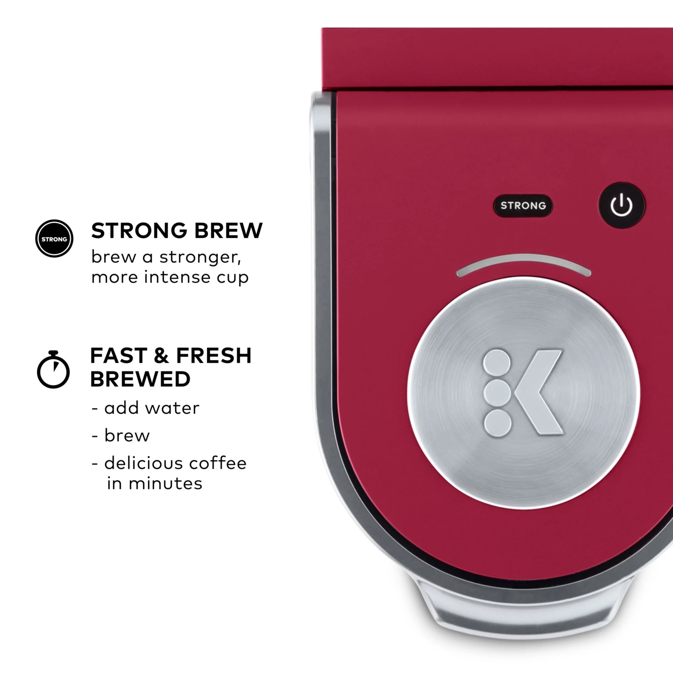 - MATTE FINISH: Sleek simplicity meets modern style, the K-Mini Plus? coffee maker is available in a variety of matte-finish colors with silver detailing on the handle and drip tray.