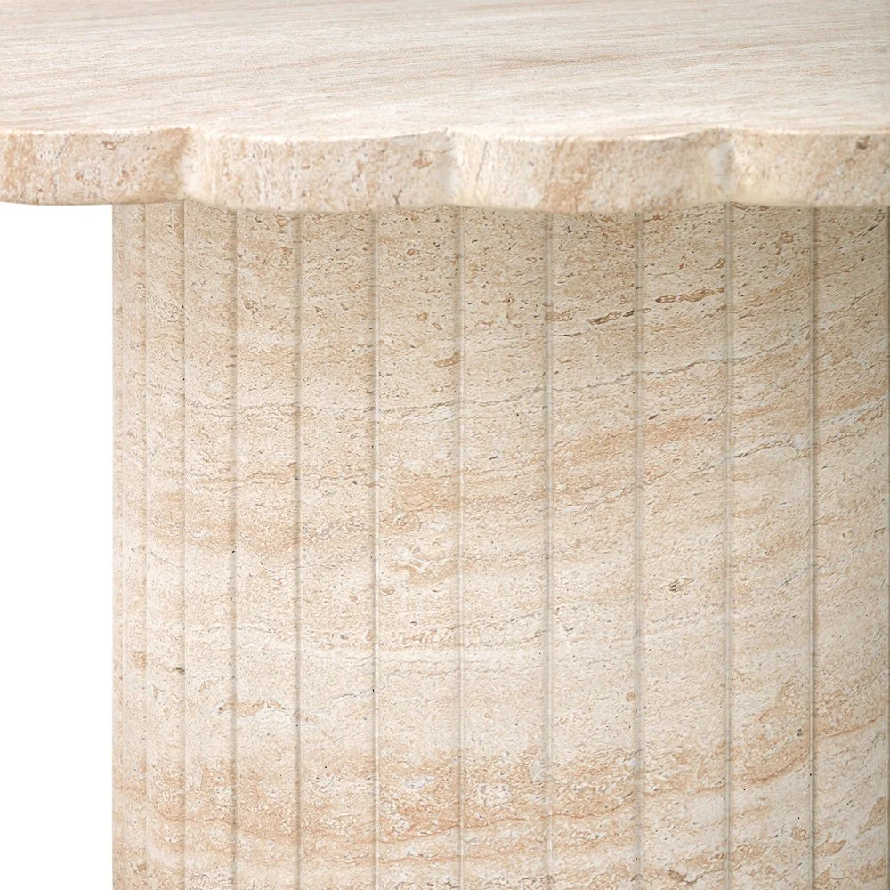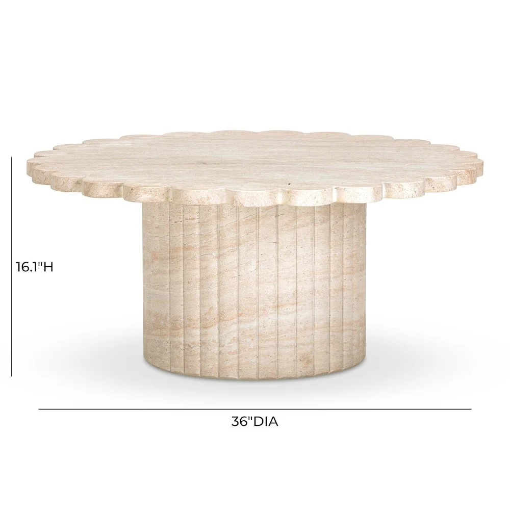 Inspired by the delicate beauty of blooming petals, the Blossom Washed Travertine Finish Indoor/Outdoor Coffee Table brings a touch of romance to any space. Its graceful flower petal silhouette, adorned with vertical channeling and a washed travertine finish, captures the charm of nature`s artistry. Crafted from durable concrete, this versatile piece is designed to flourish both indoors and outdoors, creating the perfect centerpiece for moments of connection, laughter, and quiet reflection.