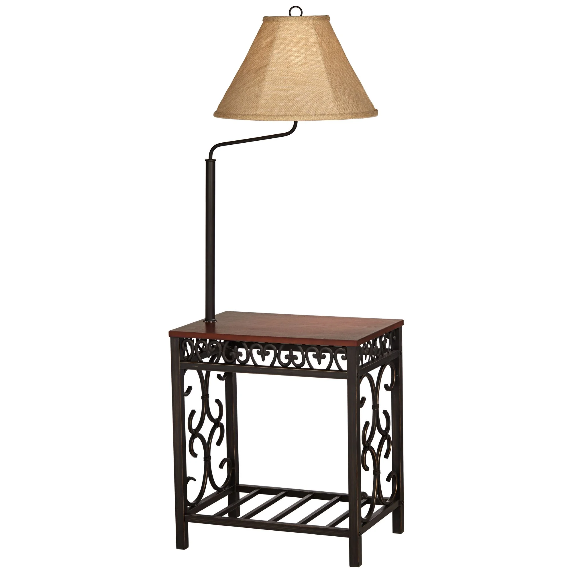 - Traditional end table with a built-in swing arm floor lamp. From the Regency Hill brand.