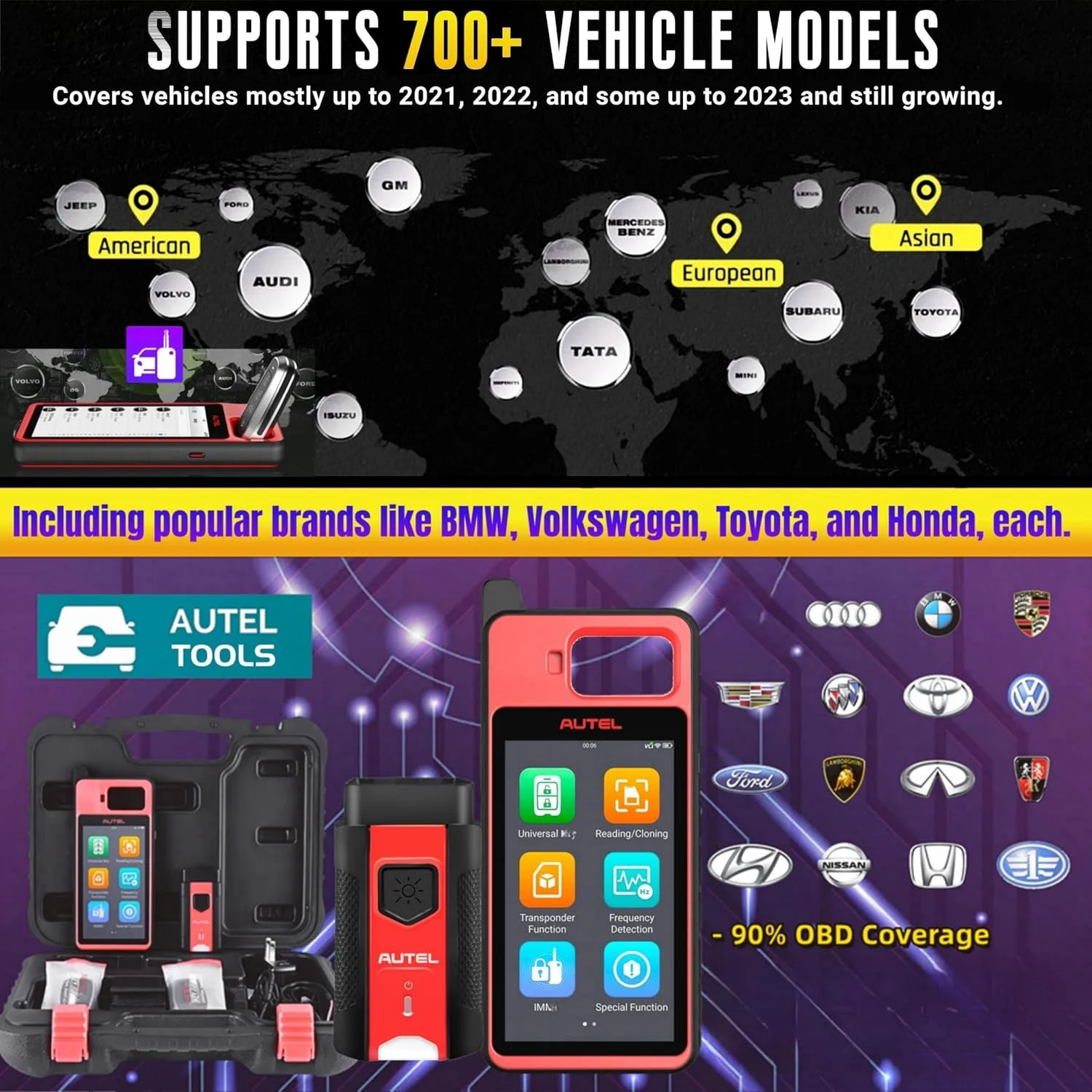 Autel Maxiim KM100 Key Fob Programmer Immobilizer Tool with 2pcs Blank IKEY 60s Key Generation OBD IMMO/Key Learning Transponder Editing Chip Read/Write/Clone Frequency Detection Lite IM508 IM608 PRO
