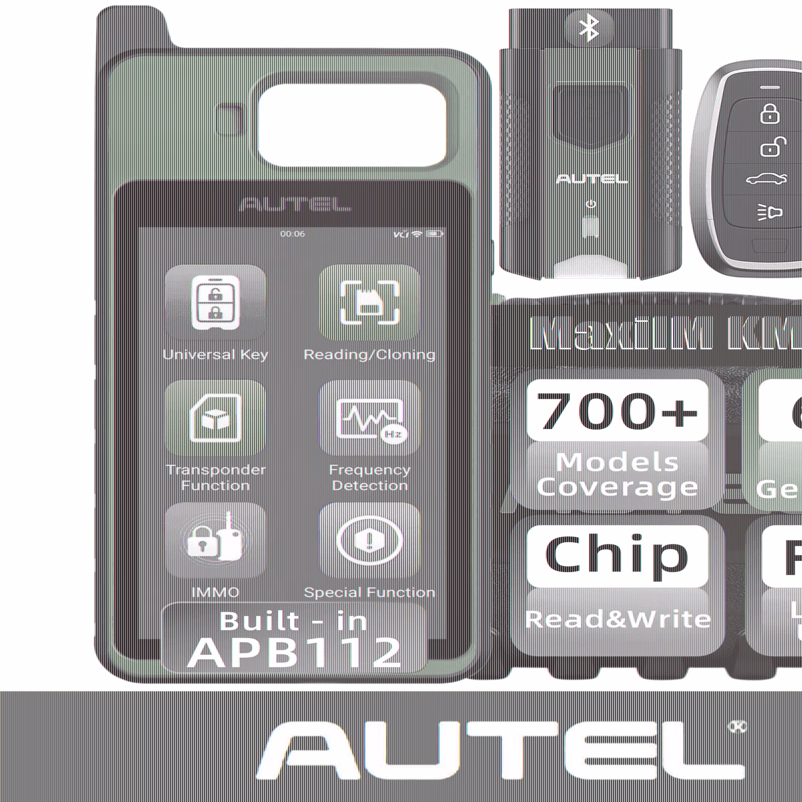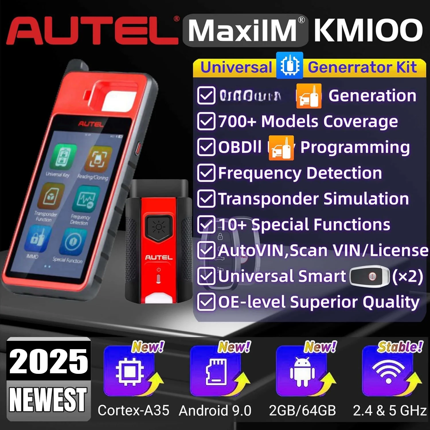 - ����The Autel Maximim KM100 Universal Key Generator Kit comes with Bluetooth VCI, powerful Android tablet, 2GB RAM/64GB onboard memory and rechargeable battery, Rockchip PX30 processor,Equipped with the MaxiVCI V200 wireless interface, 2 universal smart blank keys in package, you can get the one-stop solution from key generation to key learning. It is undoubtedly the best choice for locksmiths and home mechanics.