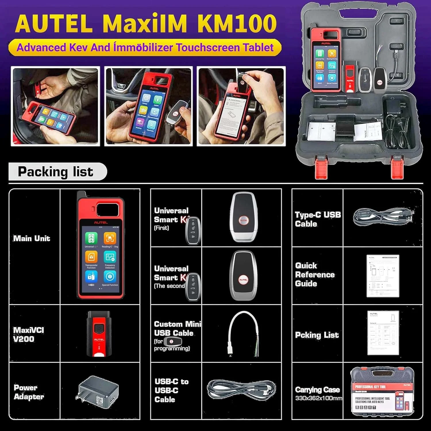 - ����MaxiIM KM100 is an advanced key and immobilizer touchscreen tablet capable of smart key creation and IMMO learning via OBD. Additional innovative features include key renewal and Transponder Editing of 20 supported protocols.AutoVin vehicle identification to ensure accuracy Simple User Interface with Concise Instructions Supporting 8 Key Series And 37 Models 60-Second Key Generation (Autel Universal Only) Chip Read & Write, Cloning and Frequency Detection
