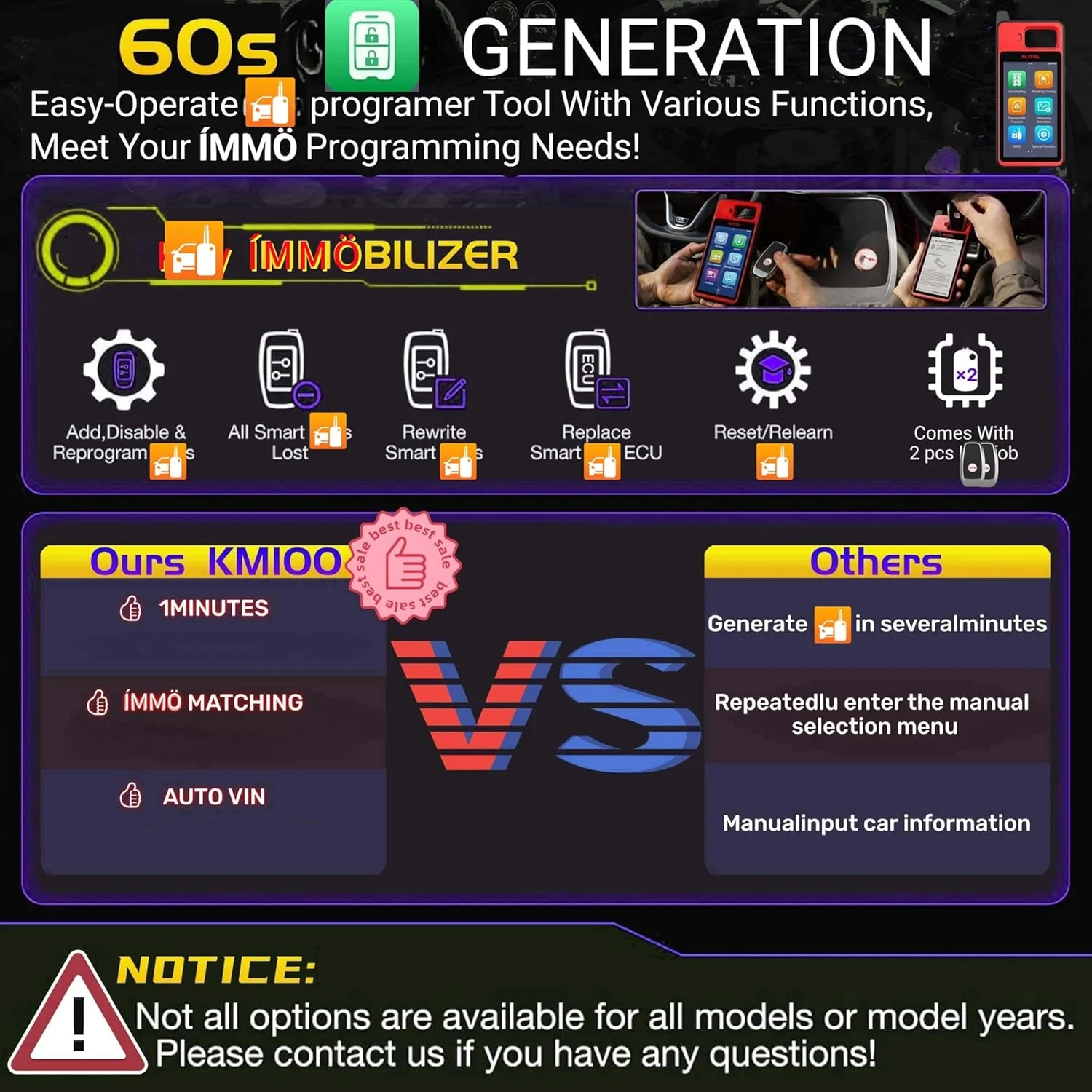 ����This 5.5-inch,KM100 Universal Key Generator Toolkit is Autel's latest smart car key programming tool in 2022, professionally used for universal transponders and key generation, new keys, transponder write/read/clone, etc Advanced key function. Autel Ke-y Programmer KM100 can program Autel��s IKE-Y as smart ke-y replacement for more than 700 vehicles within 1 minute. Technicians can perform ke-y learning directly right after generation, ke-y programming efficiency has been increased at least 50%.