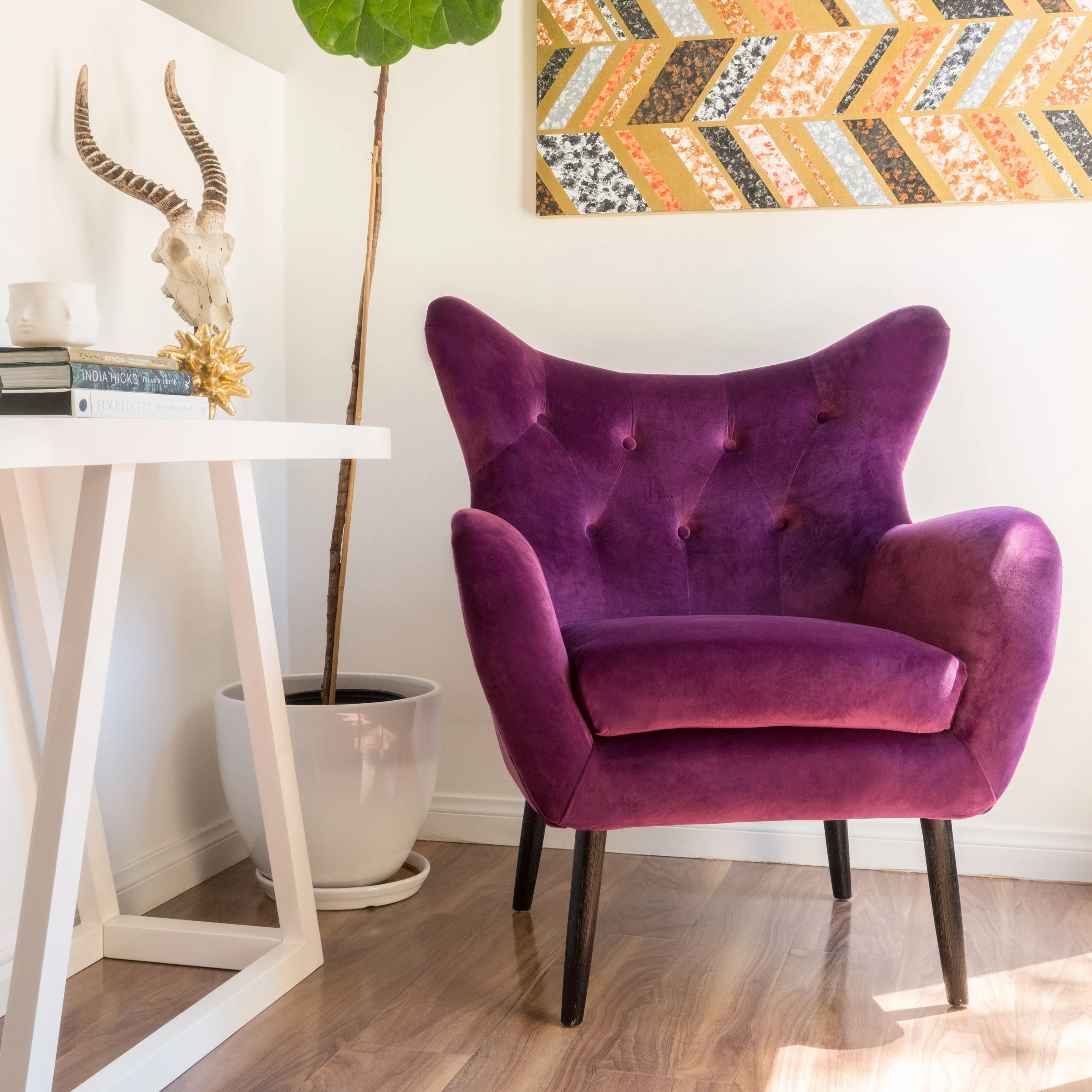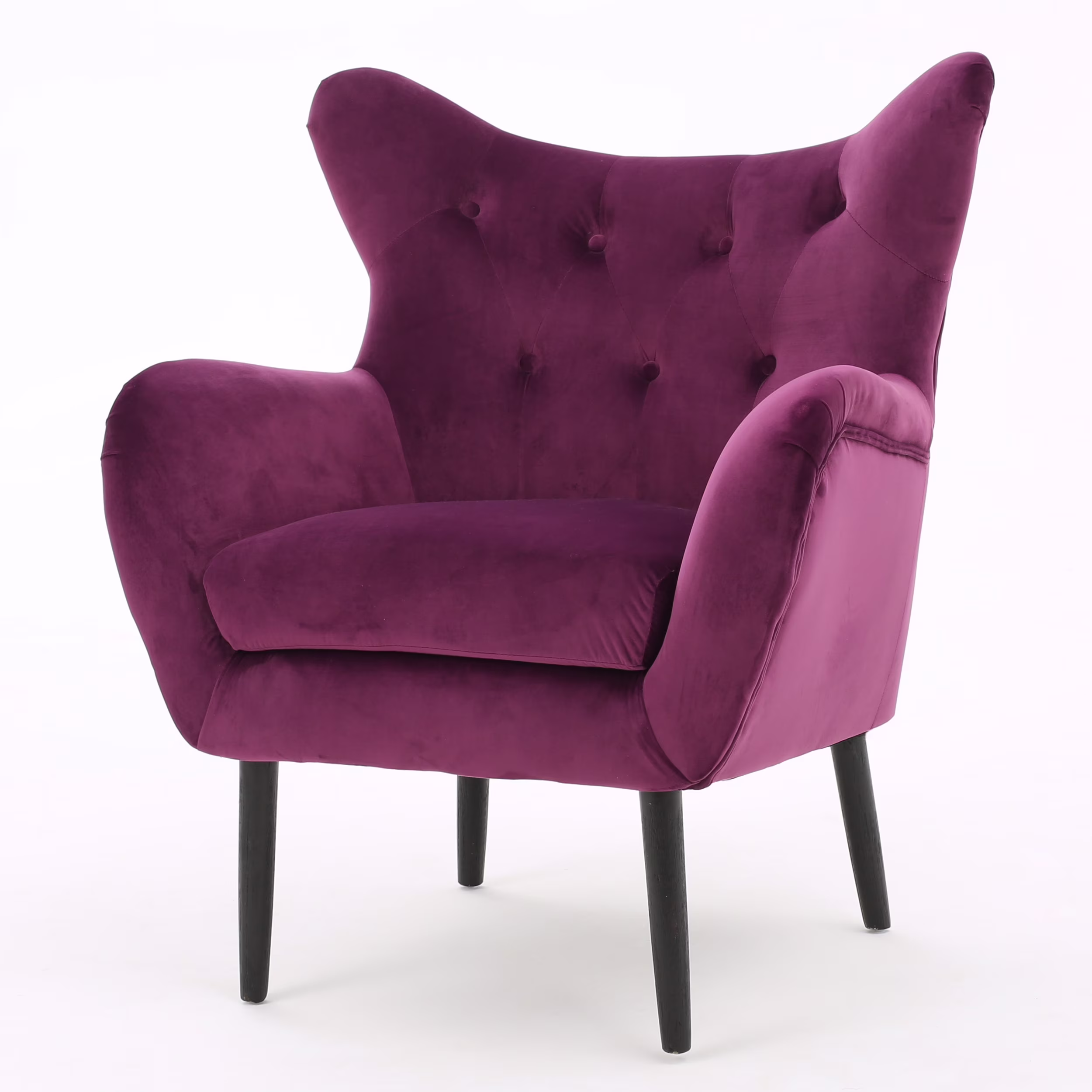 Noble House Simon Fuchsia Velvet Arm Accent Chair: