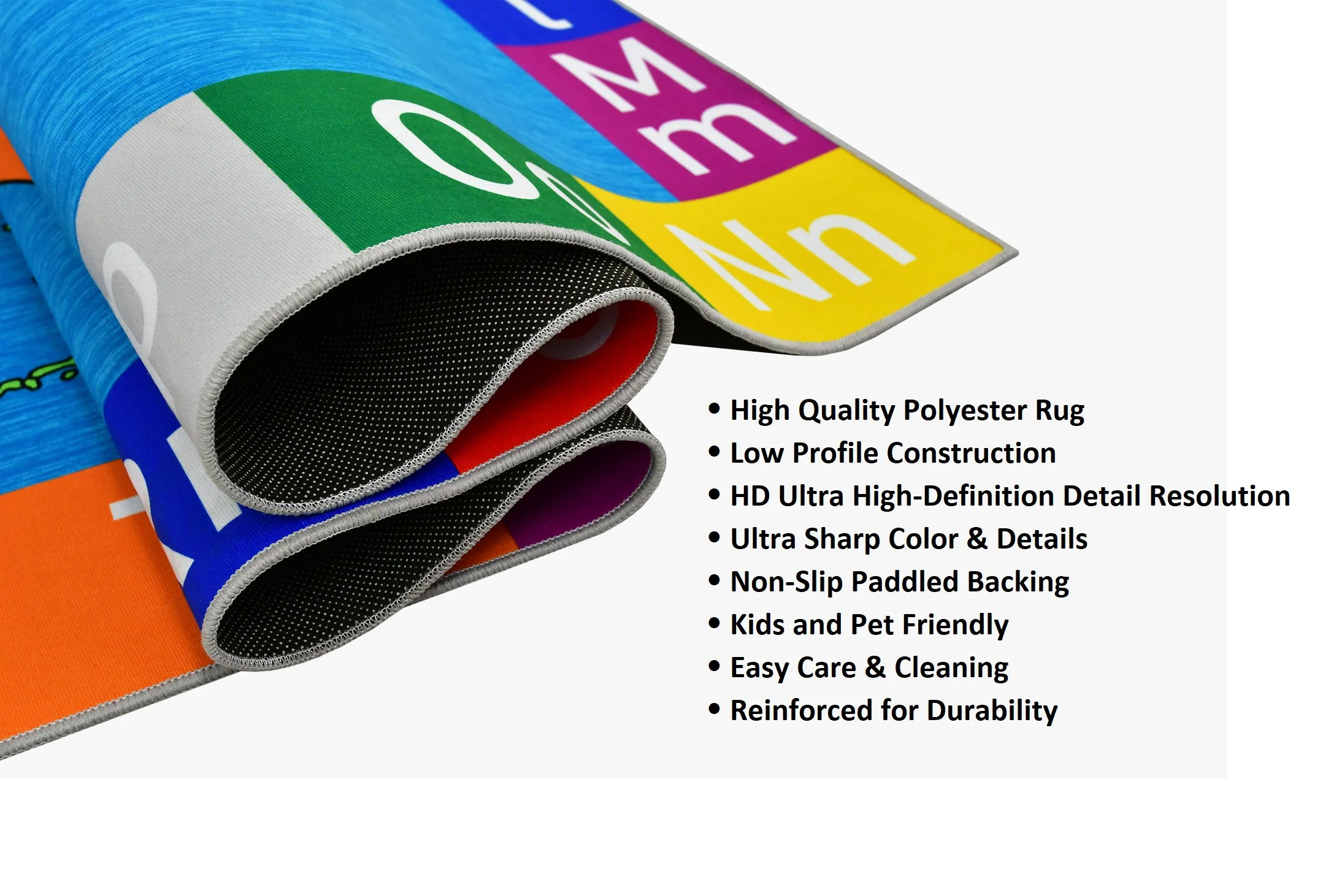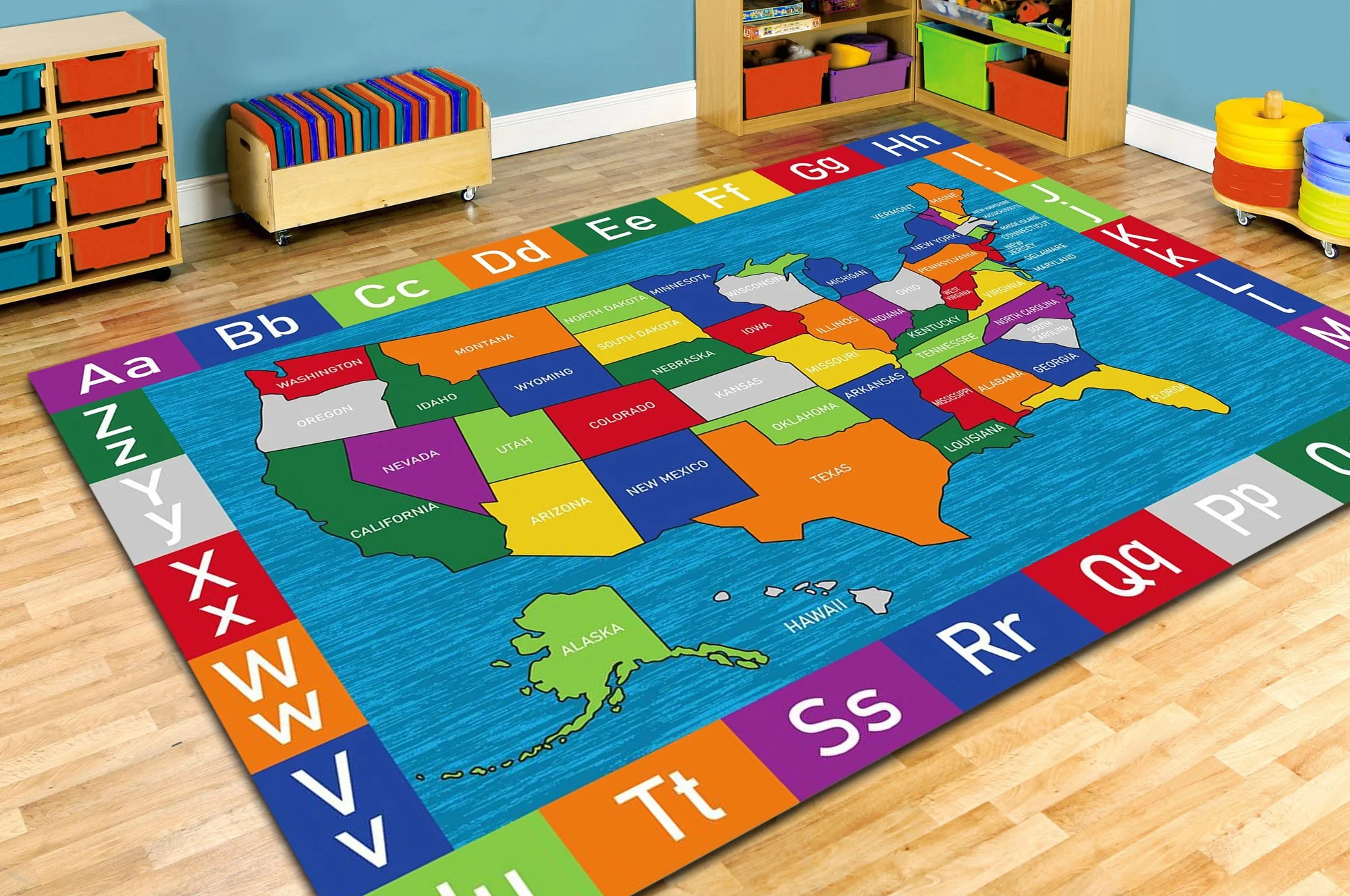 Invest in your child's early education with our Non-Slip Polyester ABC and USA Map Kids Area Rug. Let them explore the world of letters and geography in a safe and interactive way. Order now and provide them with endless hours of educational fun.