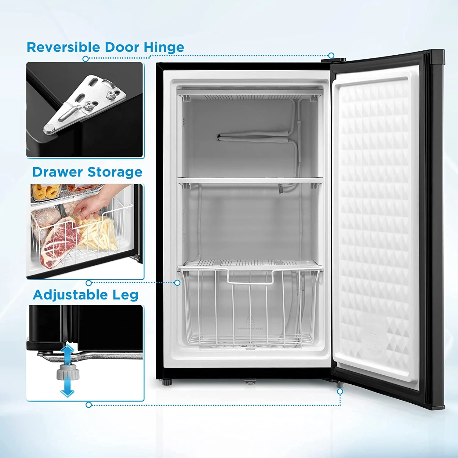 - Quiet Operation: Running at just 42dB, this freezer uses quiet technology, so you can place it in your kitchen, home, or office without worrying about loud noise.