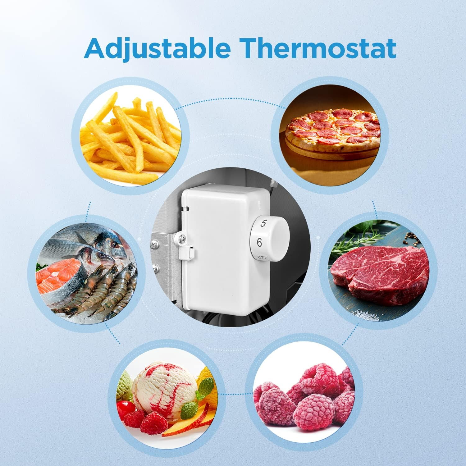 - Easy Temperature Control & Fast Cooling: The external thermostat lets you quickly adjust the temperature from 10.4��F to -11.2��F. Its dynamic cooling system cools more efficiently than other freezers.