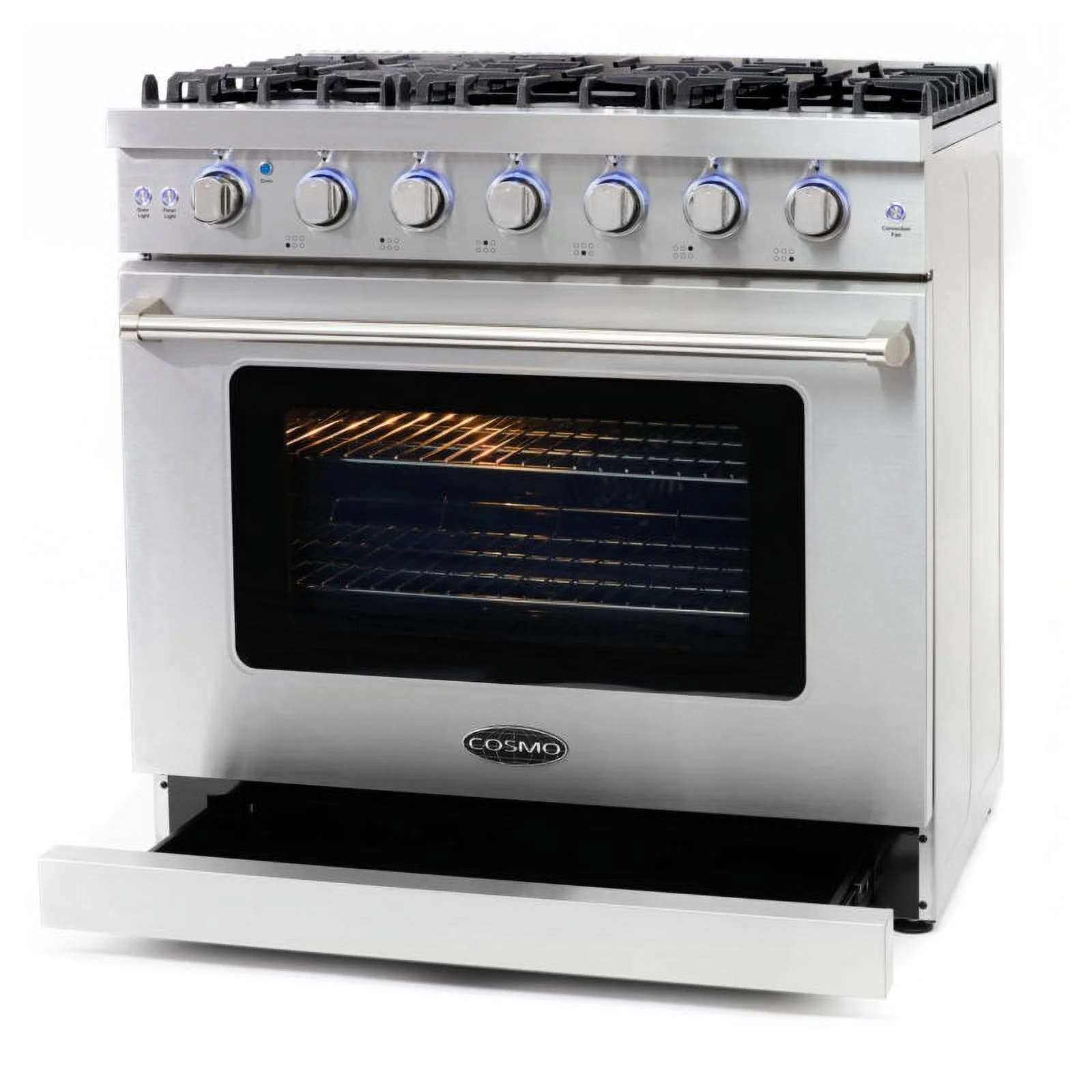 - 36-inch gas range provides versatile cooking options with integrated convection oven, 6 sealed Italian burners, and variable BTU power for cooking up dishes just the way you like