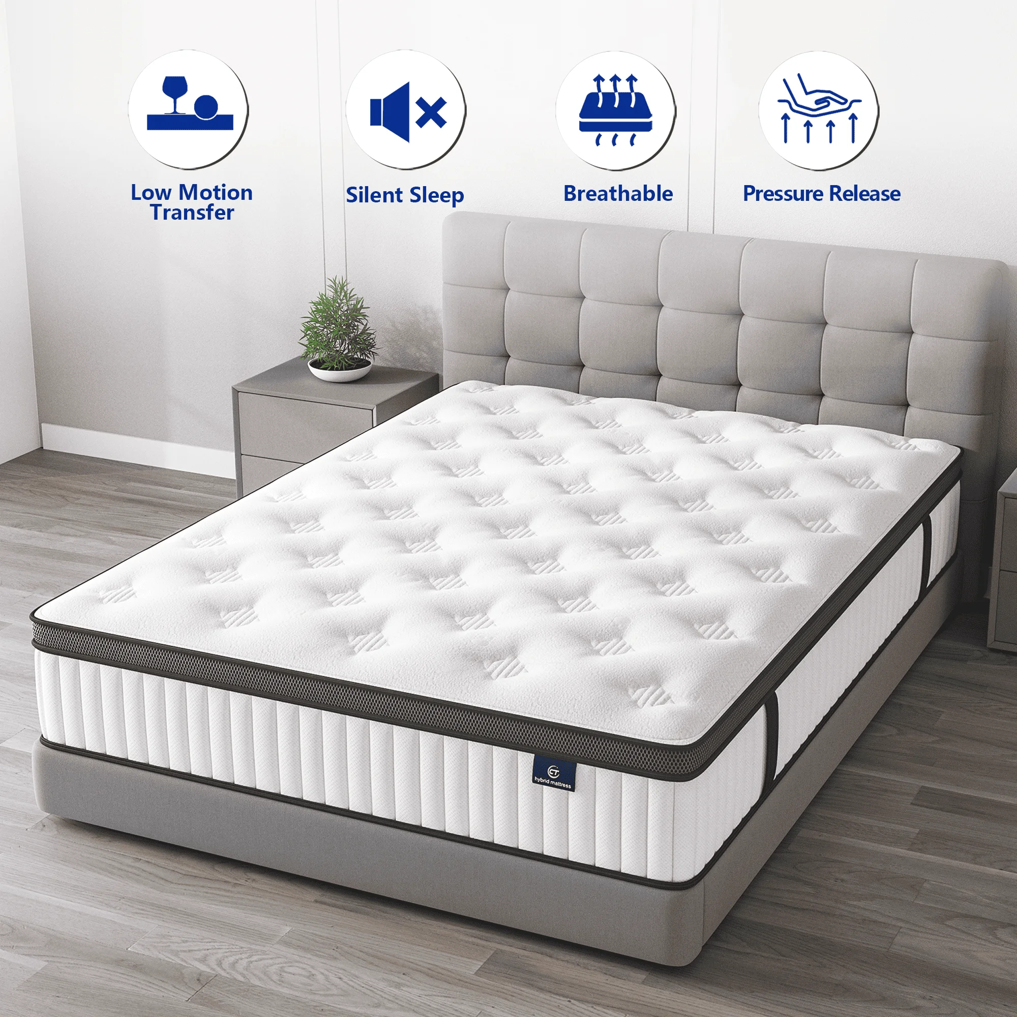 - ???��Perfect Medium-Firm Support�� Ideal for back and stomach sleepers, our hybrid mattress combines responsive memory foam with reinforced support layers for balanced comfort. The medium-firm feel alleviates pressure points while maintaining proper spinal alignment.