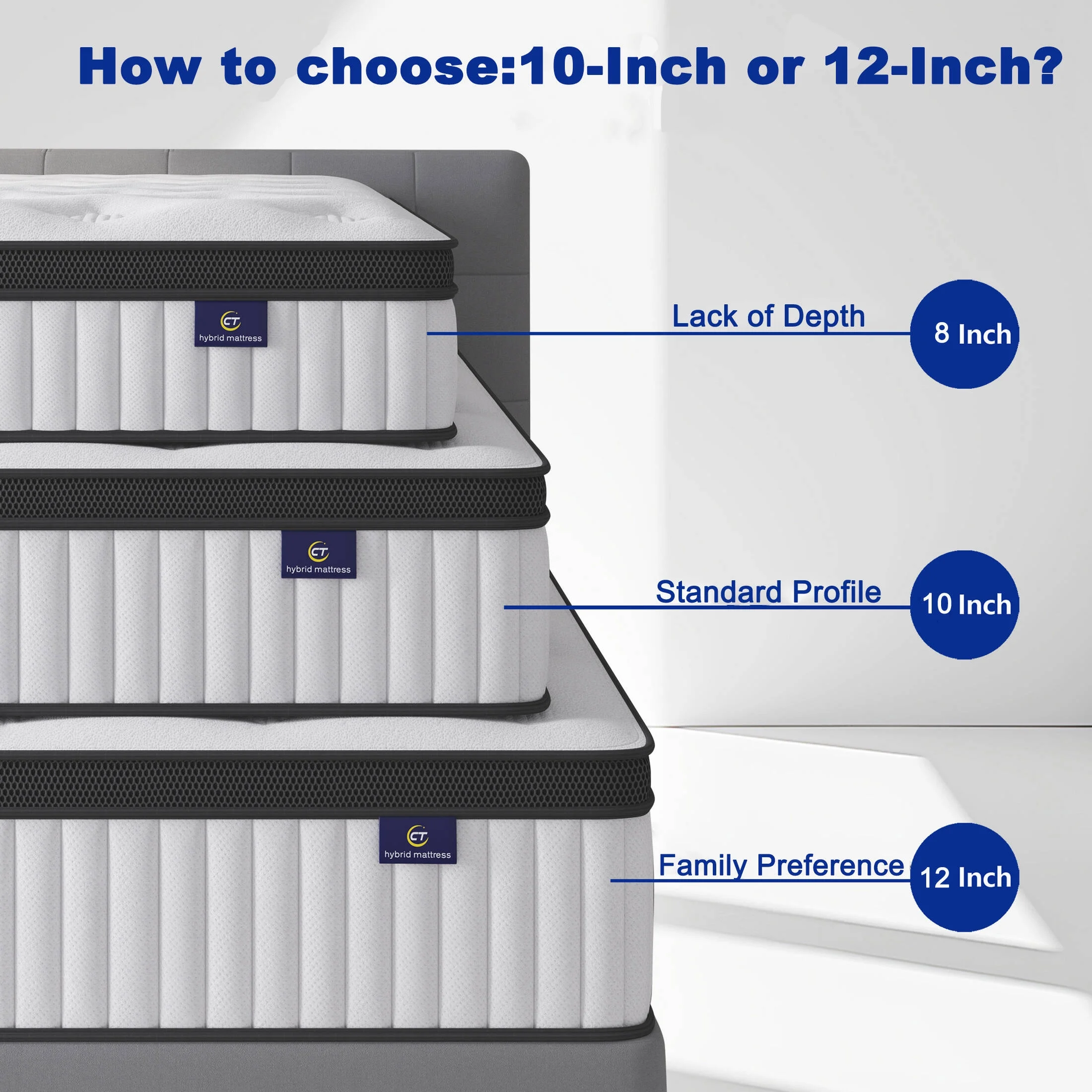 This medium-firm hybrid mattress, combining cooling memory foam and individually wrapped pocket springs for superior pressure relief and motion isolation. Enjoy custom comfort at three heights with our innovative full mattress. Breathable knitted fabric, skin-friendly and soft, helps you fall asleep quickly and sleep well all night.
