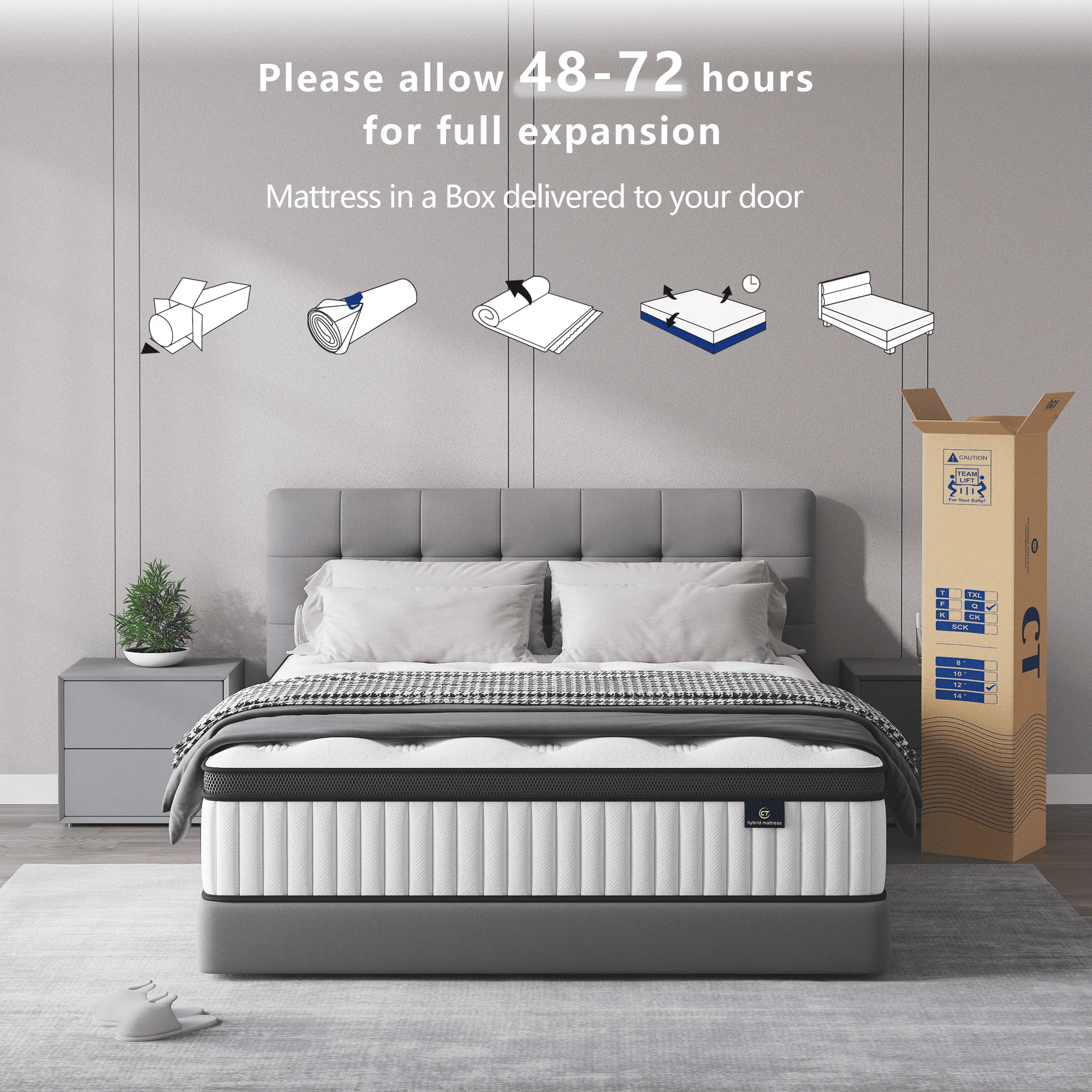 - ?? ��Convenient Mattress-in-a-Box Design�� Eco-friendly compressed packaging makes setup effortless. Simply unbox, unroll, and let the full size mattress expand to full size within 48 hours��no heavy lifting or complicated assembly