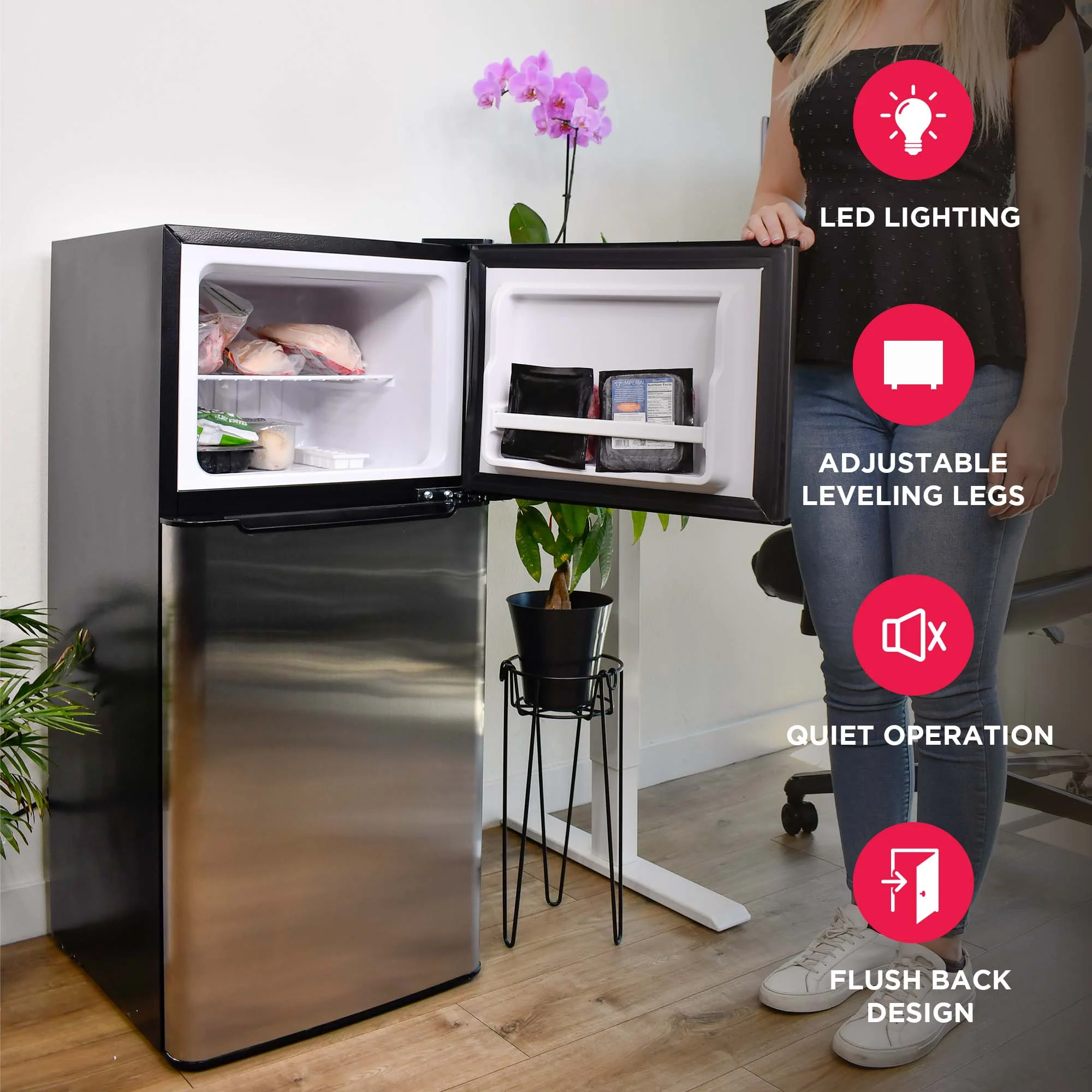 - Separate top mount freezer with additional storage inside the door