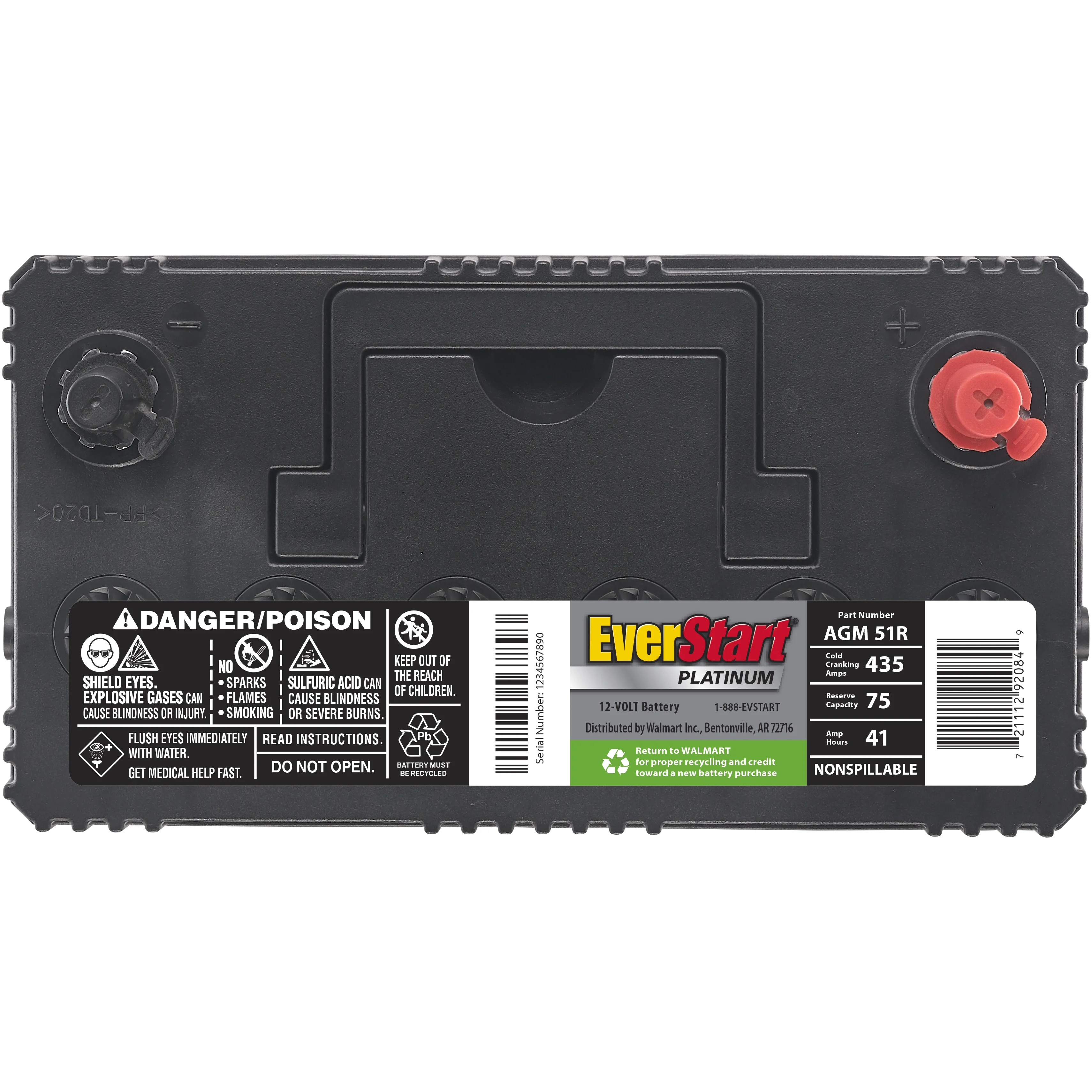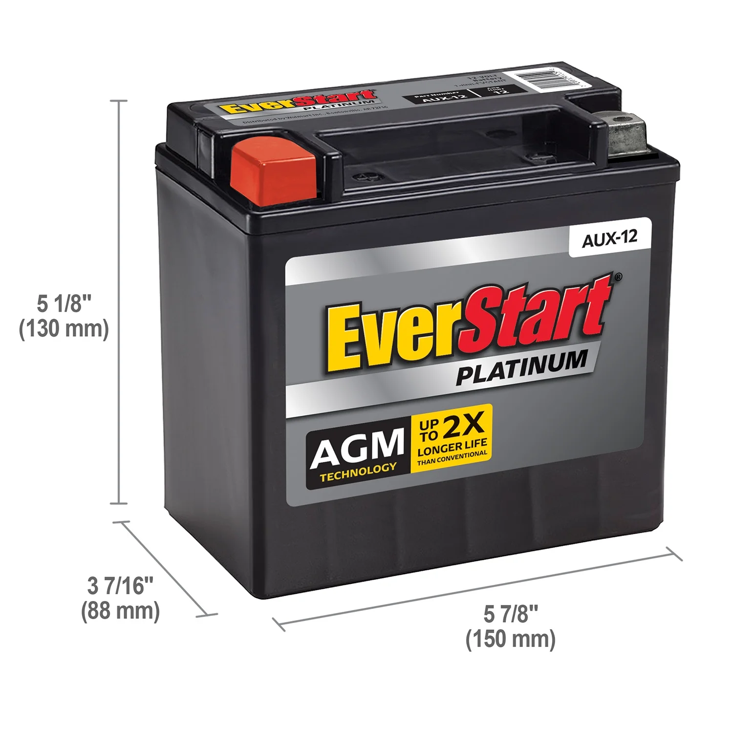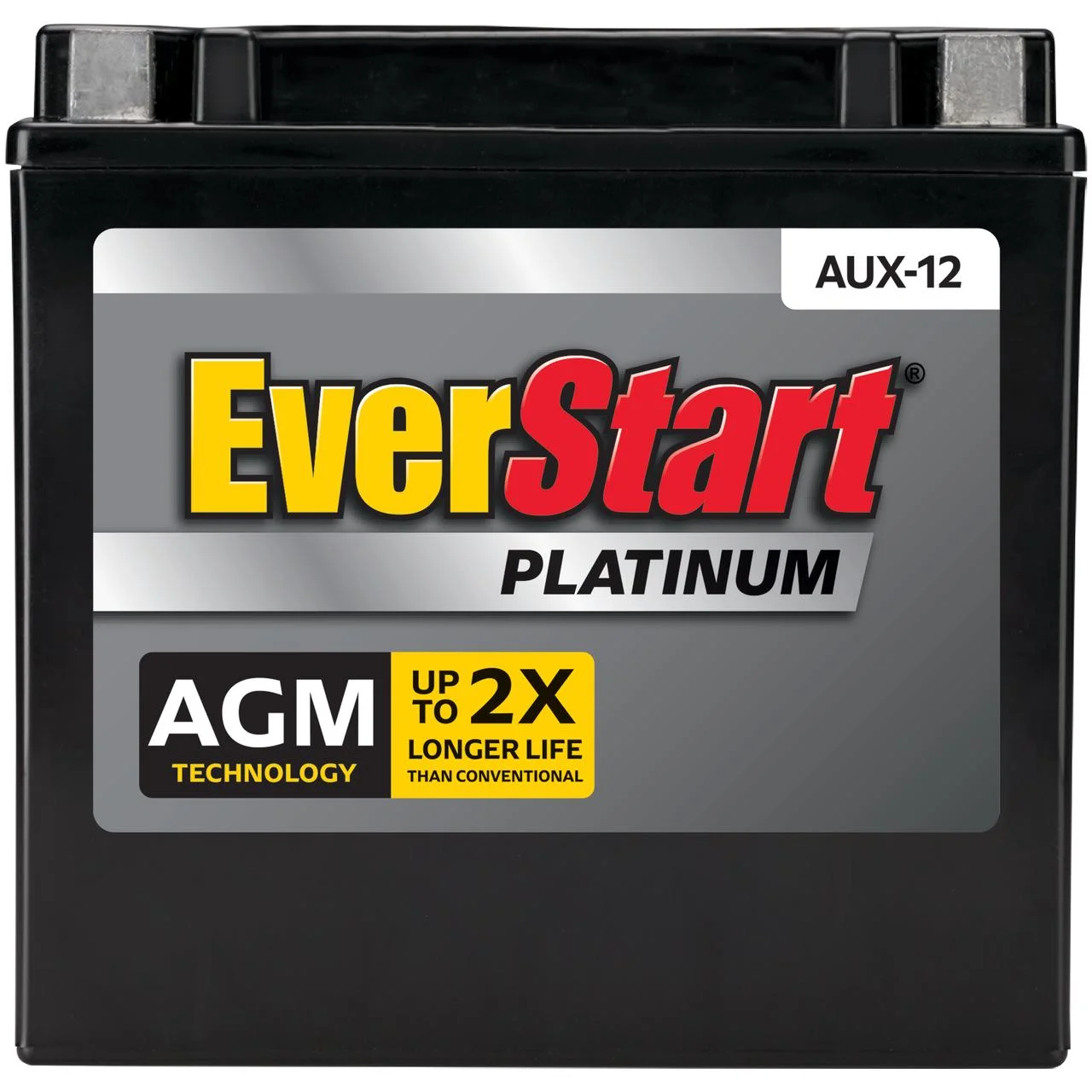 Stay on the go with this The EverStart Platinum AGM battery, Group Size AUX 12 (BOXED). It is the best choice for your power-hungry vehicle and comes with a four year warranty. Electronic features such as DVD players, GPS systems, heated seats, audio systems and start-stop technology all add to the demand on a battery. Every additional electronic component creates a power draw, which leads to more discharge and recharge cycles, which shorten the lifespan of ordinary batteries. This 12 volt EverStart Platinum AGM battery delivers 180 cold cranking amps. They are precision engineered to offer the ultimate combination of reliability, durability, and safety, even under the most demanding applications.