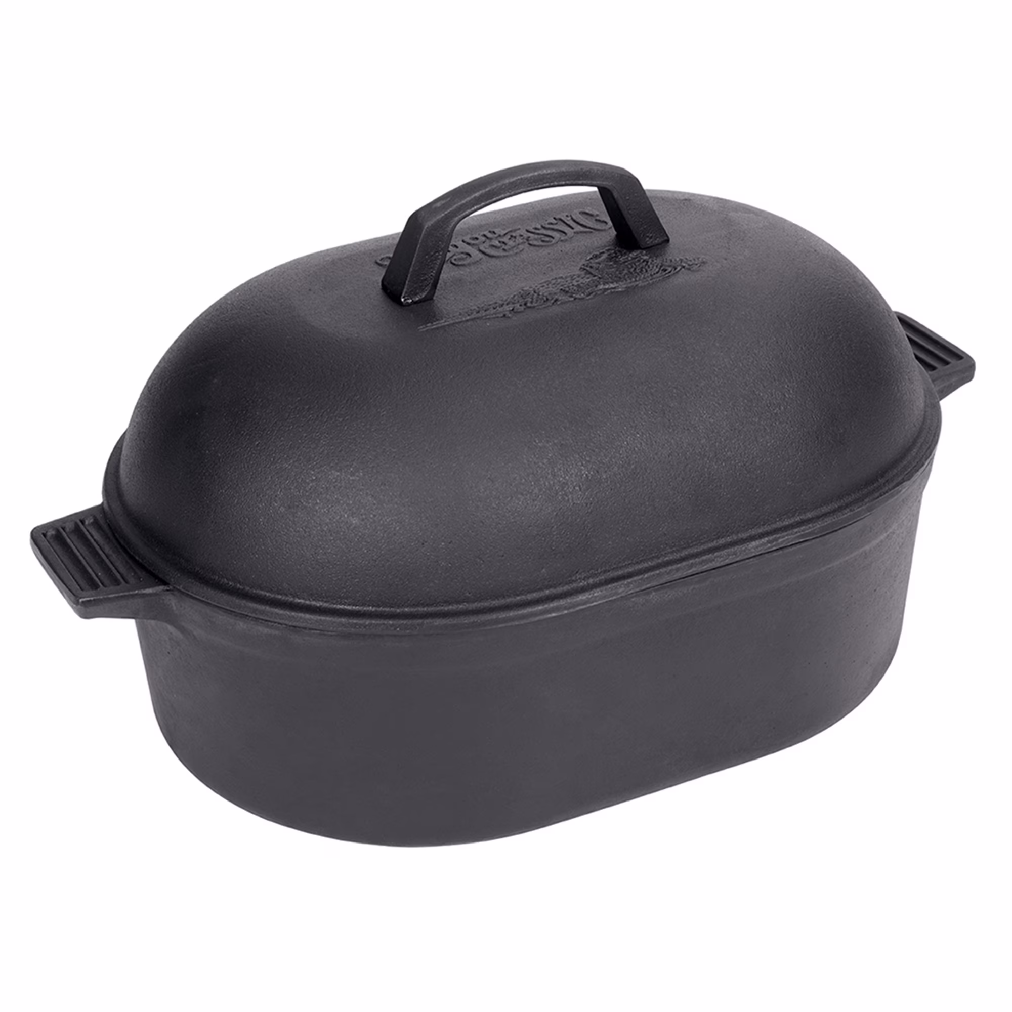- The Bayou Classic 12-Quart Cast Iron Oval Roaster is great for roast or poultry cooking