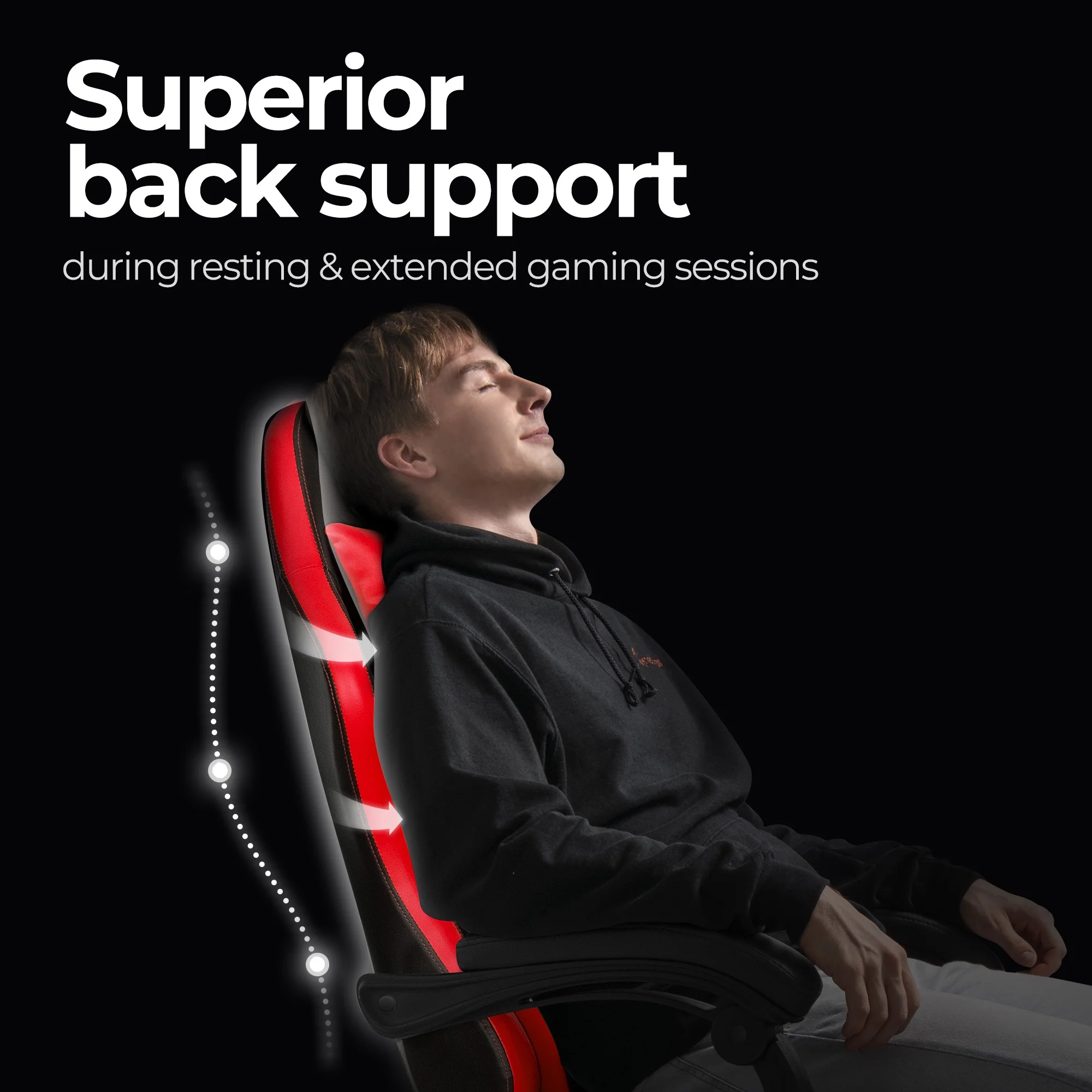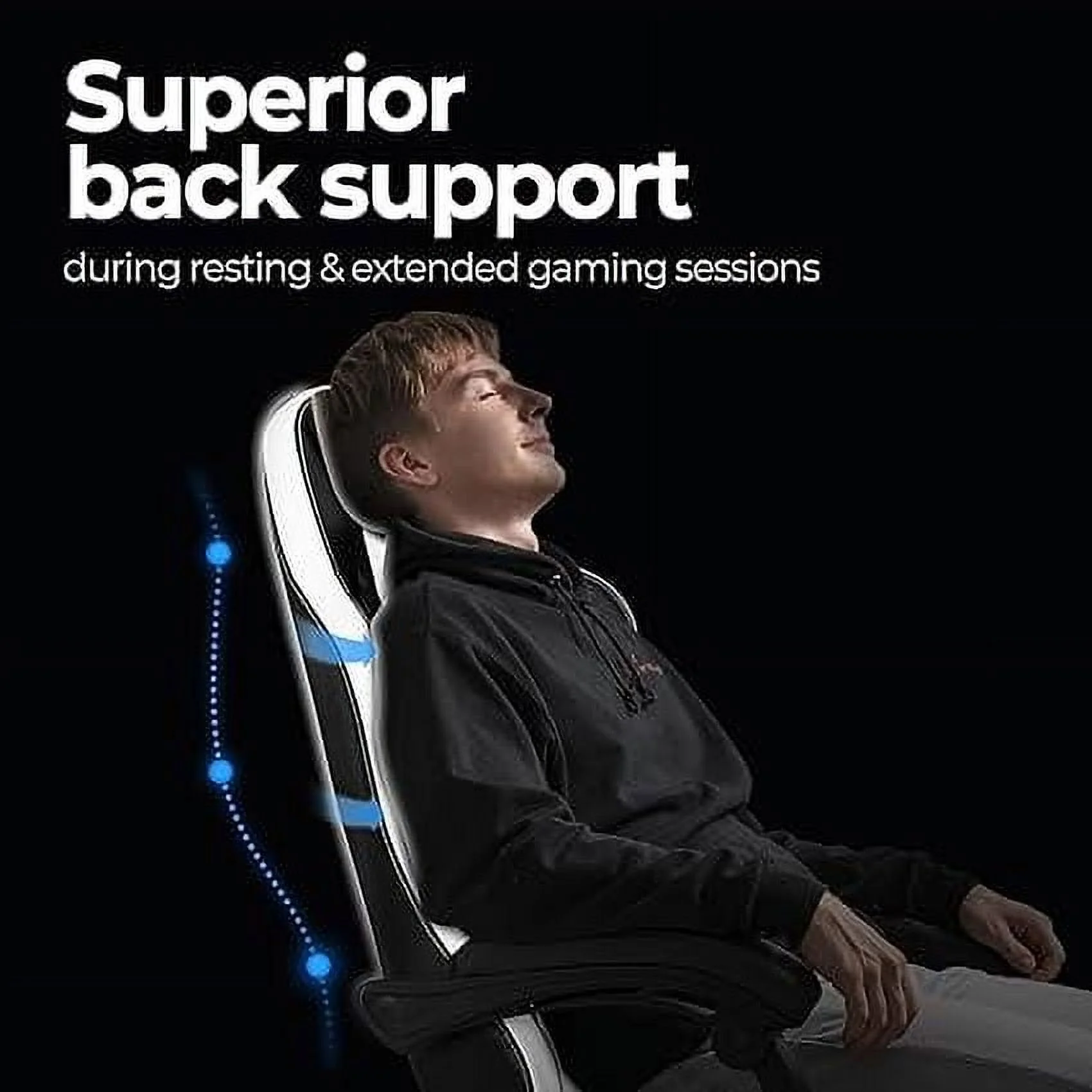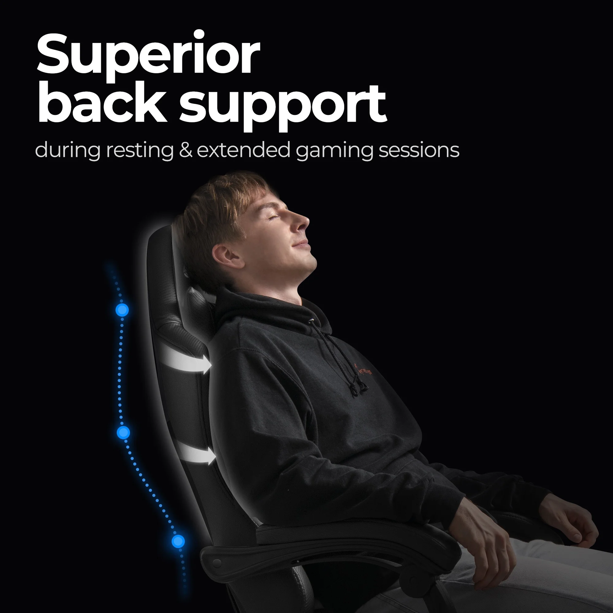 - Ergonomic design with supportive back and footrest to alleviate neck and back pain during long gaming or working sessions