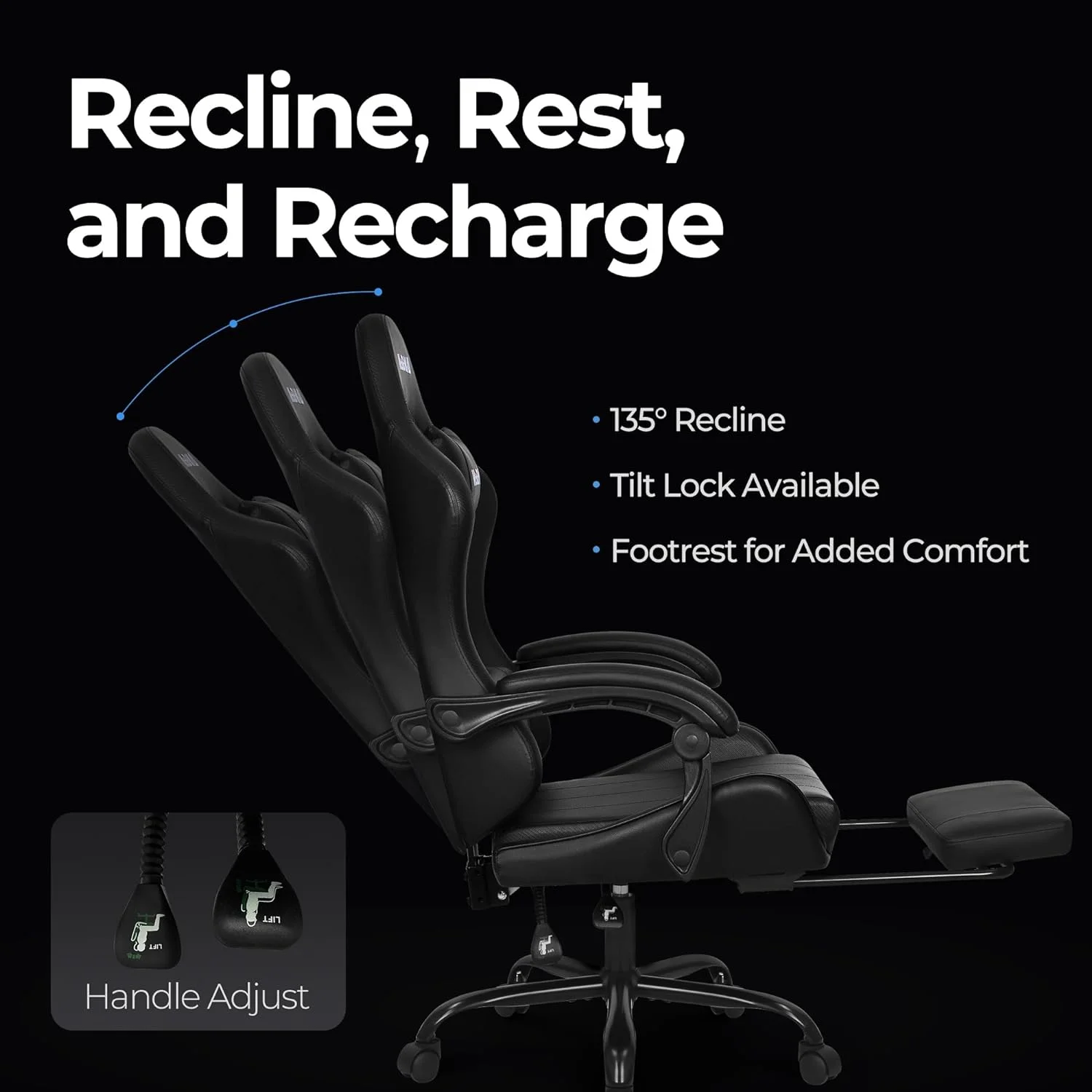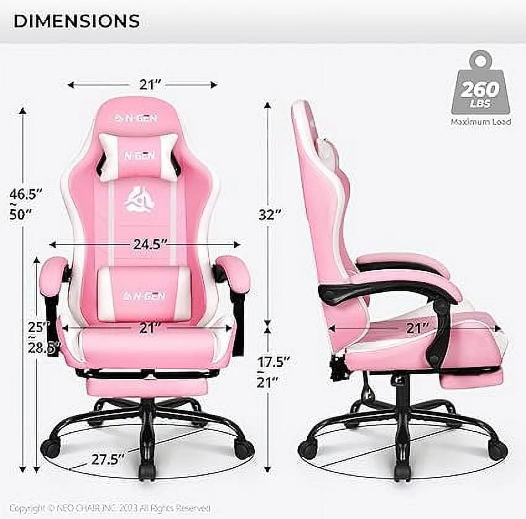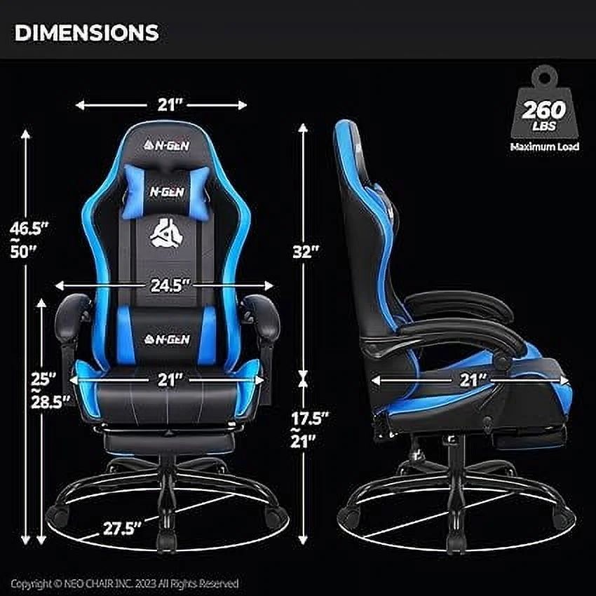 - Ergonomic design with supportive back and footrest to alleviate neck and back pain during long gaming or working sessions