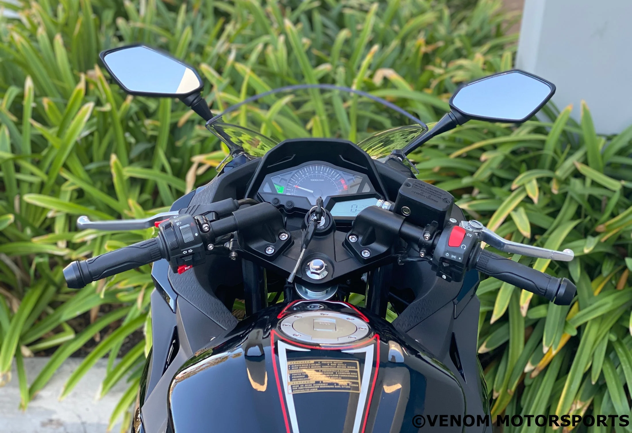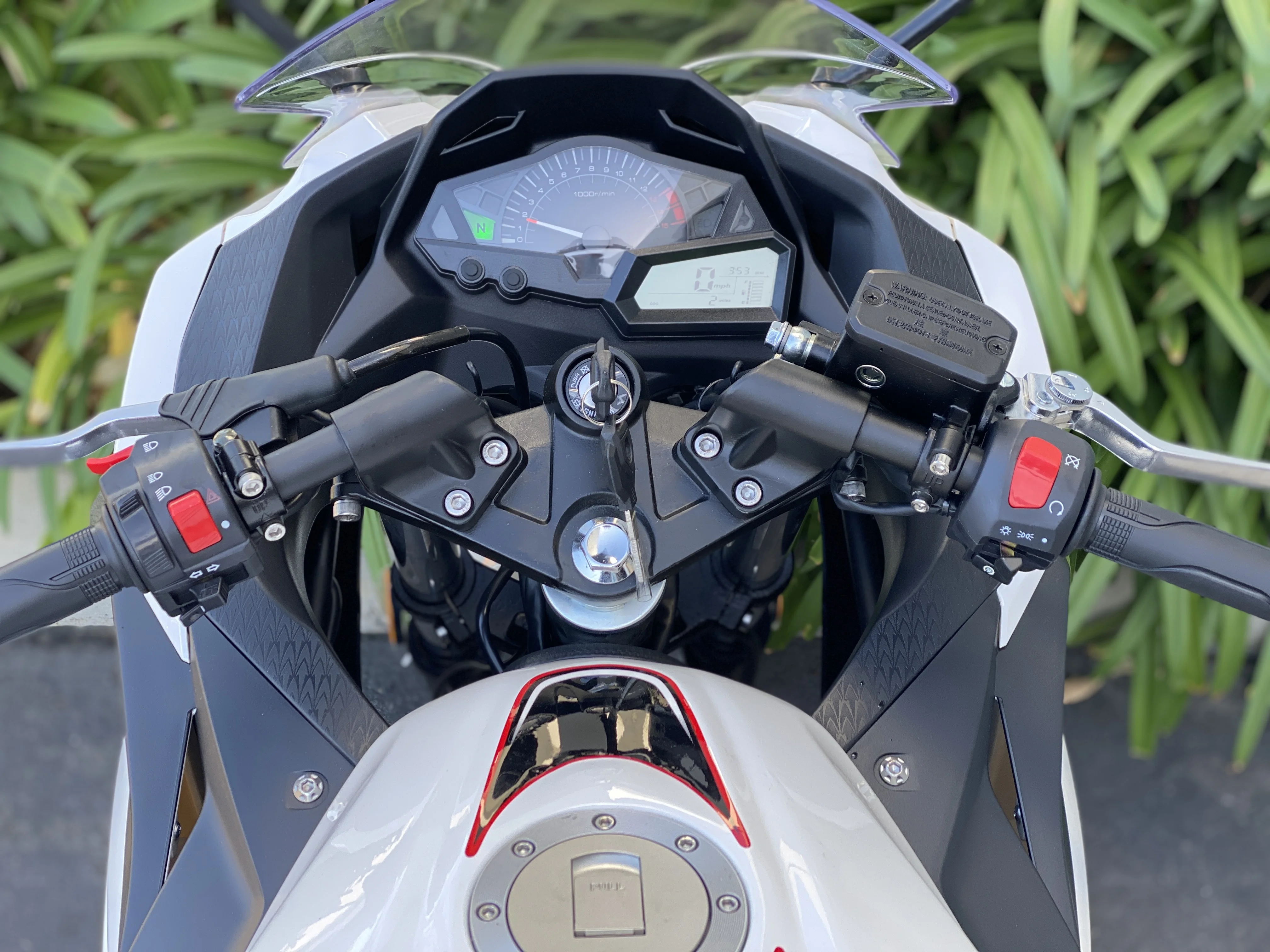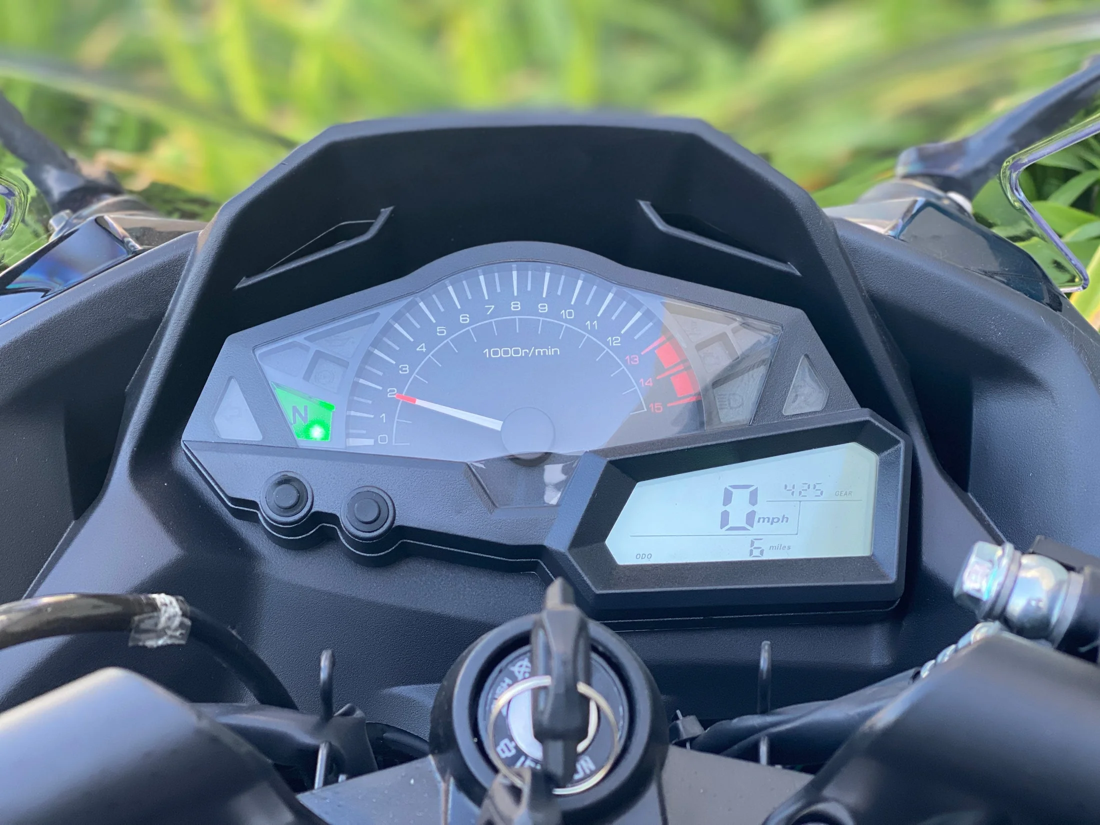 - Digital speedometer, tachometer, and gear indicator display