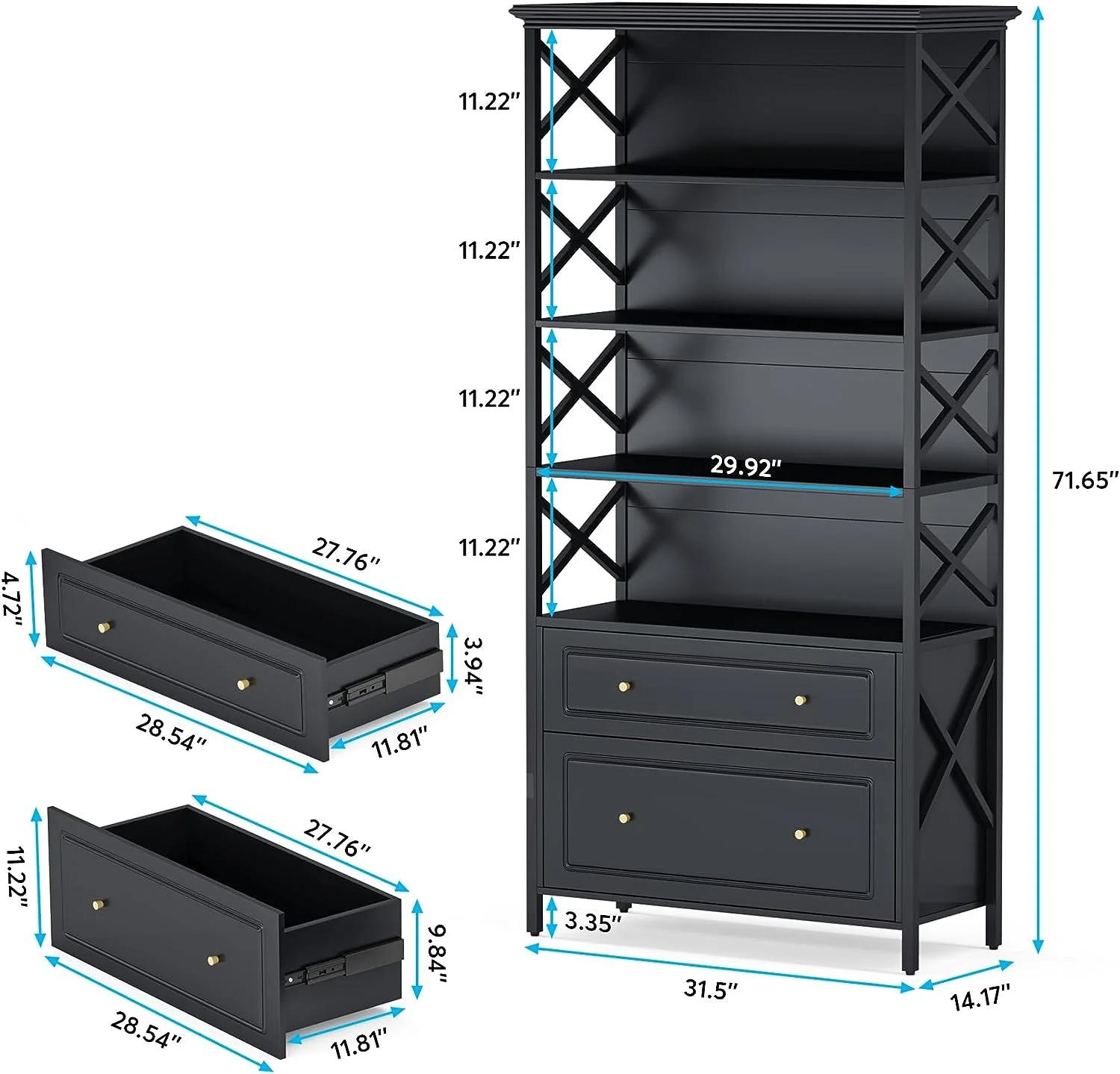 - Modern Black Bookcase: Overall dimensions are 315"W x 1417"D x 7165"H The eyecatching design features an X cross bar for enhanced stability and elegance, suitable for use as a bookshelf, room divider, display shelf, or flower stand