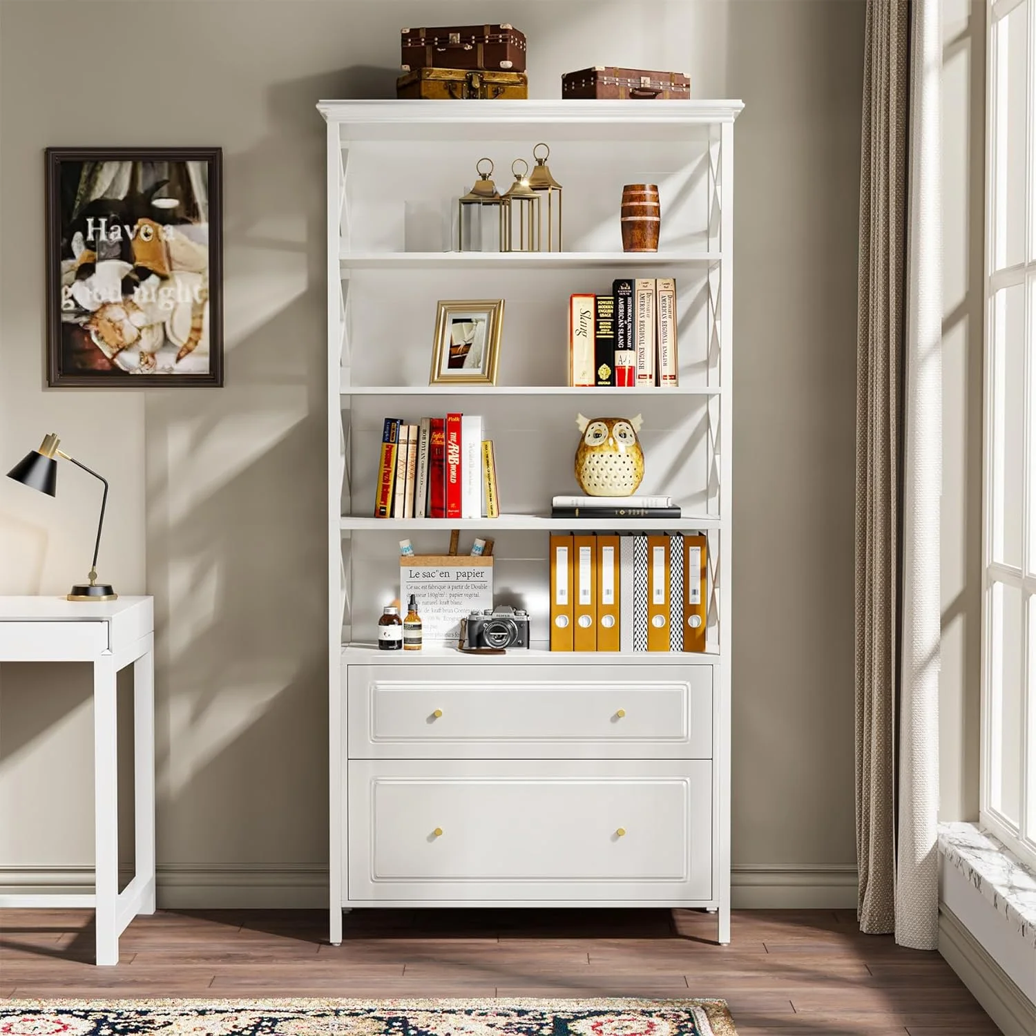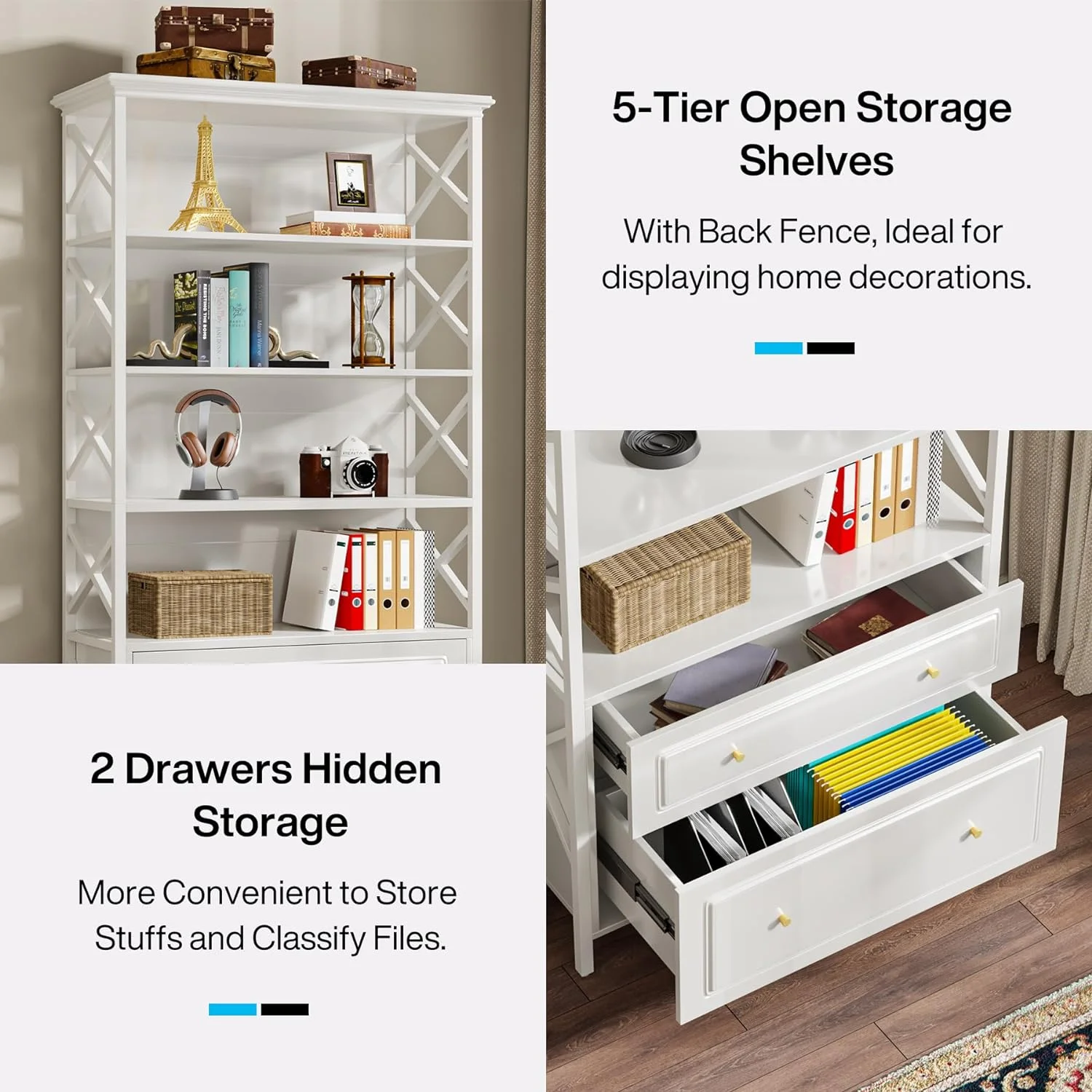 - 5 Tier Open Bookshelf: Features a 5tier open shelf design, providing ample storage space for books, photographs, decorative pieces, and essentials