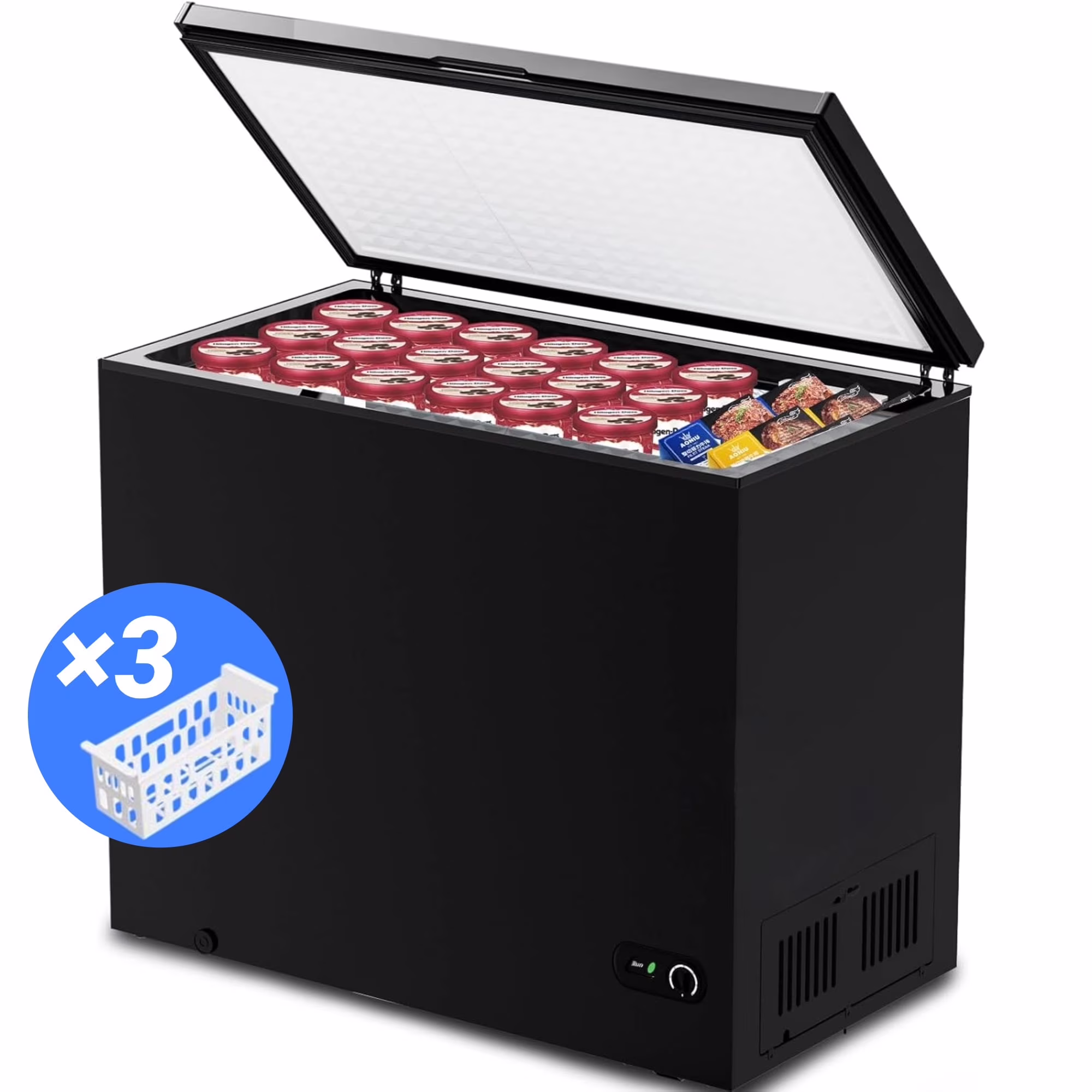 - Three corrosion-resistant hanging baskets (11.8"x8.3" each) create layered storage zones. Smooth-glide rails allow instant access to frozen veggies/fruits while maintaining visibility for buried items like ice packs or popsicles.